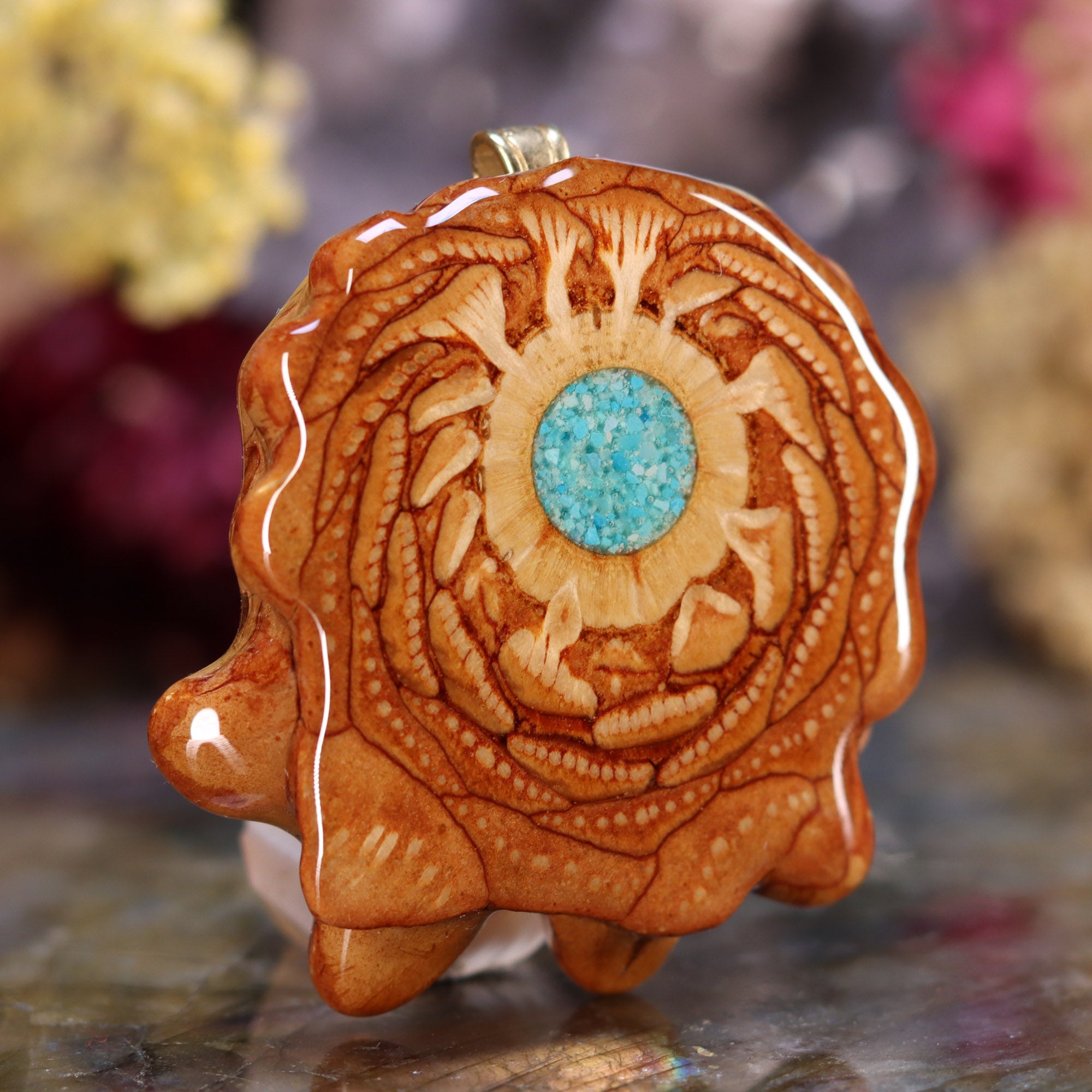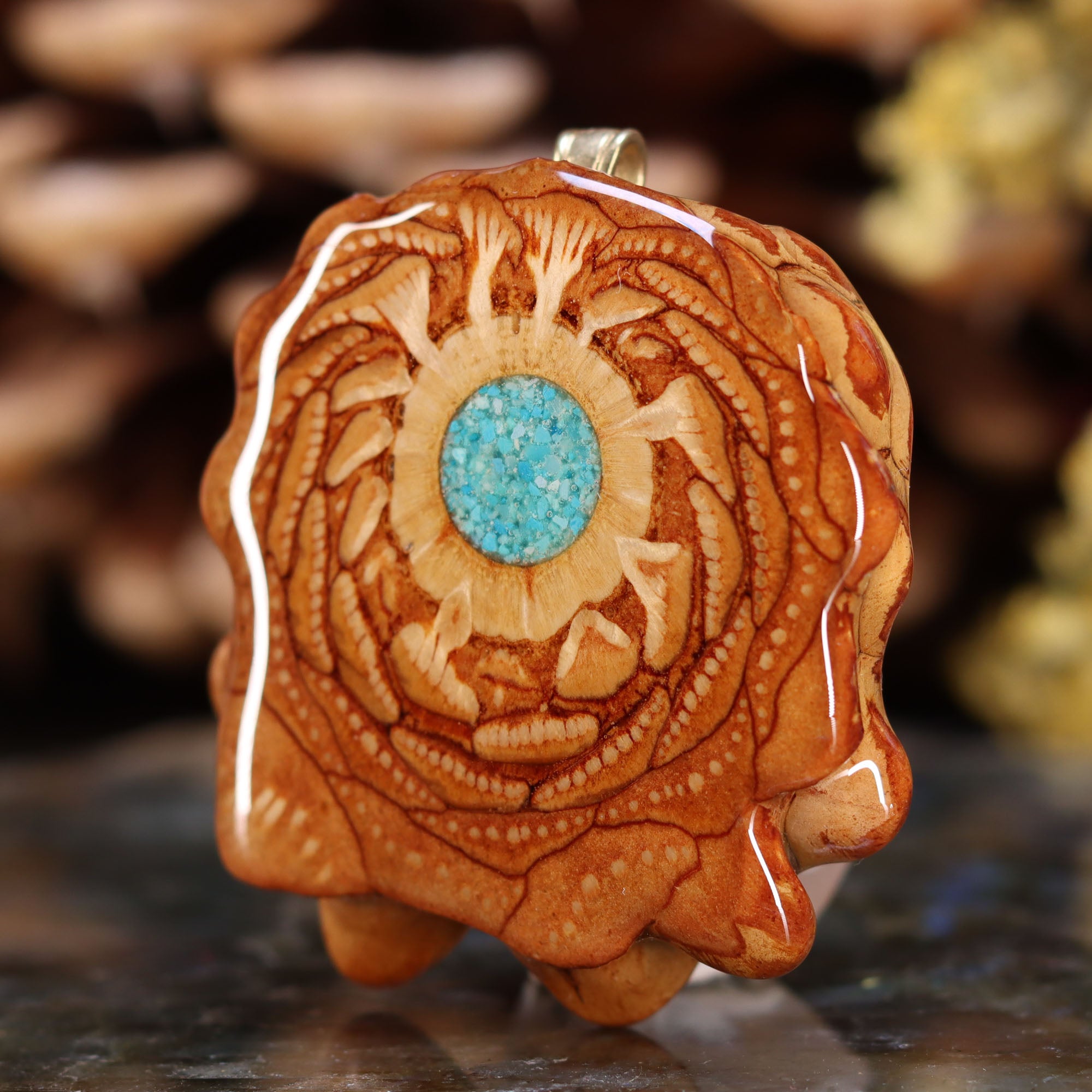 Every pinecone pendant is an elegant gift from Mother Nature -- unveiling the ornate Sacred Geometry hidden at the center of one of the world's densest Pinecones. Because only one cross-section is taken from the "heart" of each Cone, every pendant is absolutely unique, and truly one-of-a-kind.