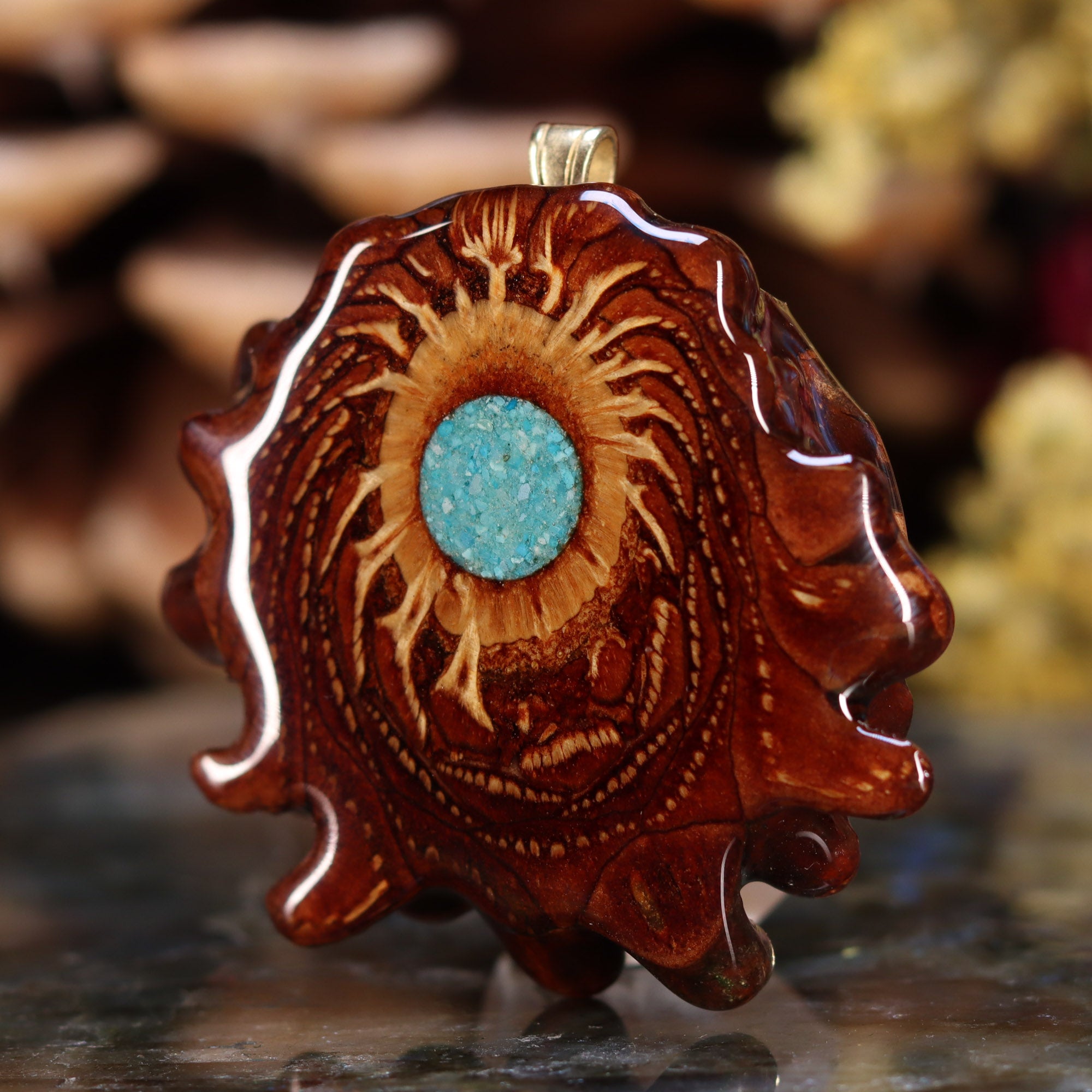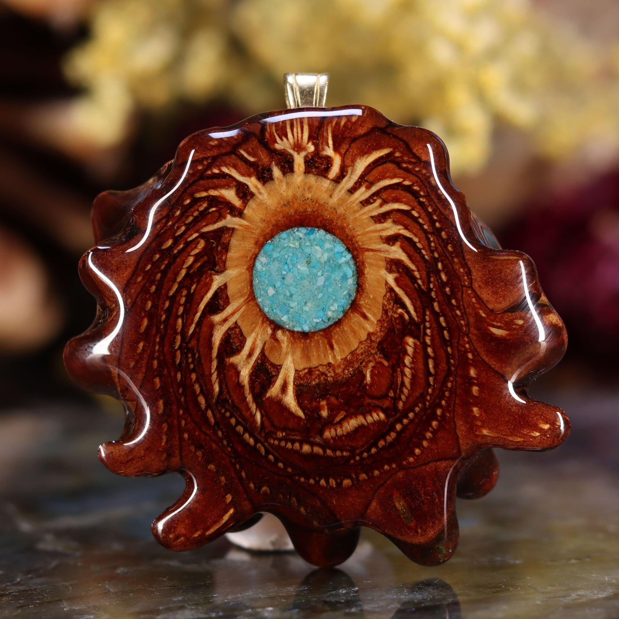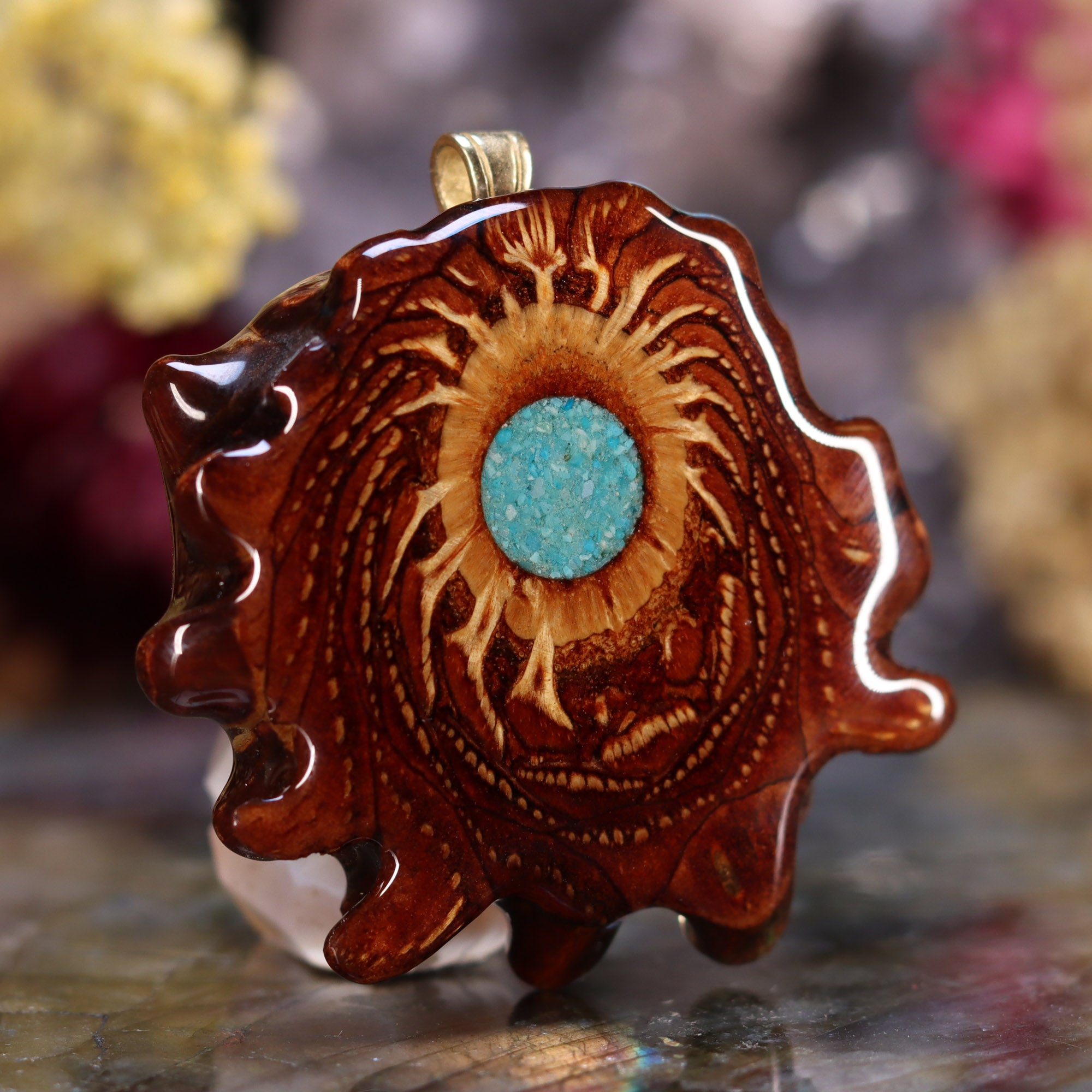 Every pinecone pendant is an elegant gift from Mother Nature -- unveiling the ornate Sacred Geometry hidden at the center of one of the world's densest Pinecones. Because only one cross-section is taken from the "heart" of each Cone, every pendant is absolutely unique, and truly one-of-a-kind.