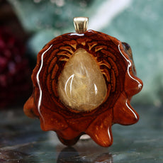 Our most innovative pieces -- Gem-quality Rutilated Quartz has been set atop glowing phosphorescent powder, then inlaid behind the transparent stone into the body of the Pinecone.