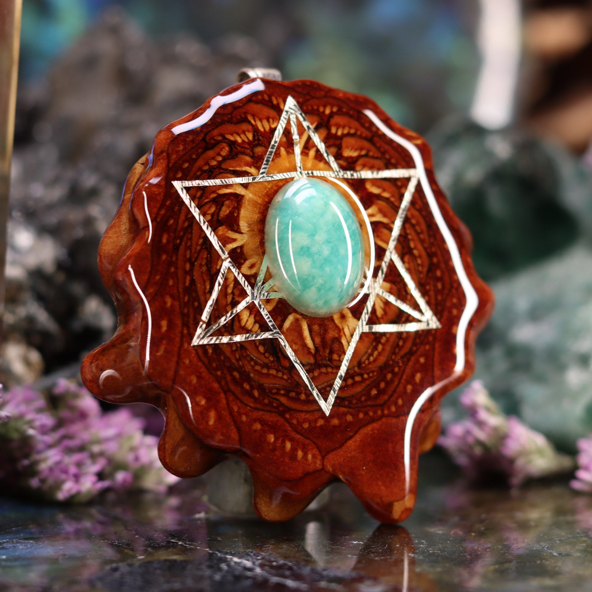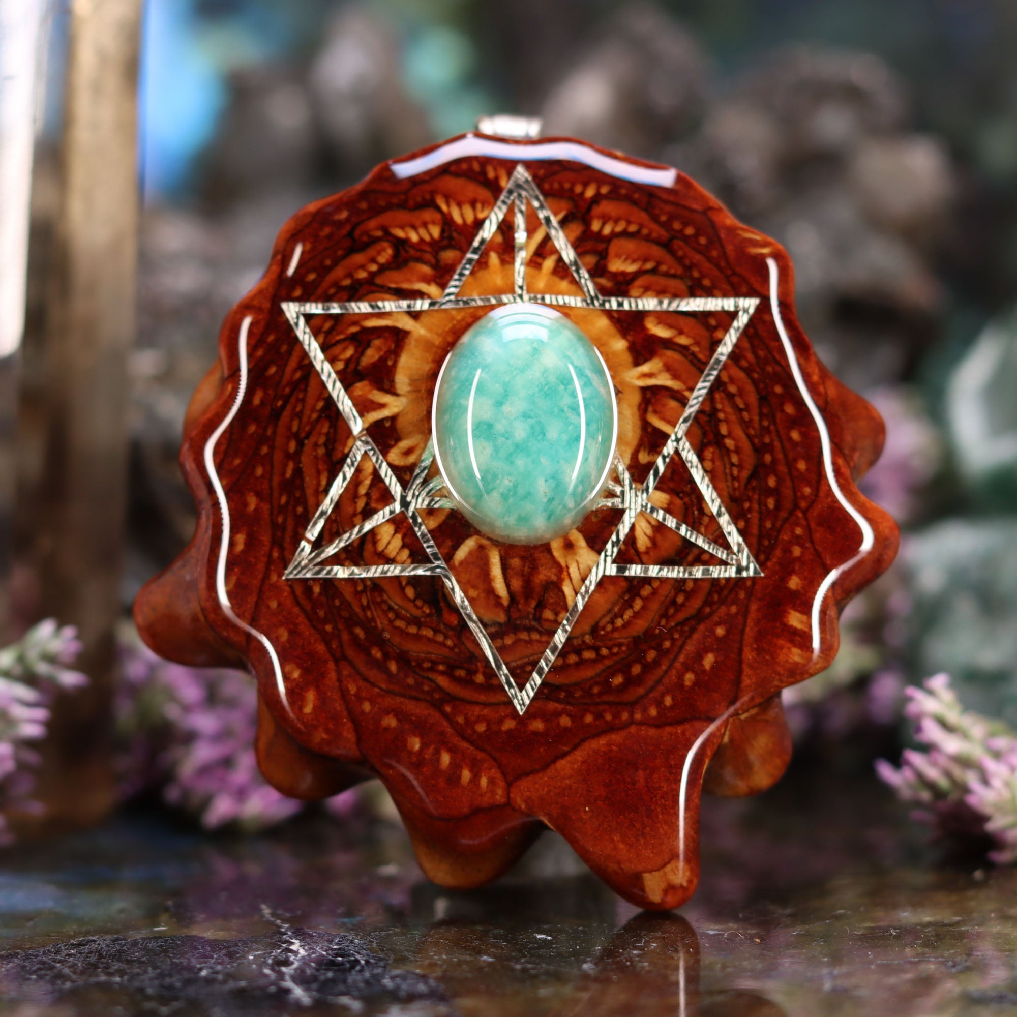 Every pinecone pendant is an elegant gift from Mother Nature -- unveiling the ornate Sacred Geometry hidden at the center of one of the world's densest Pinecones. Because only one cross-section is taken from the "heart" of each Cone, every pendant is absolutely unique, and truly one-of-a-kind.