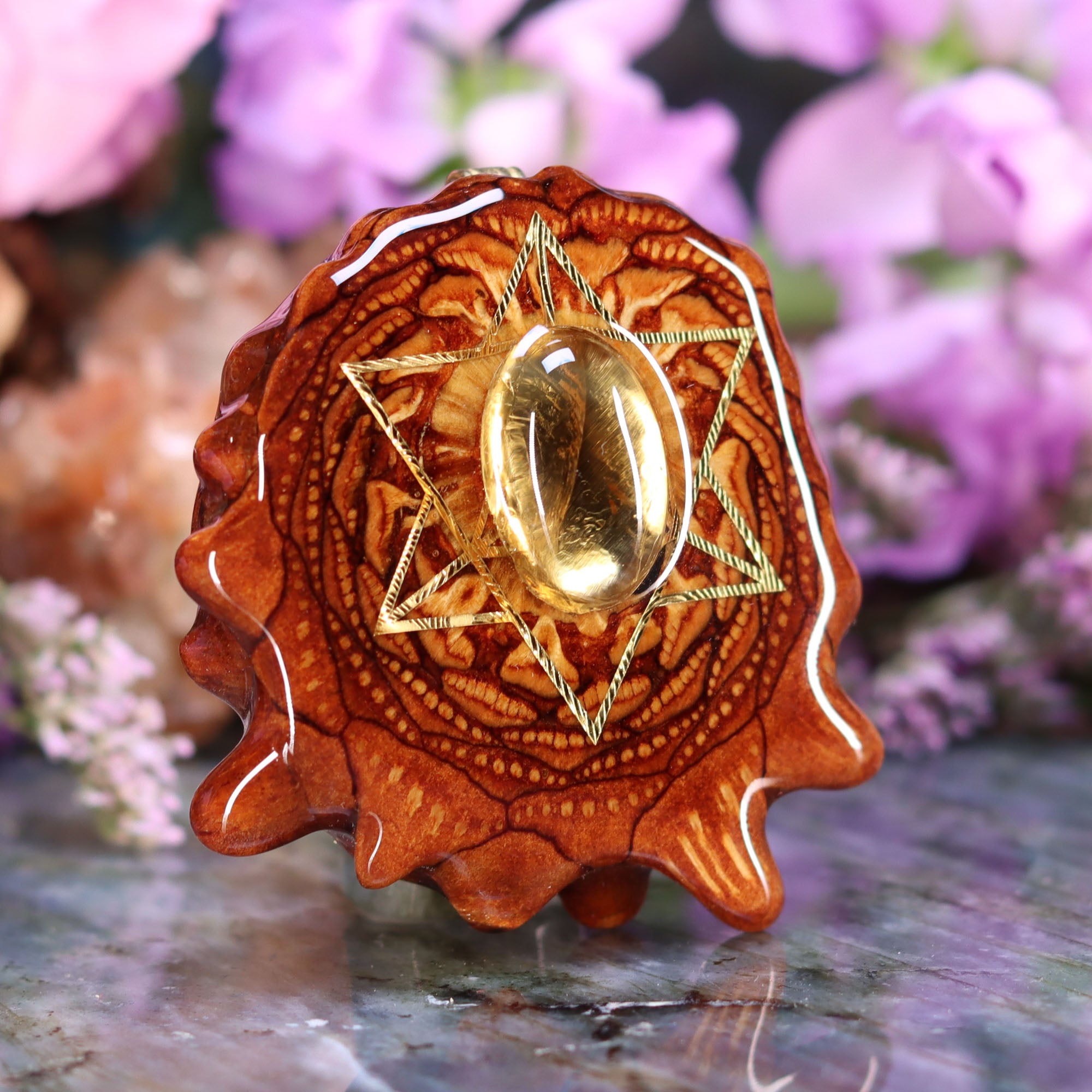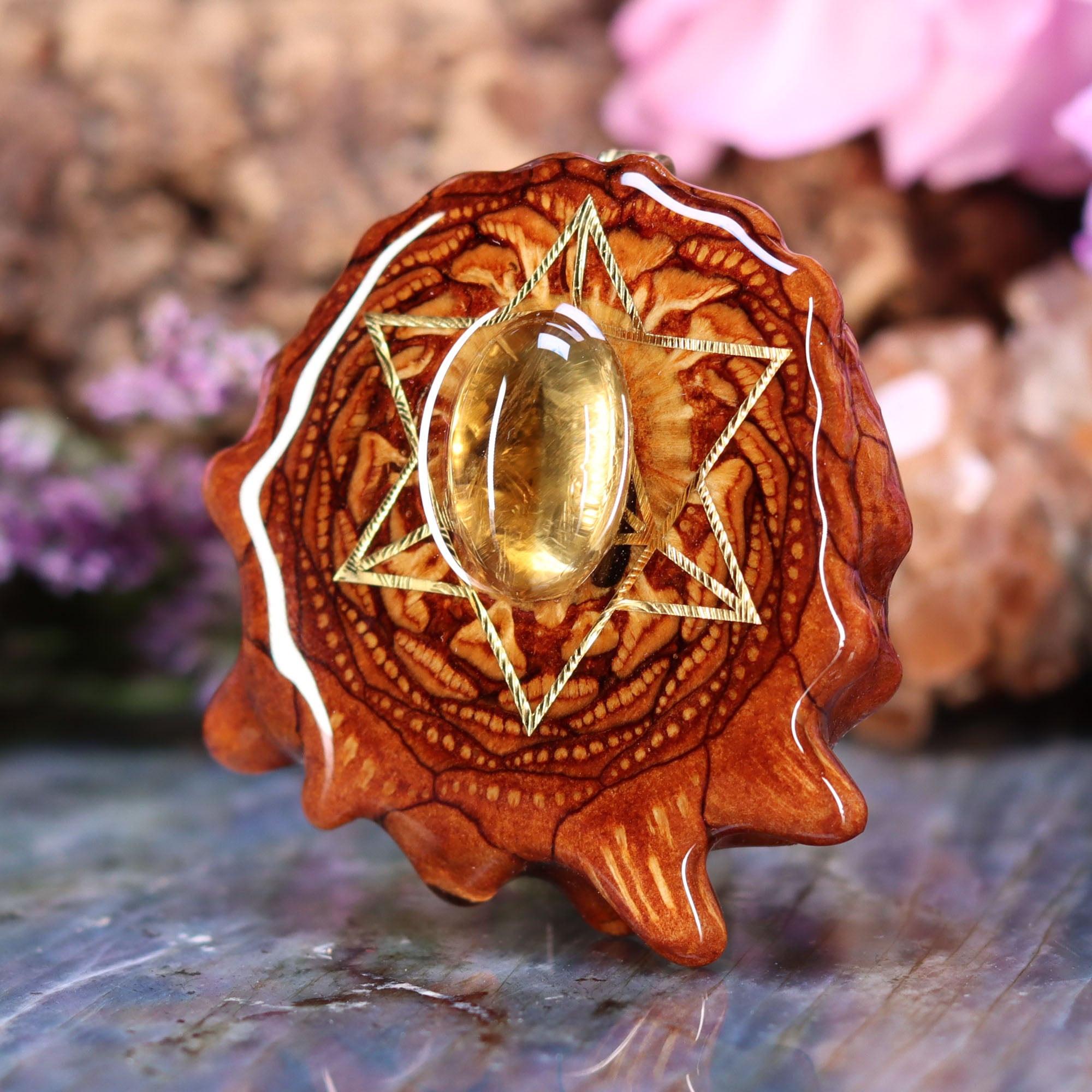 This Pinecone has been anointed with our "Merkaba" emblem, cast in 24k Gold. Merkaba - "Mer" meaning Light, "Ka" meaning Spirit, and "Ba" meaning Body - is a powerful  icon historically known as the "Vehicle of Ascension". The Merkaba opens the mind to increased awareness and promotes deep conscious interconnection.