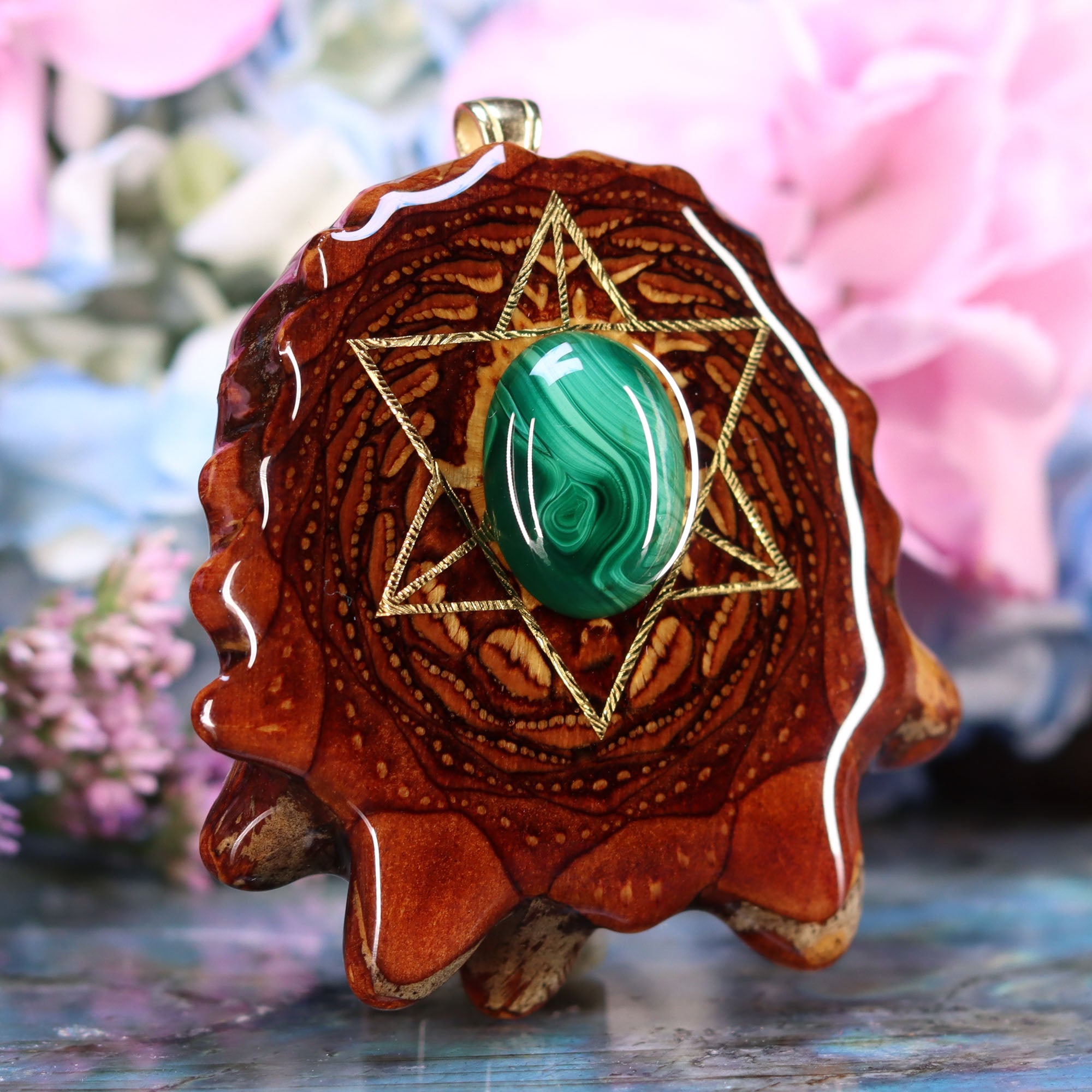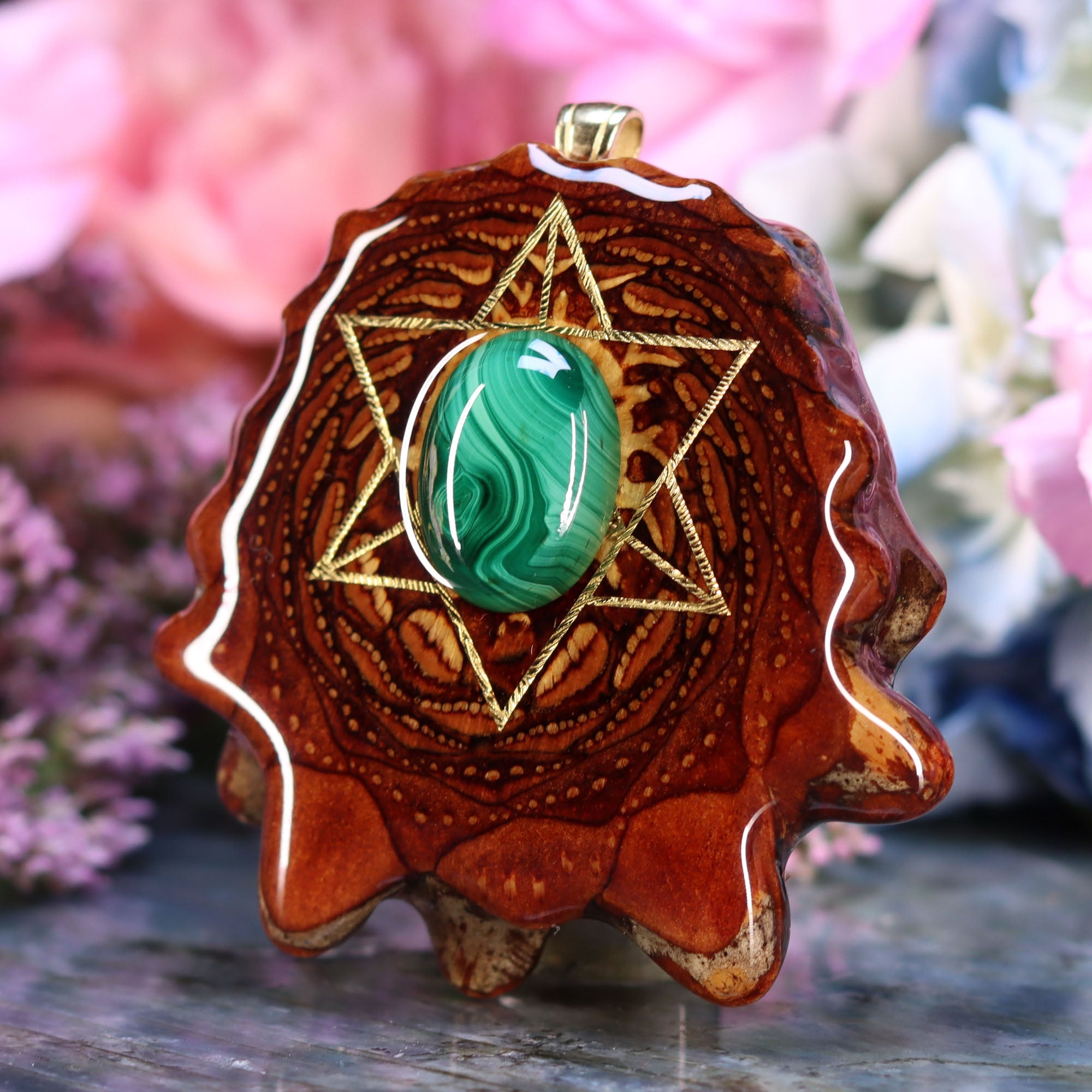 Every pinecone pendant is an elegant gift from Mother Nature -- unveiling the ornate Sacred Geometry hidden at the center of one of the world's densest Pinecones. Because only one cross-section is taken from the "heart" of each Cone, every pendant is absolutely unique, and truly one-of-a-kind.