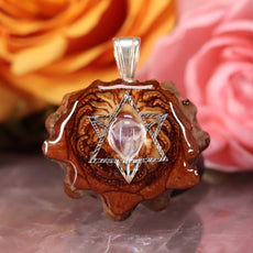 Every pinecone pendant is an elegant gift from Mother Nature -- unveiling the ornate Sacred Geometry hidden at the center of one of the world's densest Pinecones. Because only one cross-section is taken from the "heart" of each Cone, every pendant is absolutely unique, and truly one-of-a-kind.