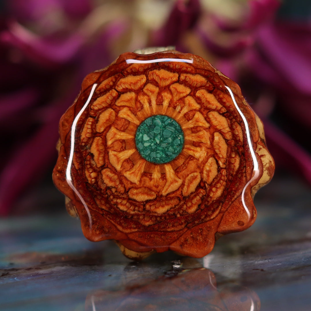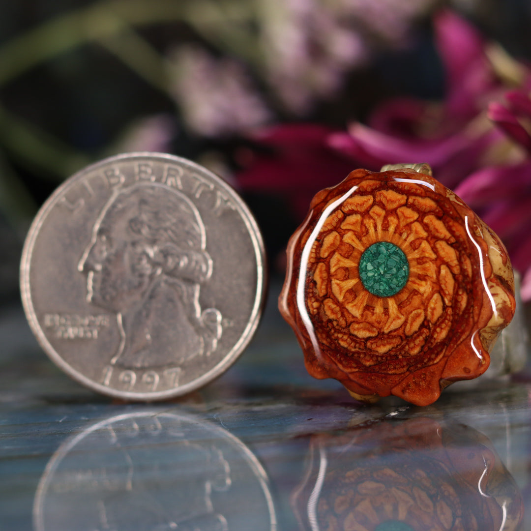 Crushed Malachite has been carefully mixed with a Phosphorescent Powder, then inlaid into the center of this unique pendant -- causing it to gently "Glow" in the dark, in addition to its vibrant color during the day!
