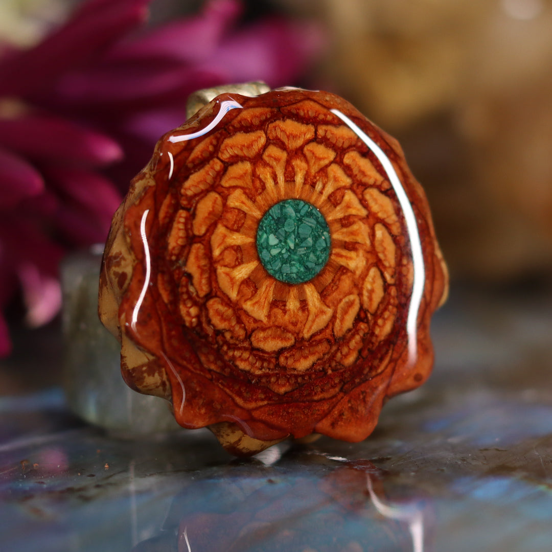 Every pinecone pendant is an elegant gift from Mother Nature -- unveiling the ornate Sacred Geometry hidden at the center of one of the world's densest Pinecones. Because only one cross-section is taken from the "heart" of each Cone, every pendant is absolutely unique, and truly one-of-a-kind.