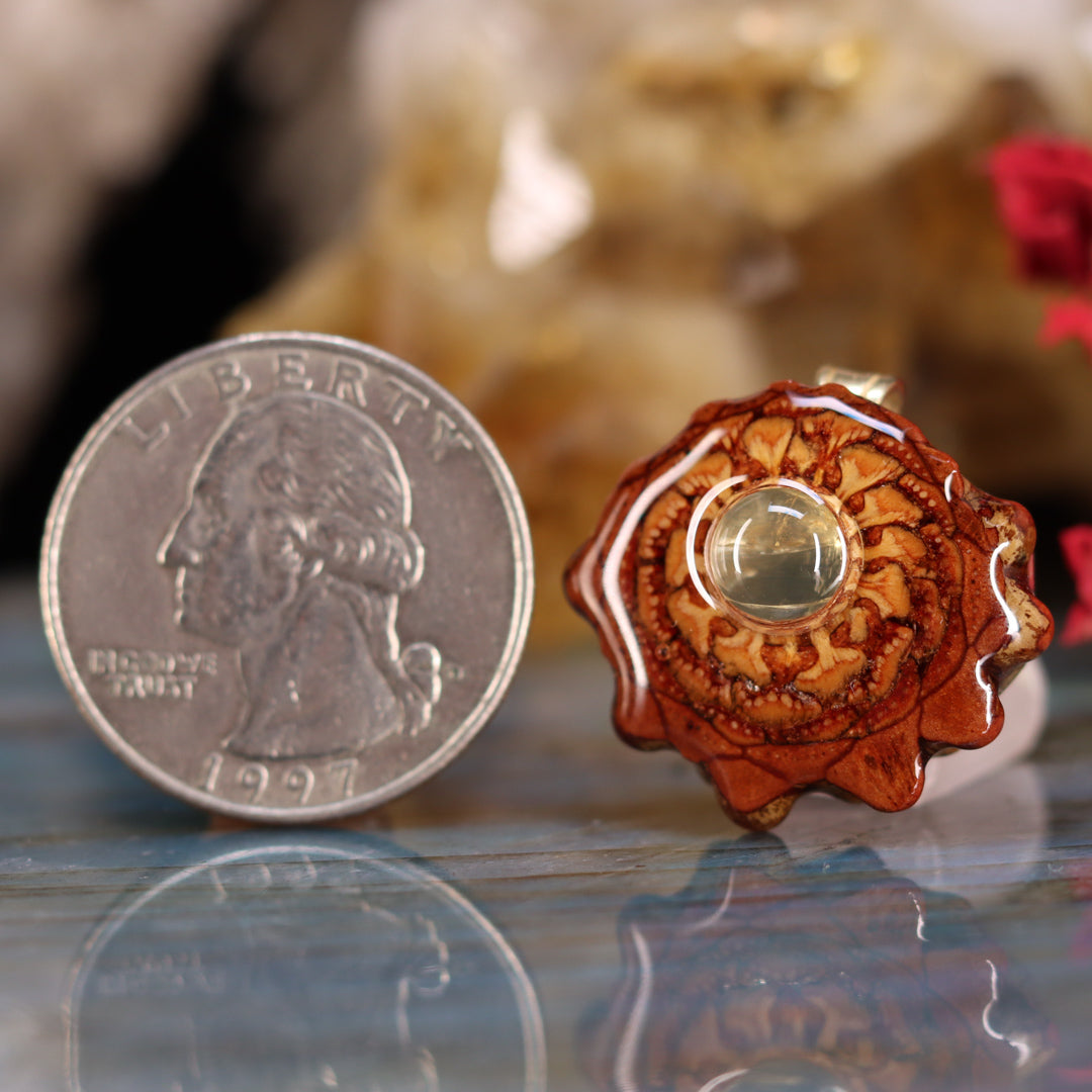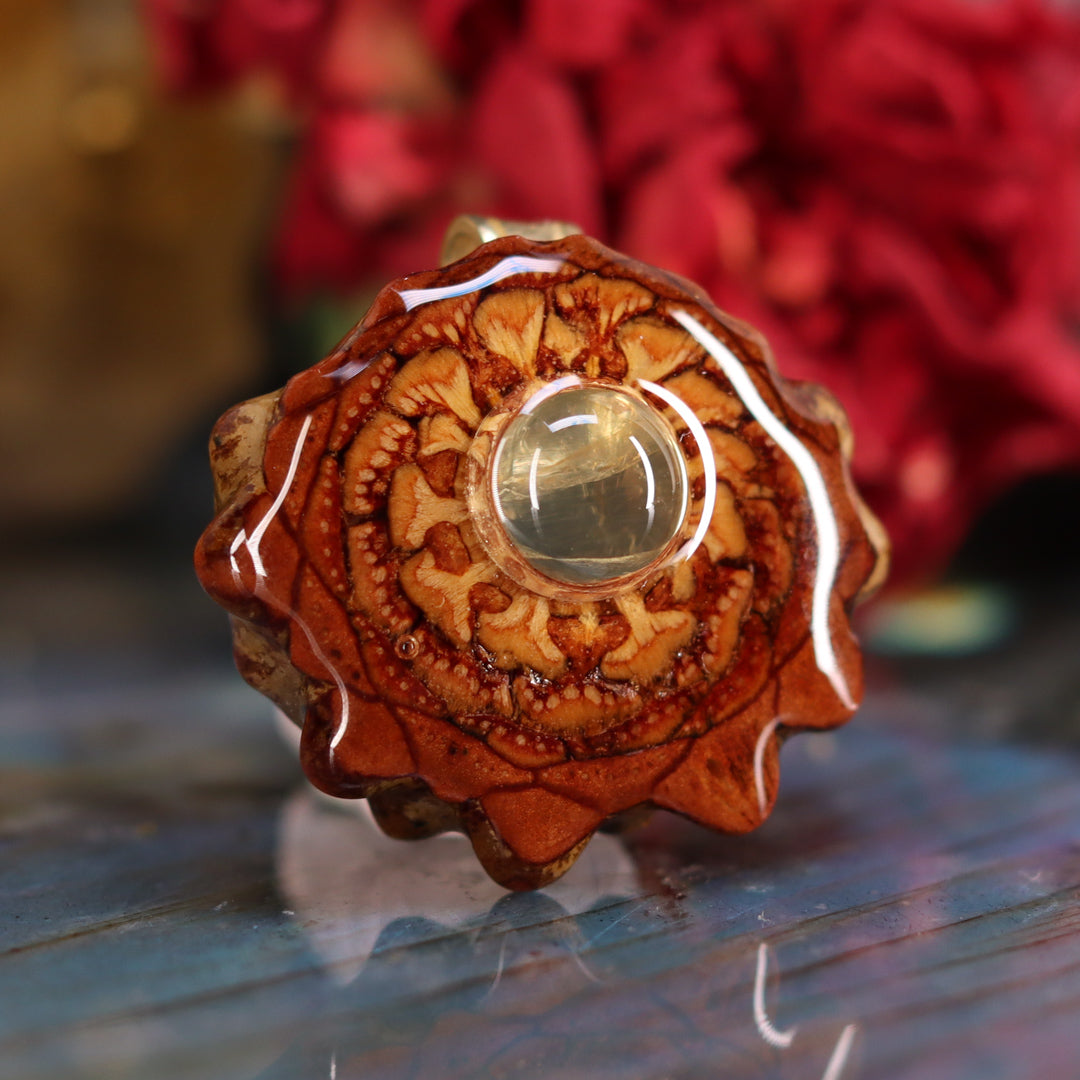 Every pinecone pendant is an elegant gift from Mother Nature -- unveiling the ornate Sacred Geometry hidden at the center of one of the world's densest Pinecones. Because only one cross-section is taken from the "heart" of each Cone, every pendant is absolutely unique, and truly one-of-a-kind.