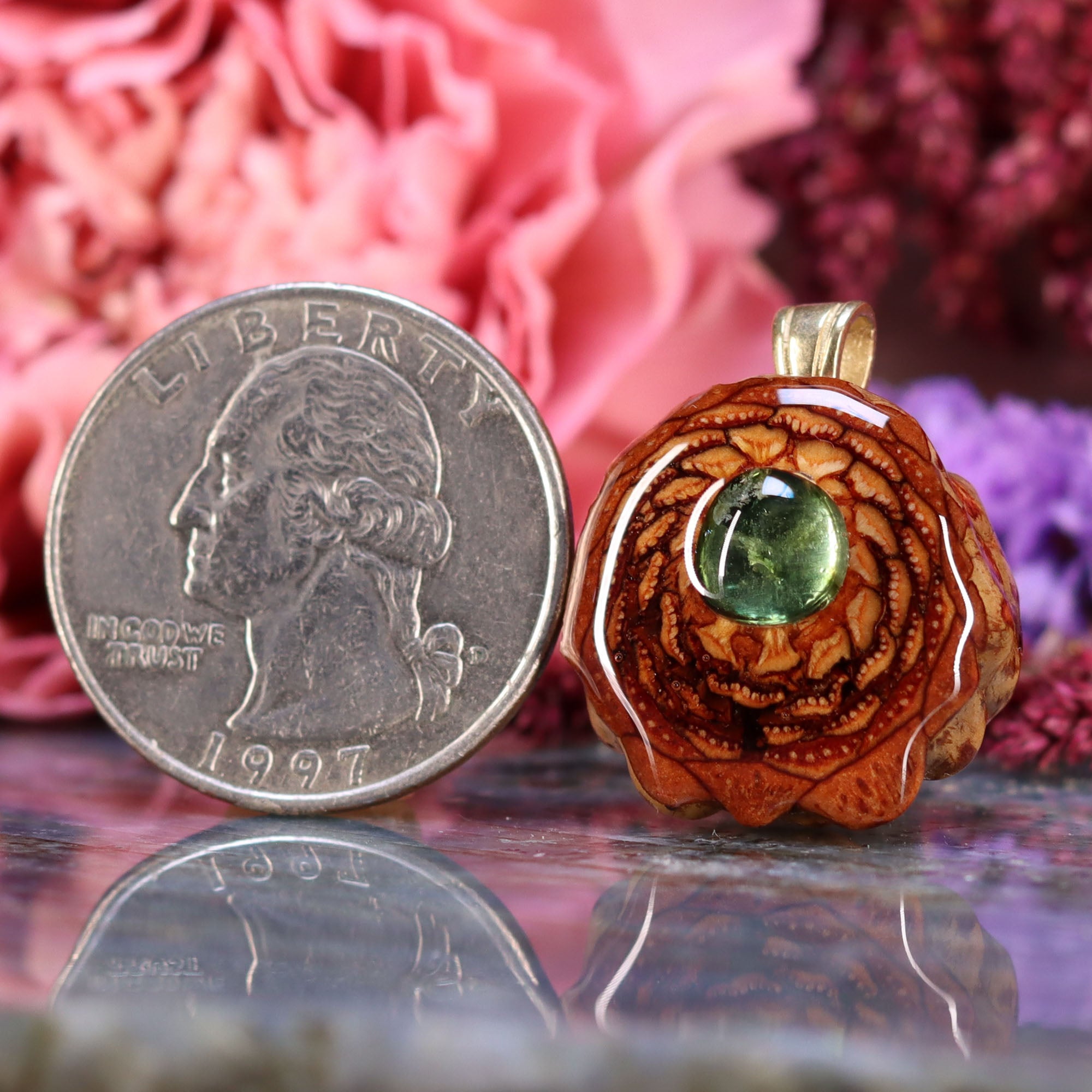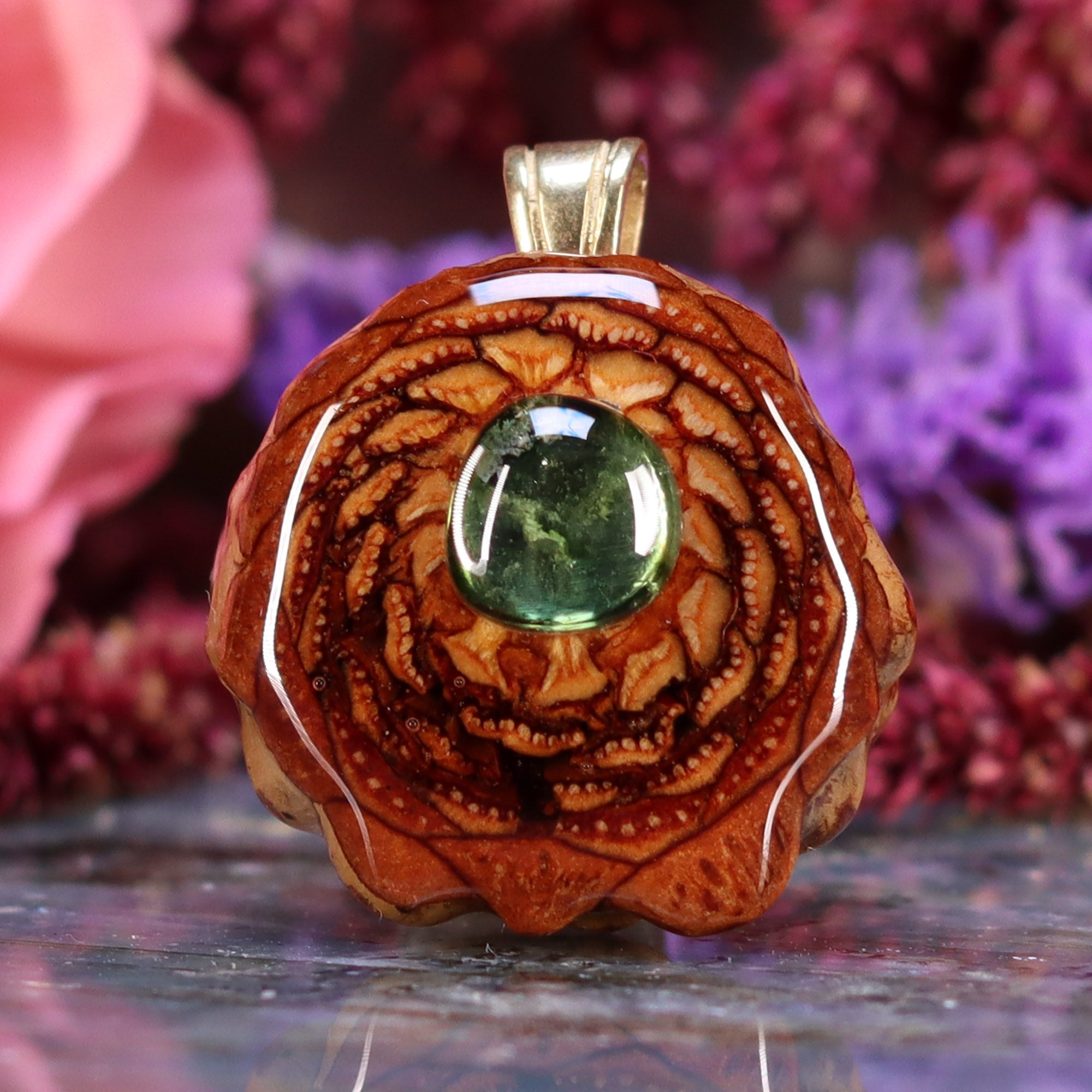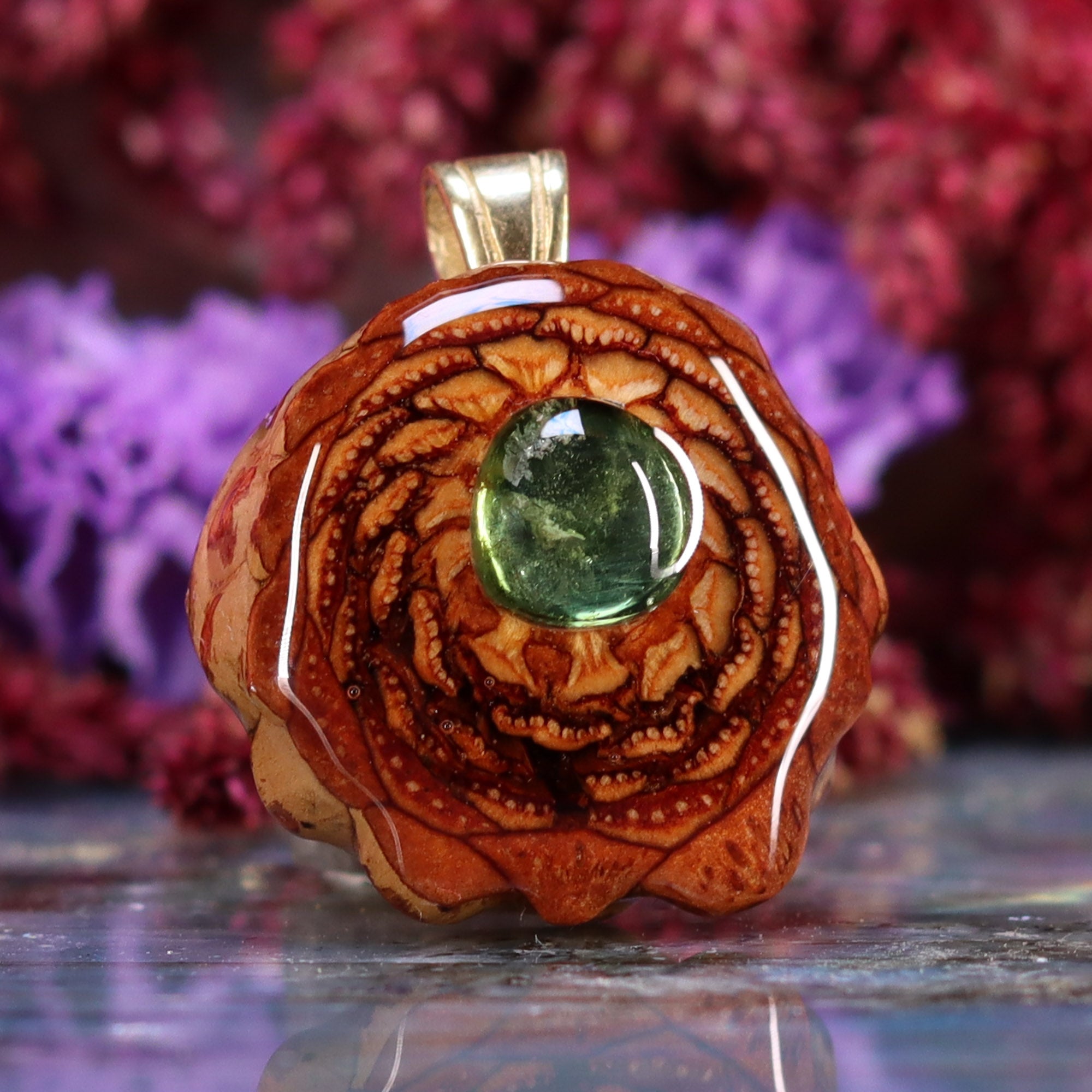 Every pinecone pendant is an elegant gift from Mother Nature -- unveiling the ornate Sacred Geometry hidden at the center of one of the world's densest Pinecones. Because only one cross-section is taken from the "heart" of each Cone, every pendant is absolutely unique, and truly one-of-a-kind.