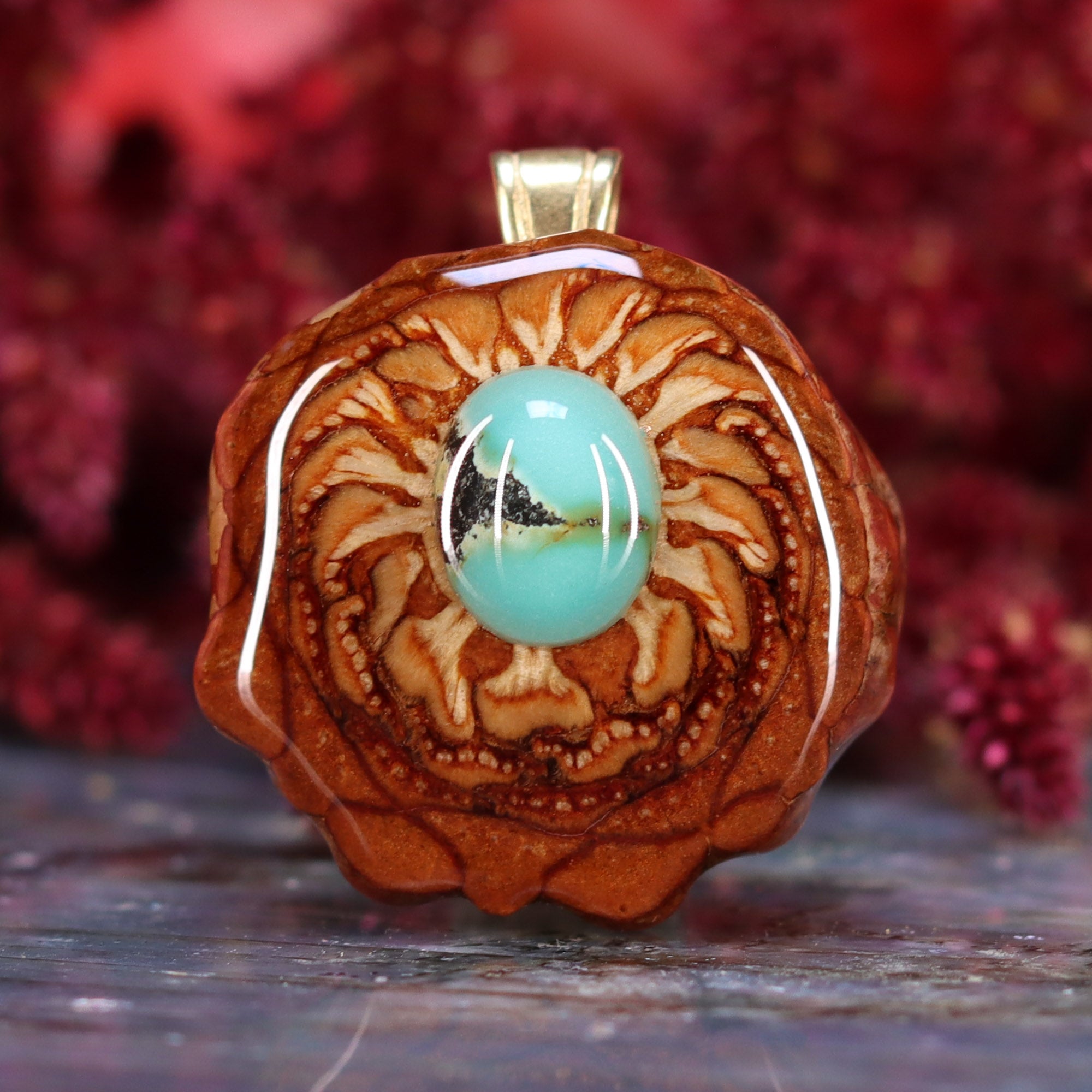 Every pinecone pendant is an elegant gift from Mother Nature -- unveiling the ornate Sacred Geometry hidden at the center of one of the world's densest Pinecones. Because only one cross-section is taken from the "heart" of each Cone, every pendant is absolutely unique, and truly one-of-a-kind.