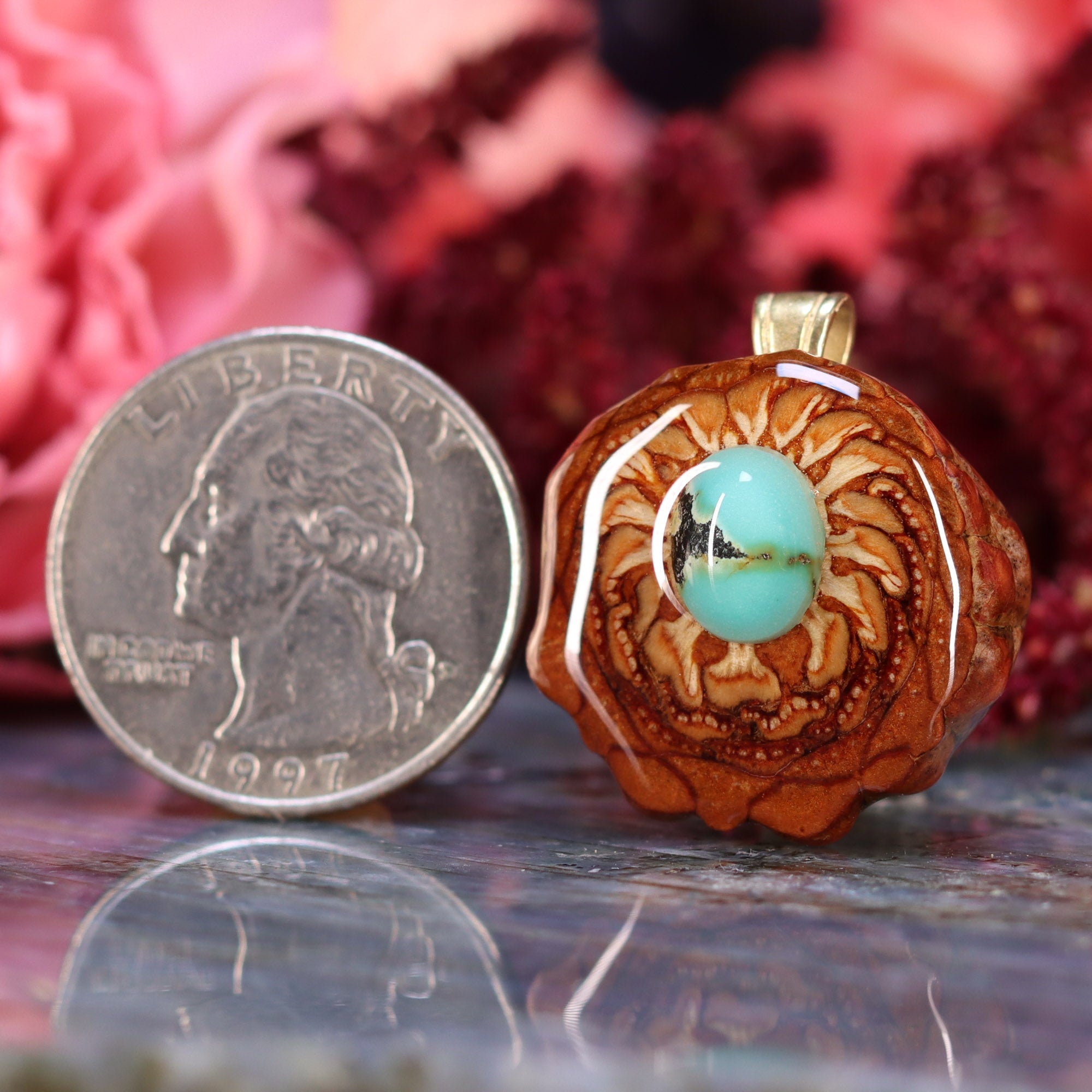 This uniquely hand-crafted pinecone pendant is the exact one you will receive.