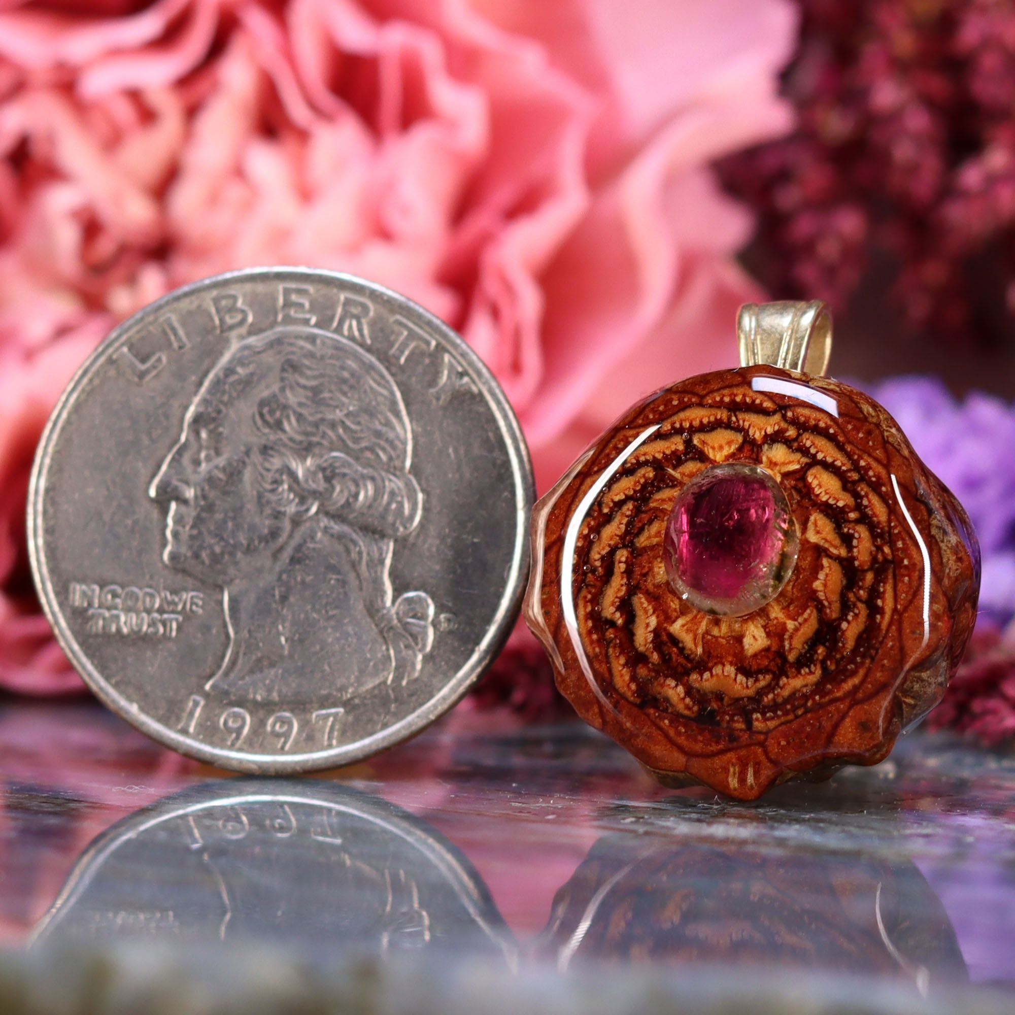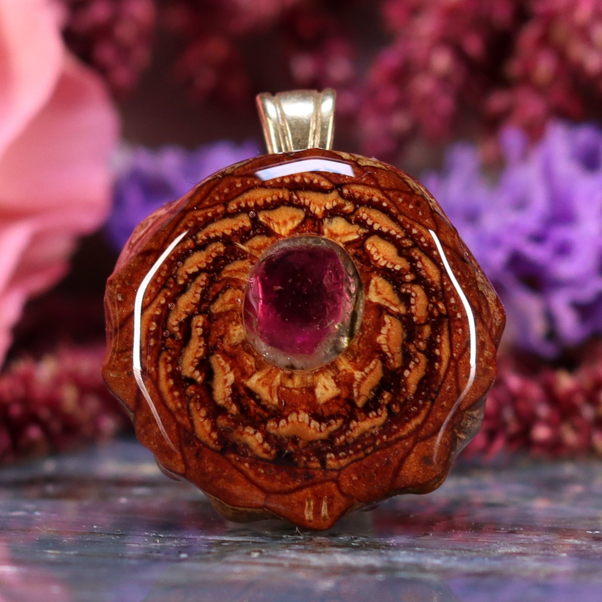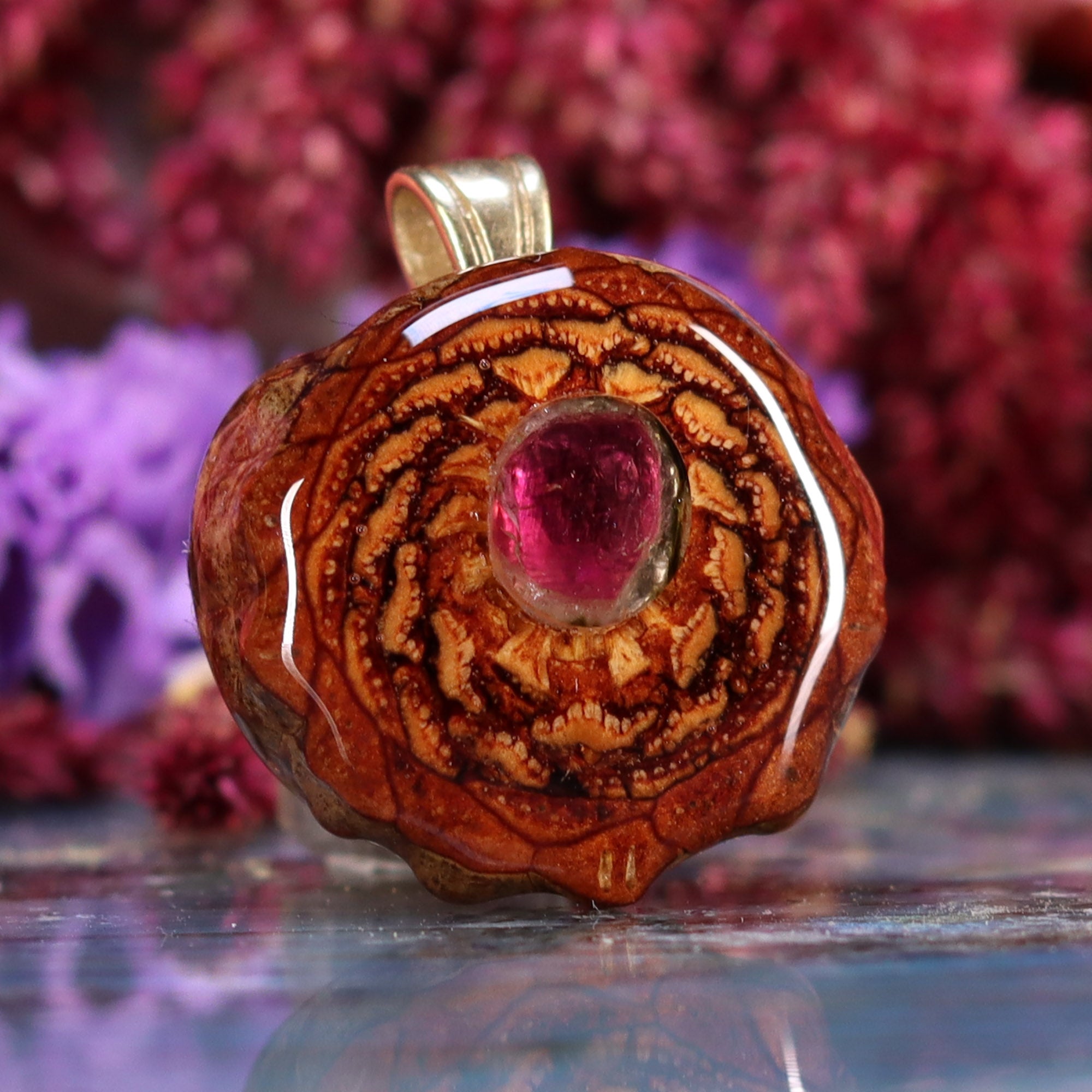 Every pinecone pendant is an elegant gift from Mother Nature -- unveiling the ornate Sacred Geometry hidden at the center of one of the world's densest Pinecones. Because only one cross-section is taken from the "heart" of each Cone, every pendant is absolutely unique, and truly one-of-a-kind.