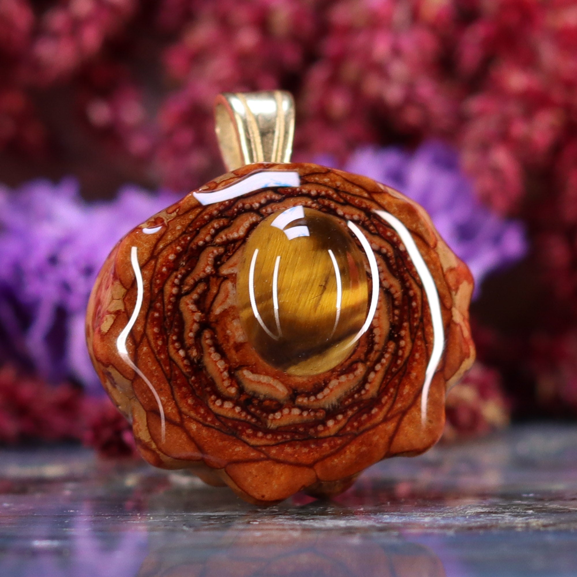 Every pinecone pendant is an elegant gift from Mother Nature -- unveiling the ornate Sacred Geometry hidden at the center of one of the world's densest Pinecones. Because only one cross-section is taken from the "heart" of each Cone, every pendant is absolutely unique, and truly one-of-a-kind.