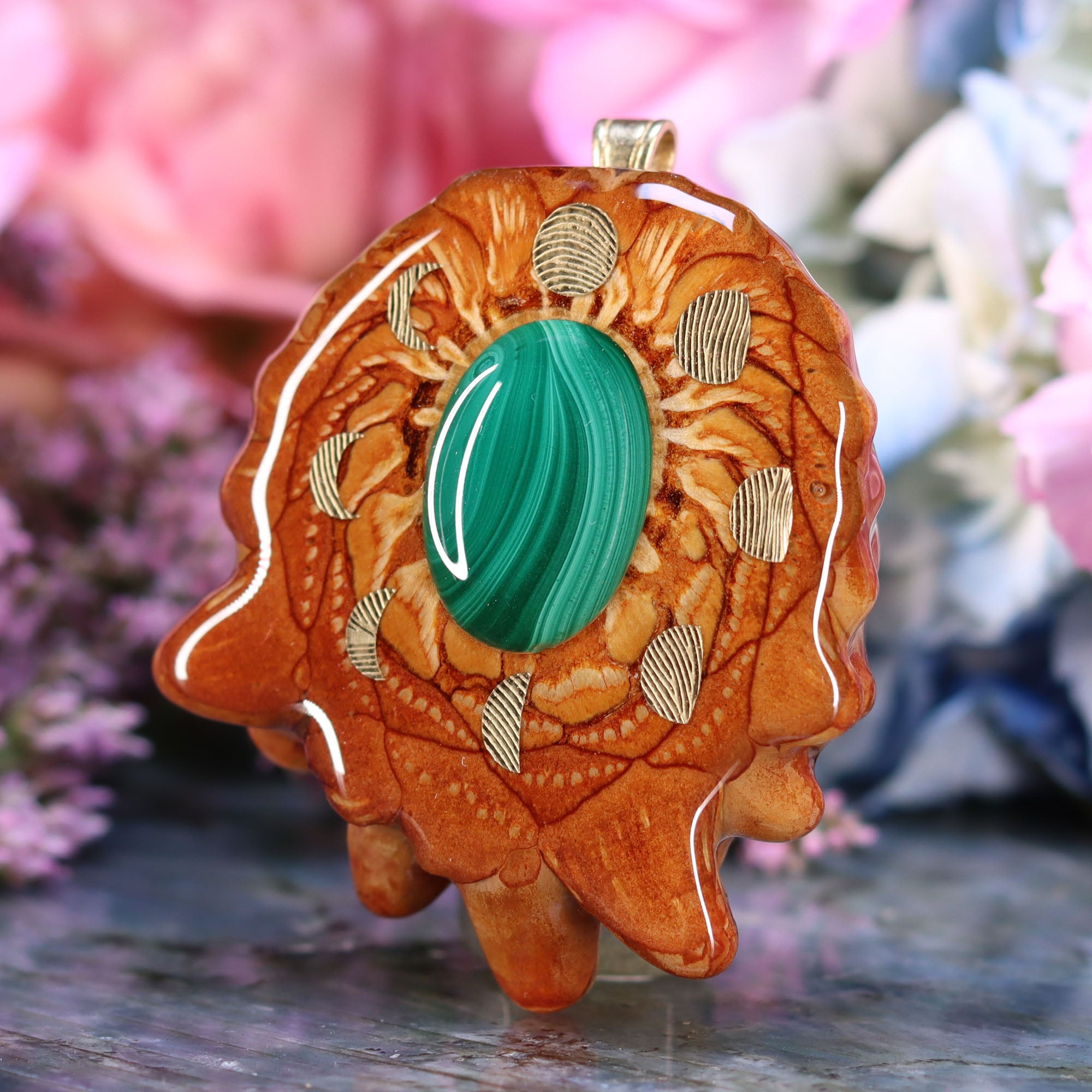 This Pinecone has been blessed with the Moon Cycles, cast in 24k Gold. The moon has long been held as a sacred symbol for rebirth and change with each phase bringing new opportunities for growth.