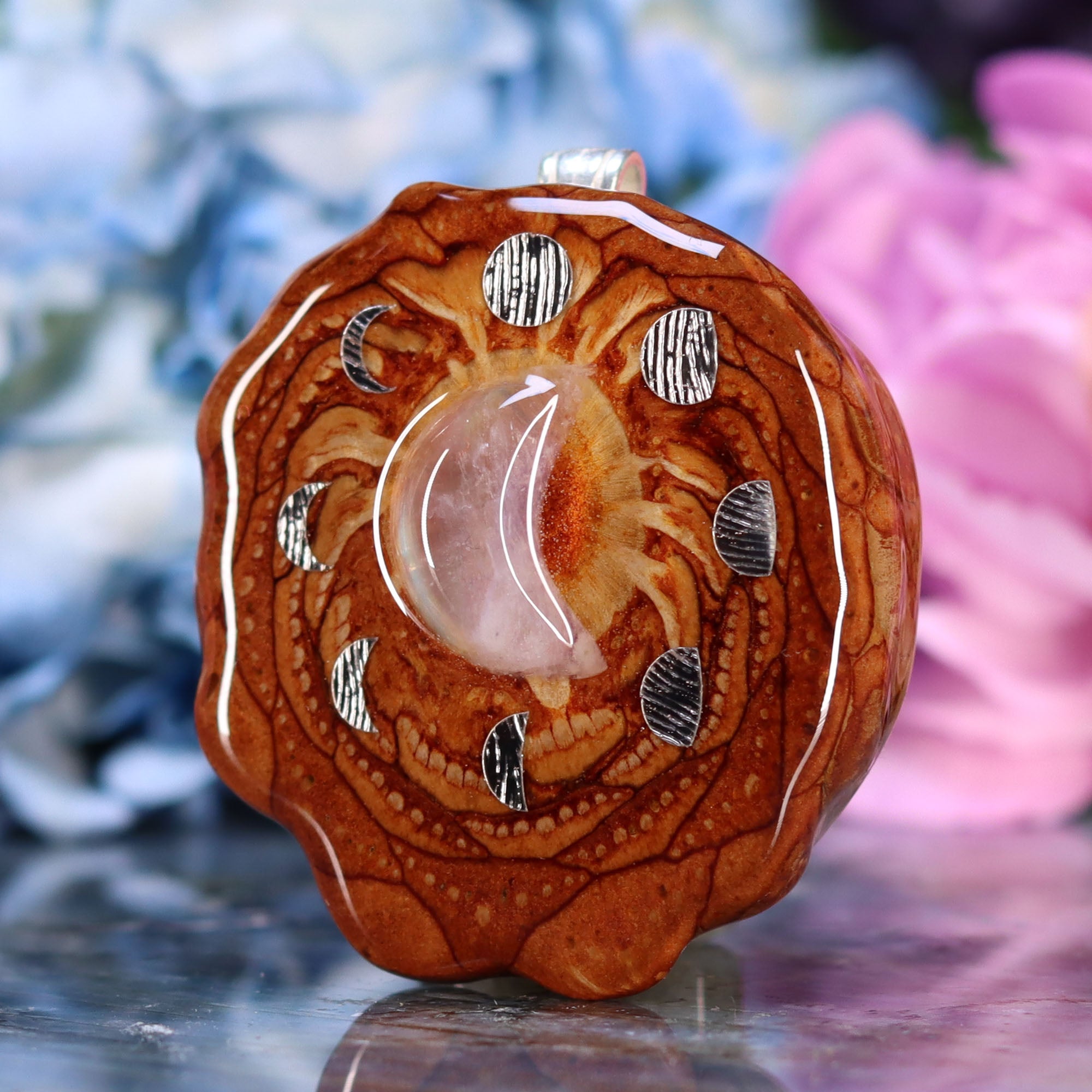 This Pinecone has been blessed with the Moon Cycles, cast in Sterling Silver. The moon has long been held as a sacred symbol for rebirth and change with each phase bringing new opportunities for growth.