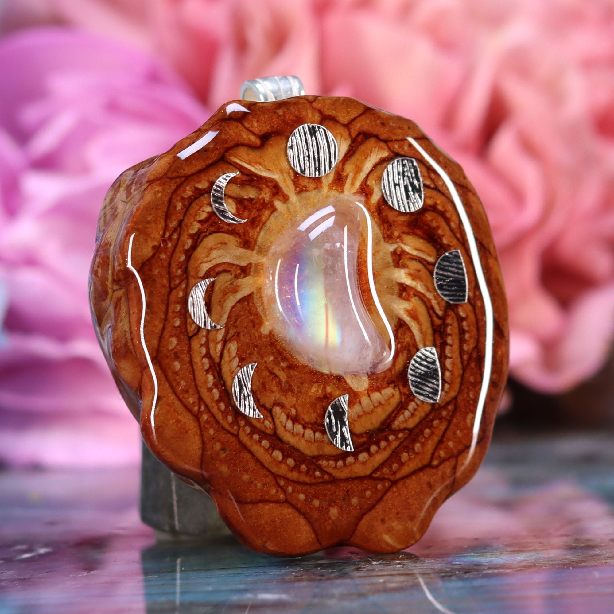 Moonstone Crescent with Silver Moon Cycle