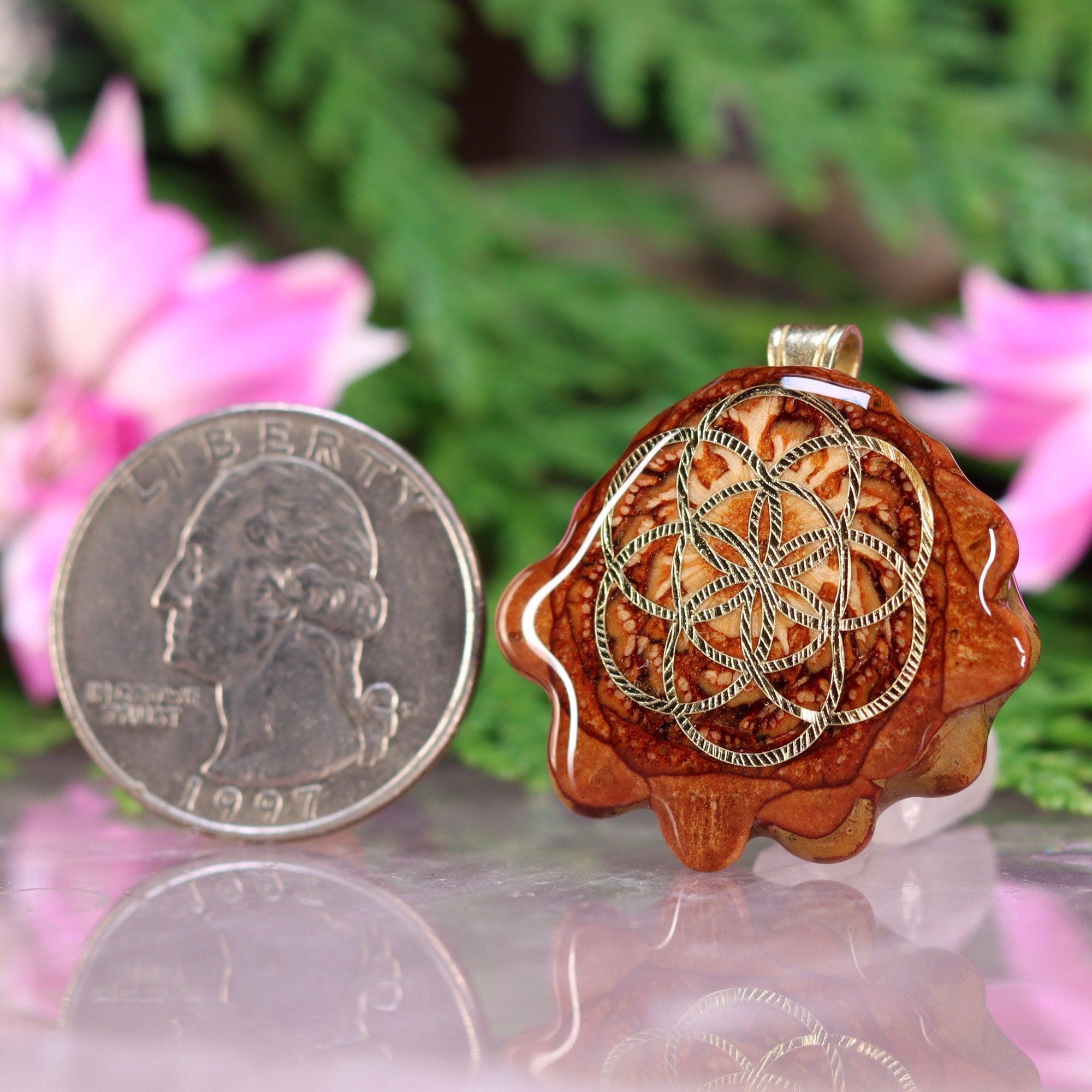 Every pinecone pendant is an elegant gift from Mother Nature -- unveiling the ornate Sacred Geometry hidden at the center of one of the world's densest Pinecones. Because only one cross-section is taken from the "heart" of each Cone, every pendant is absolutely unique, and truly one-of-a-kind.