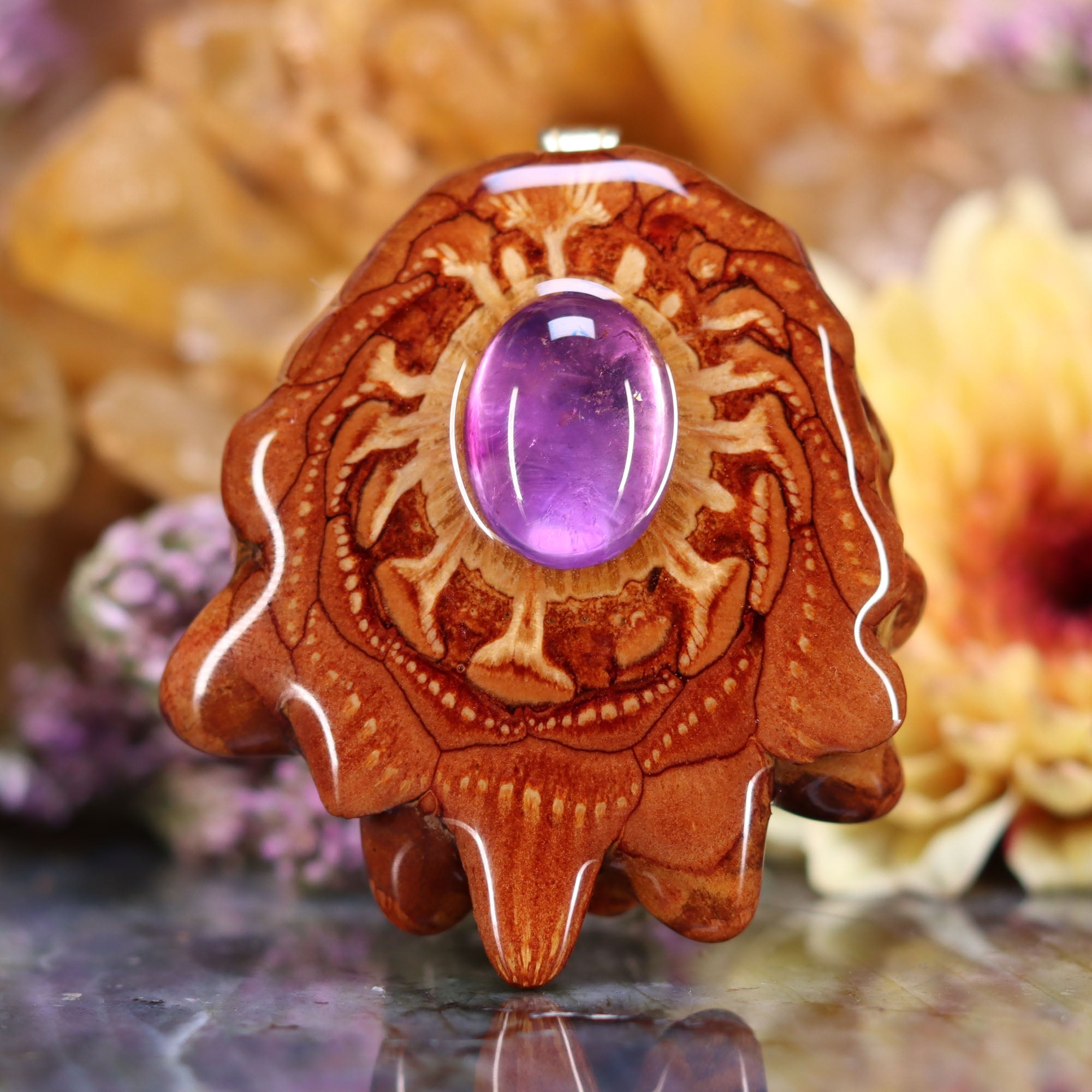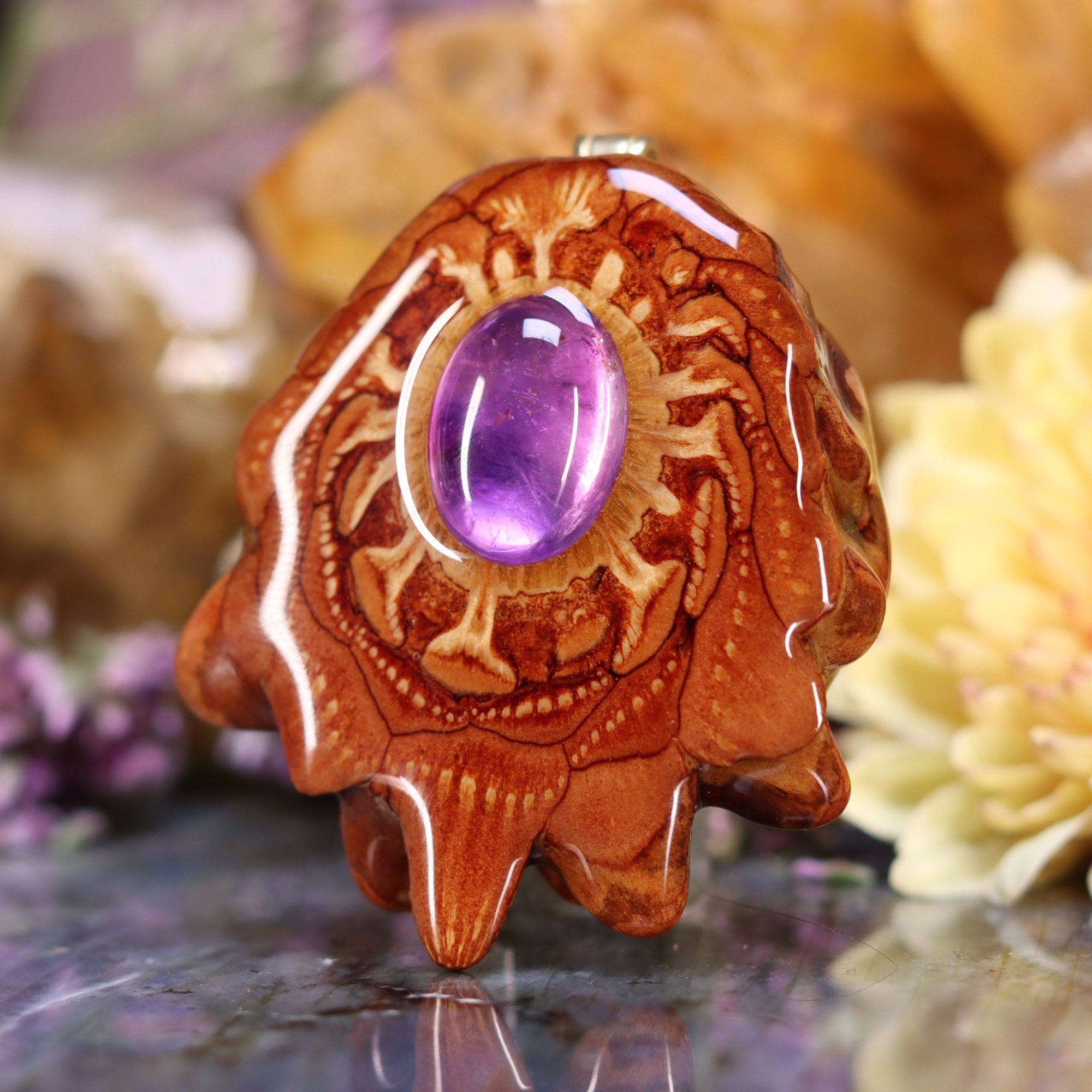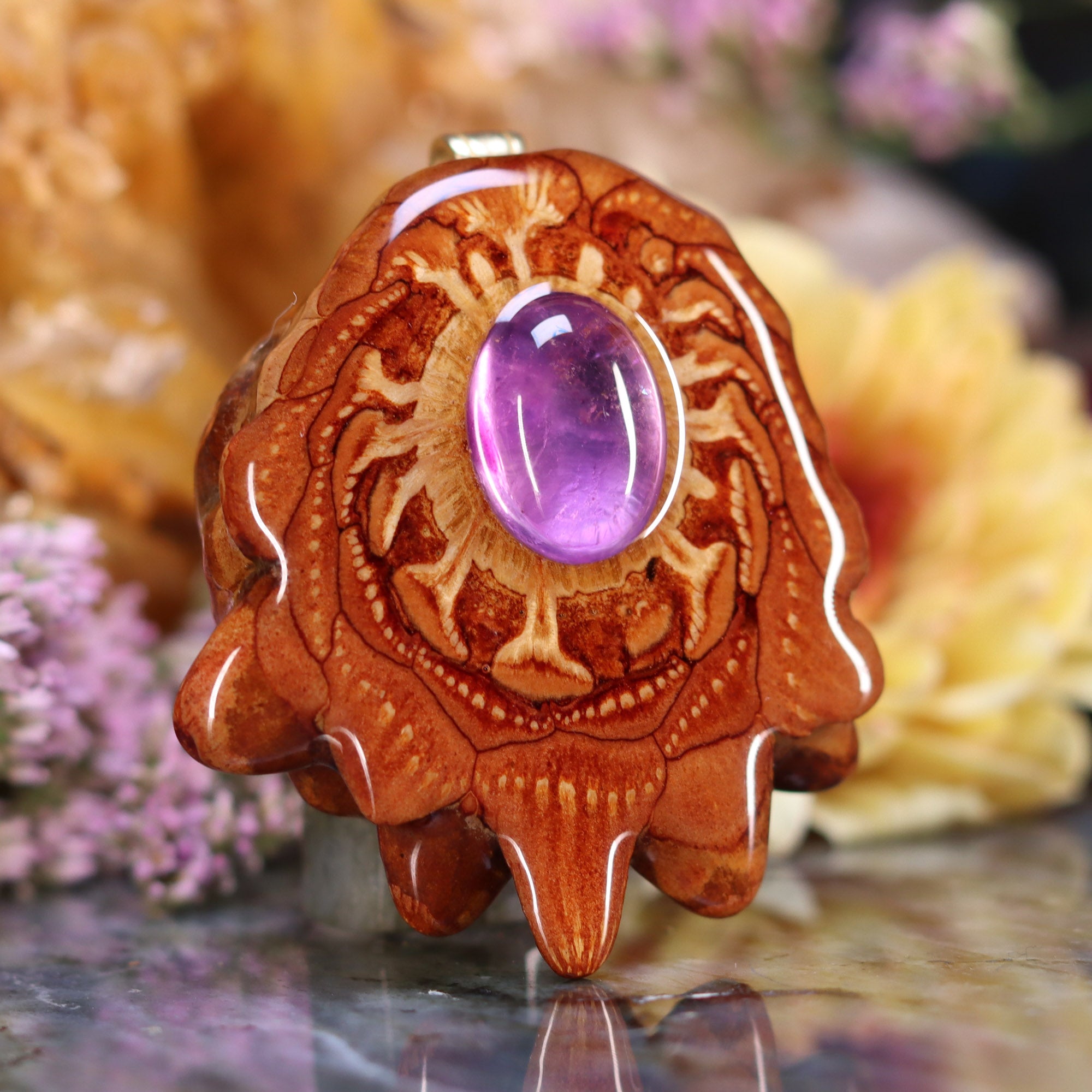 Every pinecone pendant is an elegant gift from Mother Nature -- unveiling the ornate Sacred Geometry hidden at the center of one of the world's densest Pinecones. Because only one cross-section is taken from the "heart" of each Cone, every pendant is absolutely unique, and truly one-of-a-kind.
