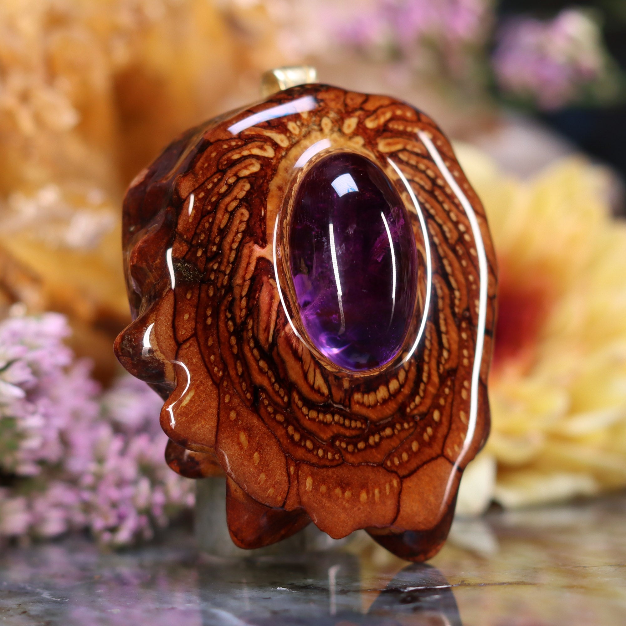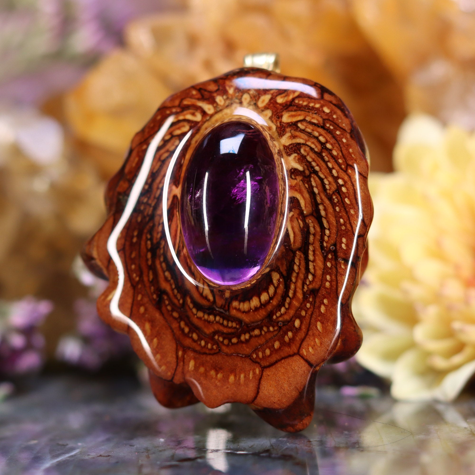 Every pinecone pendant is an elegant gift from Mother Nature -- unveiling the ornate Sacred Geometry hidden at the center of one of the world's densest Pinecones. Because only one cross-section is taken from the "heart" of each Cone, every pendant is absolutely unique, and truly one-of-a-kind.