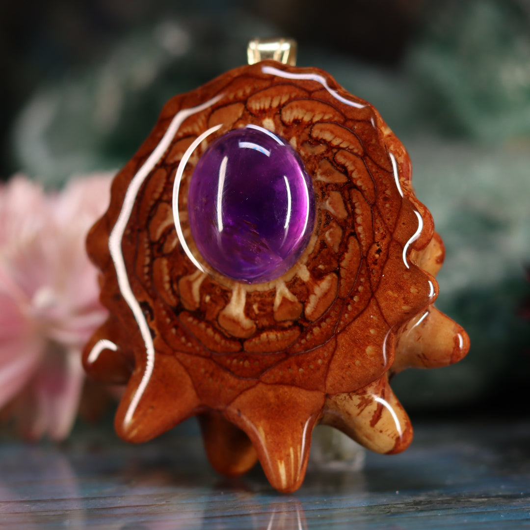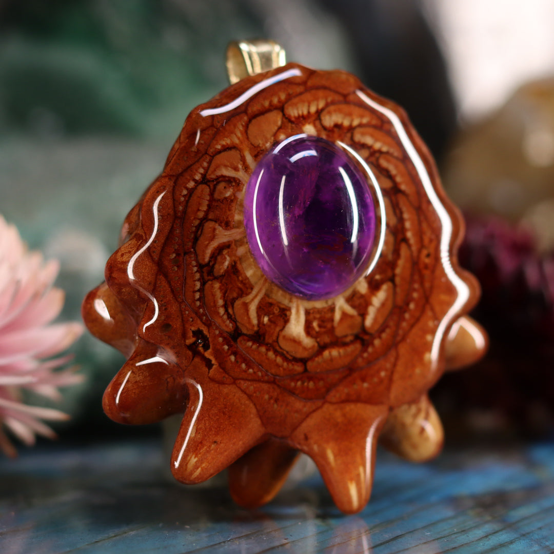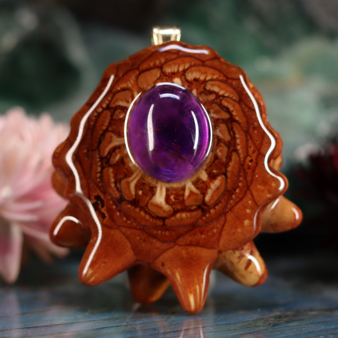 Every pinecone pendant is an elegant gift from Mother Nature -- unveiling the ornate Sacred Geometry hidden at the center of one of the world's densest Pinecones. Because only one cross-section is taken from the "heart" of each Cone, every pendant is absolutely unique, and truly one-of-a-kind.