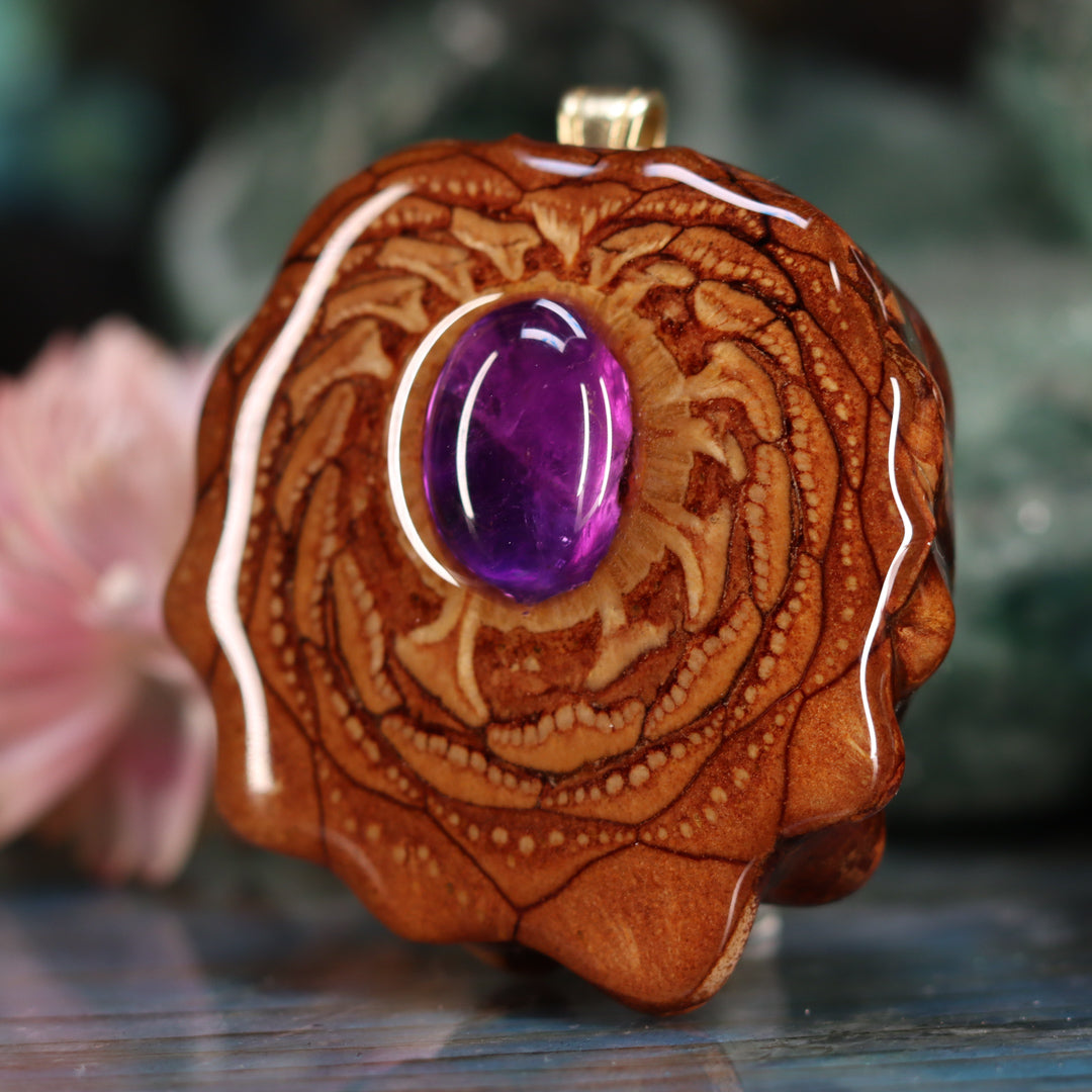 Every pinecone pendant is an elegant gift from Mother Nature -- unveiling the ornate Sacred Geometry hidden at the center of one of the world's densest Pinecones. Because only one cross-section is taken from the "heart" of each Cone, every pendant is absolutely unique, and truly one-of-a-kind.