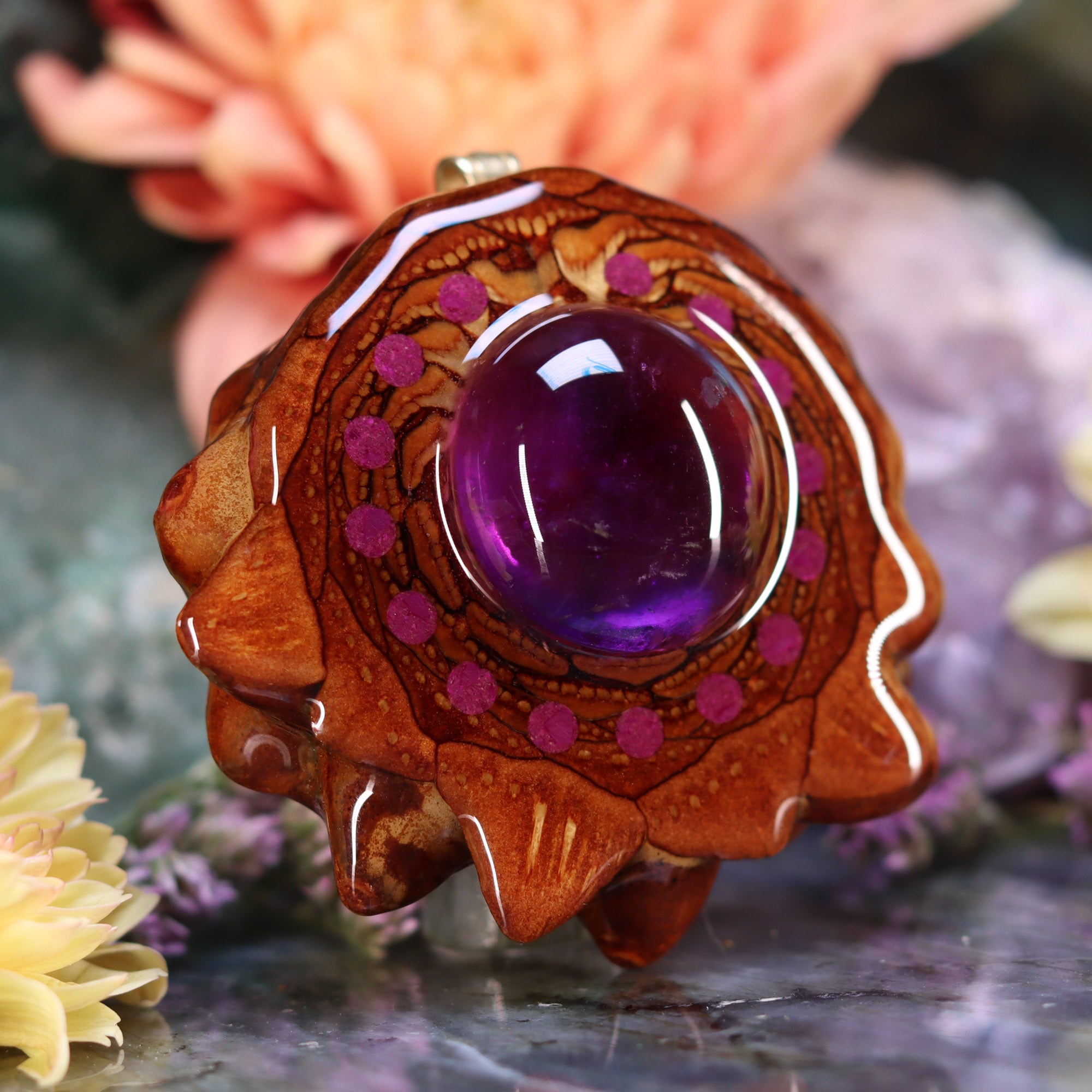 Every pinecone pendant is an elegant gift from Mother Nature -- unveiling the ornate Sacred Geometry hidden at the center of one of the world's densest Pinecones. Because only one cross-section is taken from the "heart" of each Cone, every pendant is absolutely unique, and truly one-of-a-kind.