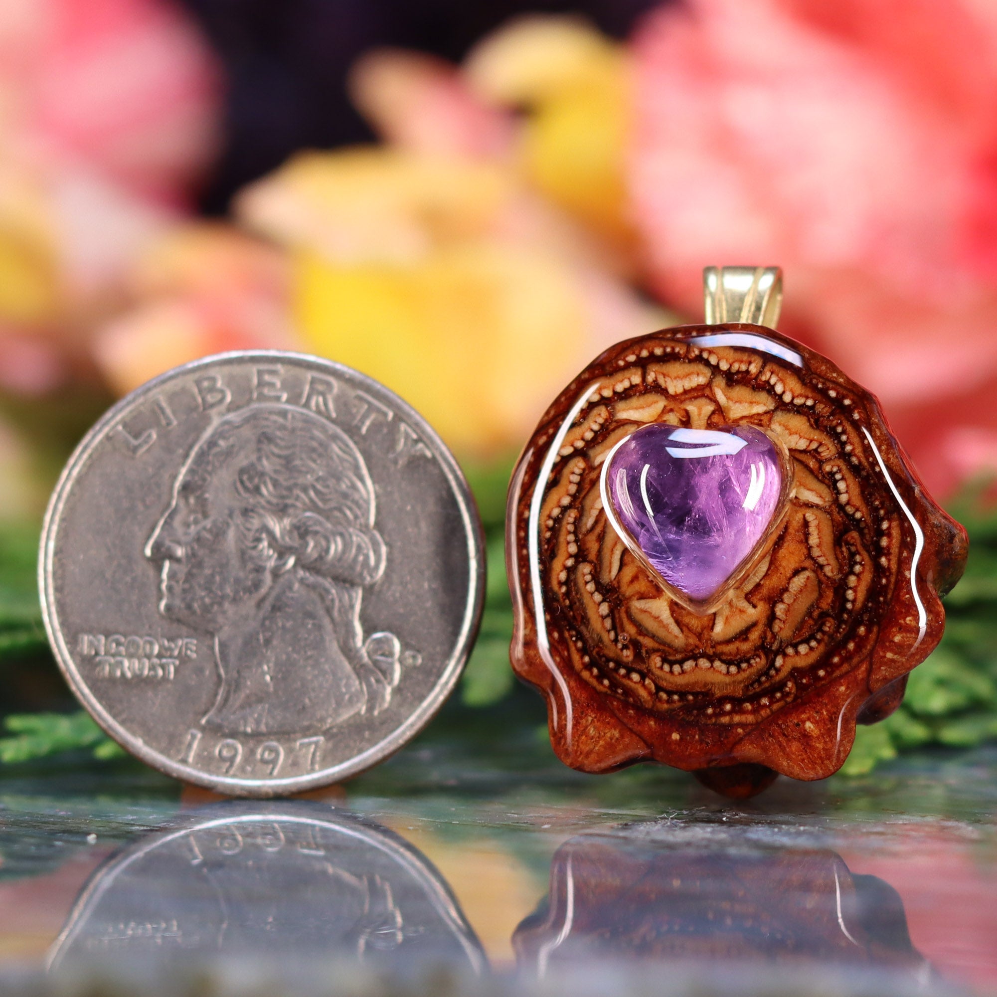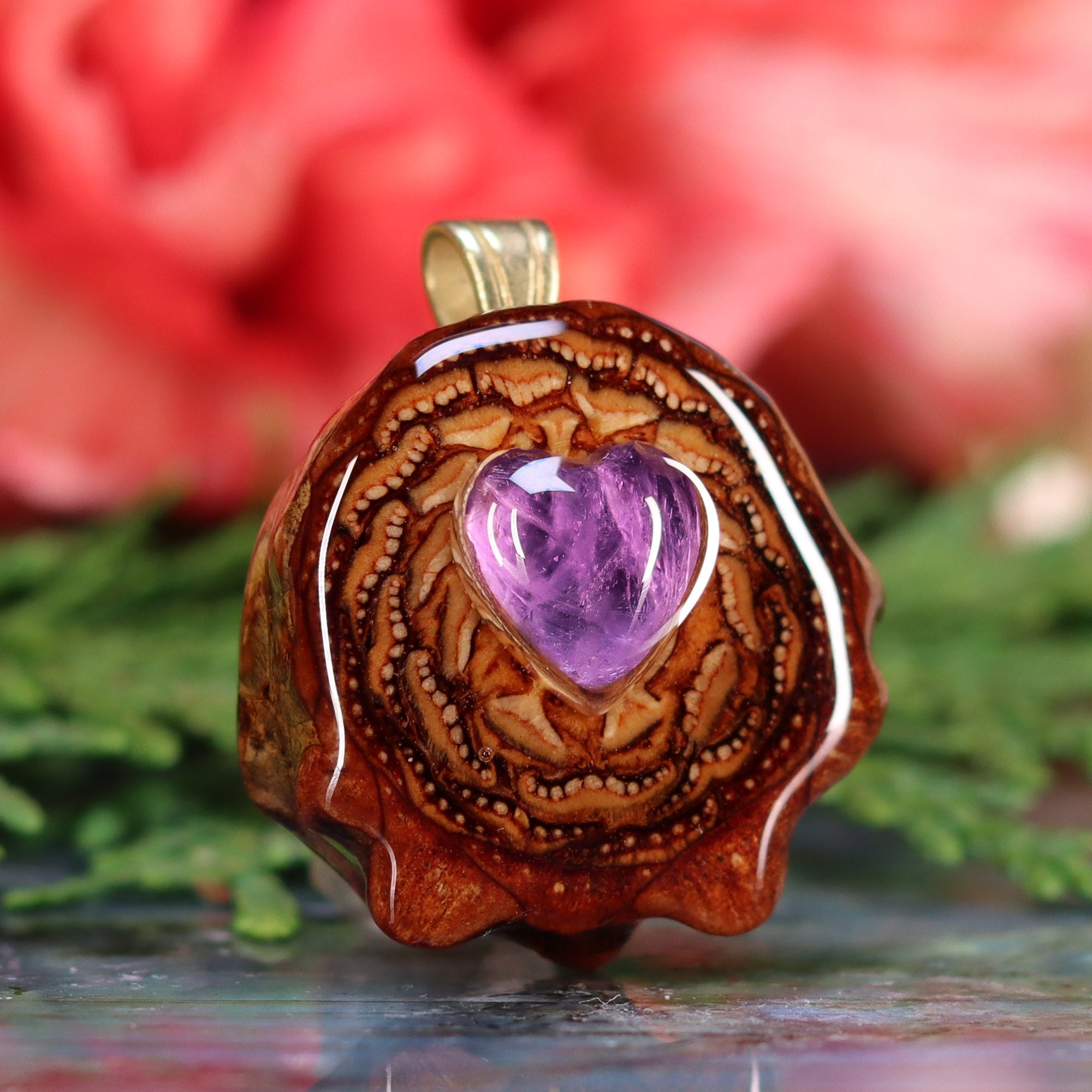 Every pinecone pendant is an elegant gift from Mother Nature -- unveiling the ornate Sacred Geometry hidden at the center of one of the world's densest Pinecones. Because only one cross-section is taken from the "heart" of each Cone, every pendant is absolutely unique, and truly one-of-a-kind.