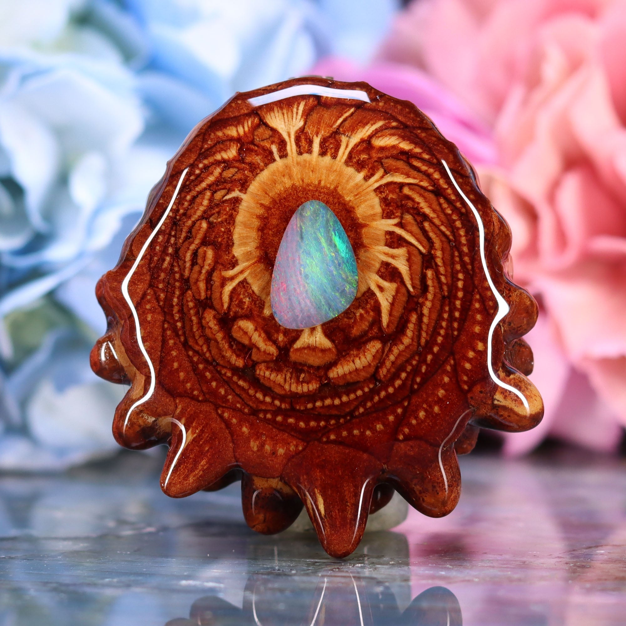 Every pinecone pendant is an elegant gift from Mother Nature -- unveiling the ornate Sacred Geometry hidden at the center of one of the world's densest Pinecones. Because only one cross-section is taken from the "heart" of each Cone, every pendant is absolutely unique, and truly one-of-a-kind.
