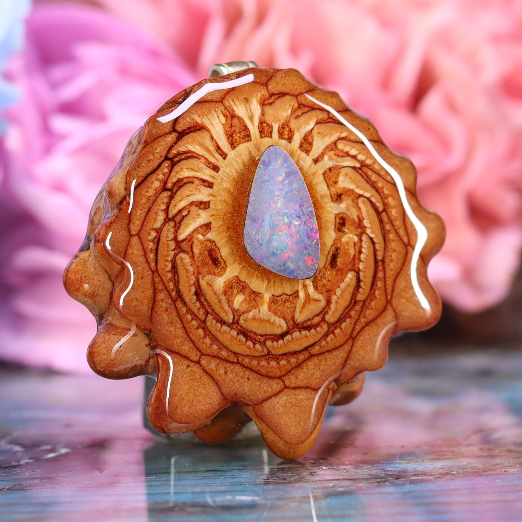 Every pinecone pendant is an elegant gift from Mother Nature -- unveiling the ornate Sacred Geometry hidden at the center of one of the world's densest Pinecones. Because only one cross-section is taken from the "heart" of each Cone, every pendant is absolutely unique, and truly one-of-a-kind.