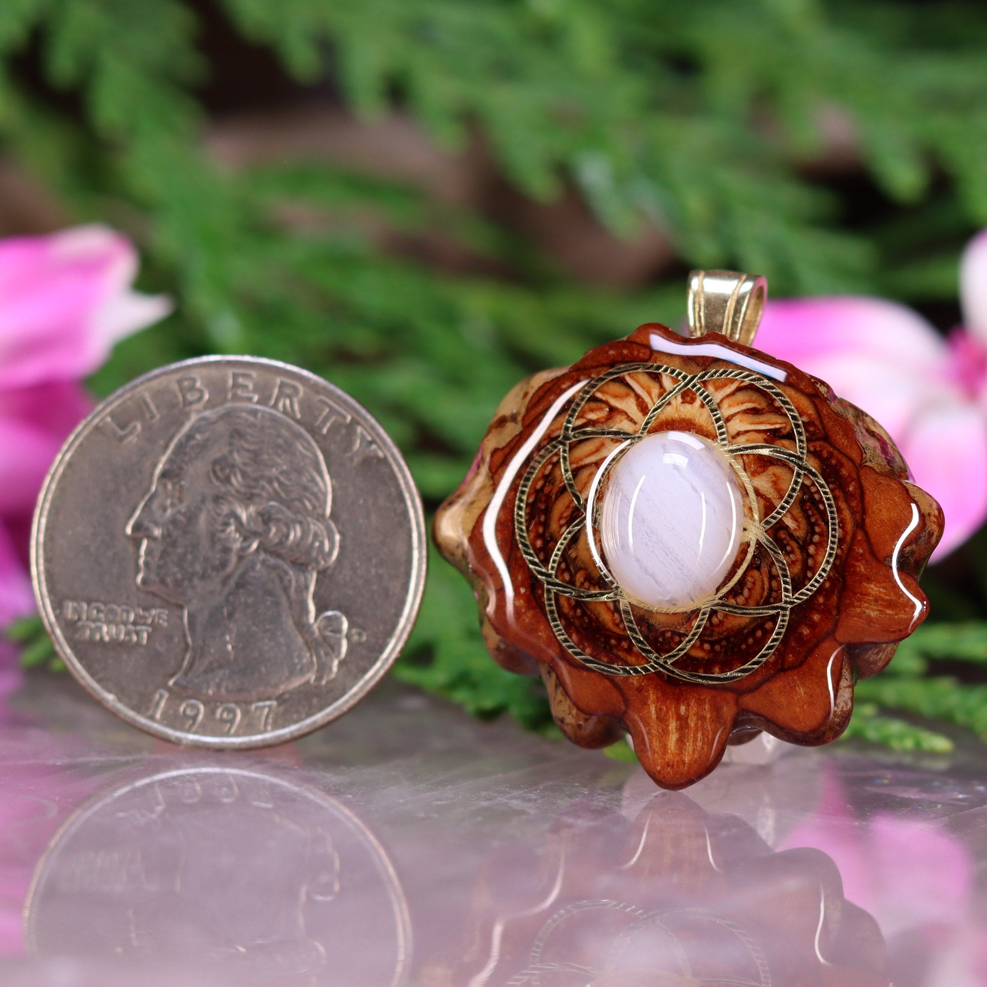 Every pinecone pendant is an elegant gift from Mother Nature -- unveiling the ornate Sacred Geometry hidden at the center of one of the world's densest Pinecones. Because only one cross-section is taken from the "heart" of each Cone, every pendant is absolutely unique, and truly one-of-a-kind.