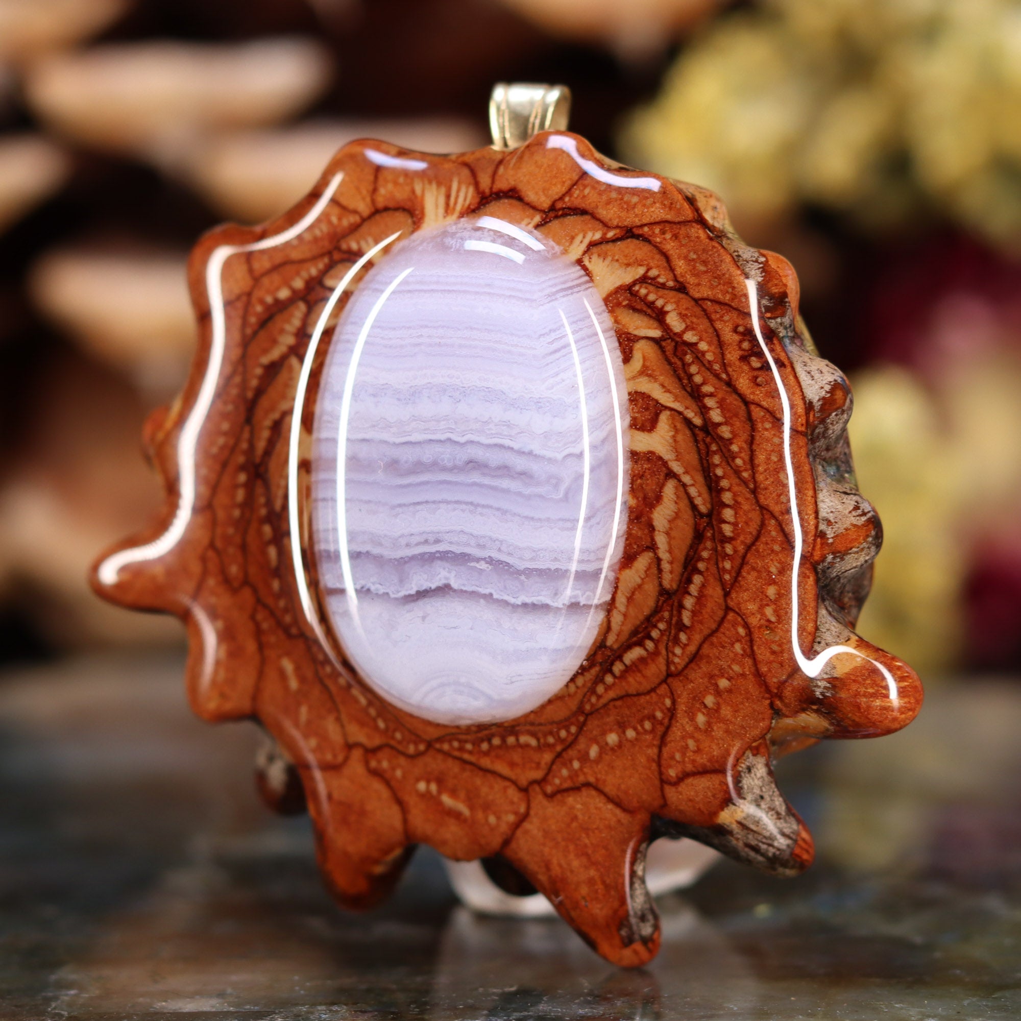 Every pinecone pendant is an elegant gift from Mother Nature -- unveiling the ornate Sacred Geometry hidden at the center of one of the world's densest Pinecones. Because only one cross-section is taken from the "heart" of each Cone, every pendant is absolutely unique, and truly one-of-a-kind.