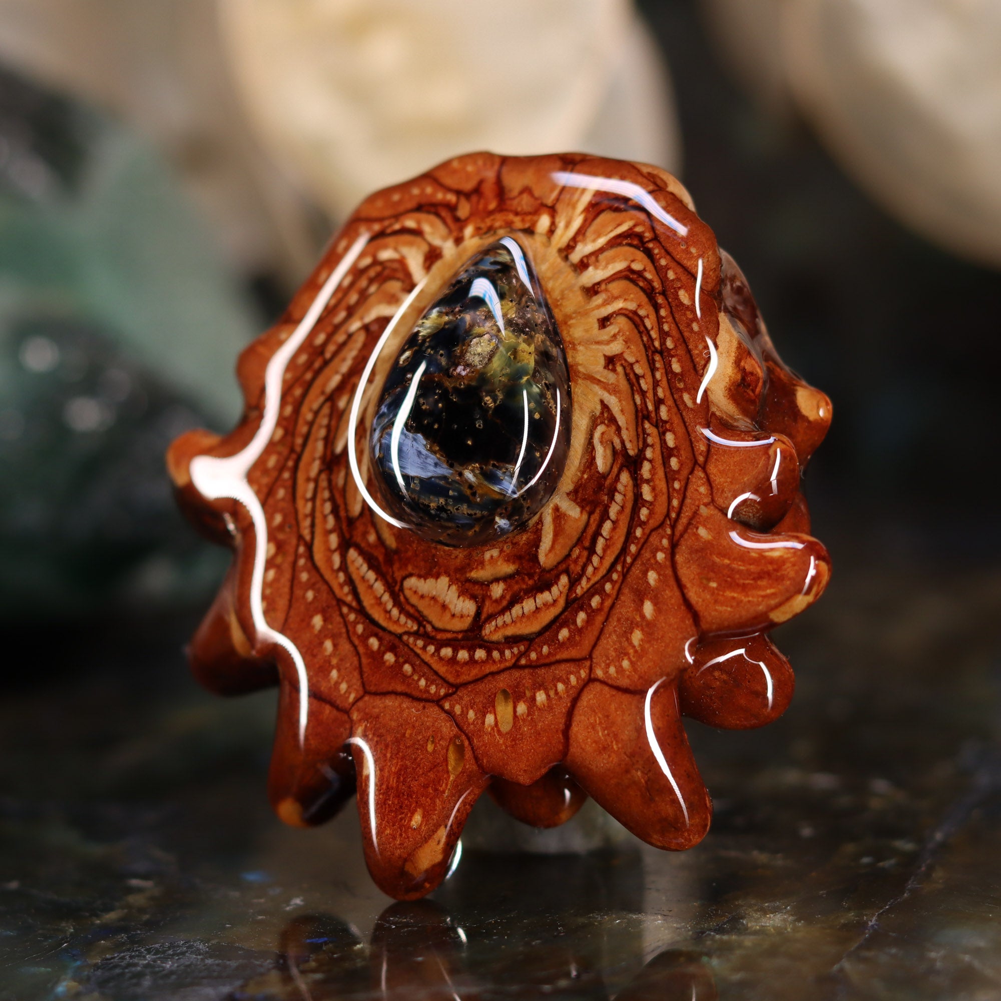 Every pinecone pendant is an elegant gift from Mother Nature -- unveiling the ornate Sacred Geometry hidden at the center of one of the world's densest Pinecones. Because only one cross-section is taken from the "heart" of each Cone, every pendant is absolutely unique, and truly one-of-a-kind.