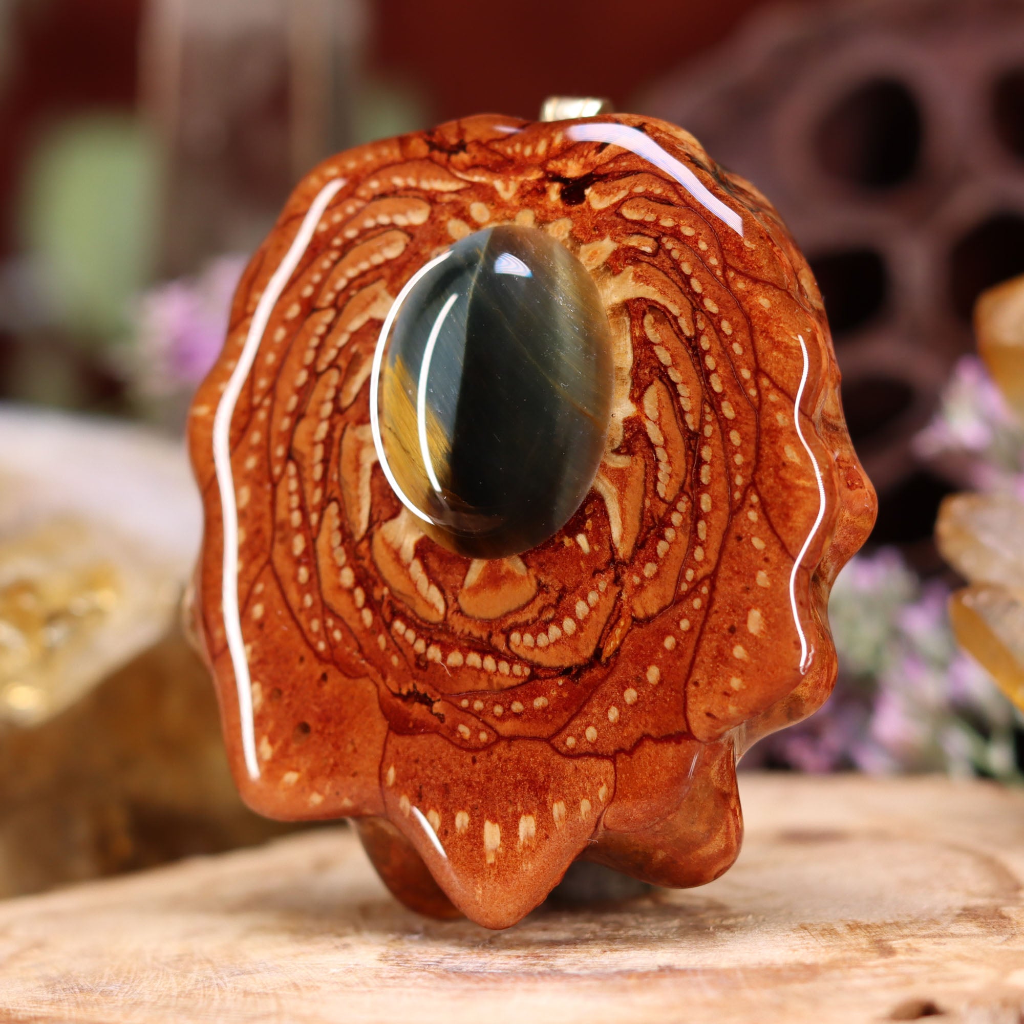 Traditionally carried as a protective talisman to ward off ill will and curses, Tiger's Eye is thought to combine the grounding (yin) energy of the earth with the higher vibrational (yang) energy of the sun, facilitating heightened intuition and awareness without losing one's root. It is associated with clarity, focus, and differentiation – assisting in accomplishing goals, recognizing one's inner resources and promoting refinement of intention. It also integrates the two hemispheres of the brain, enhances visual acuity, and is especially helpful for resolving difficult dilemmas and internal conflicts.