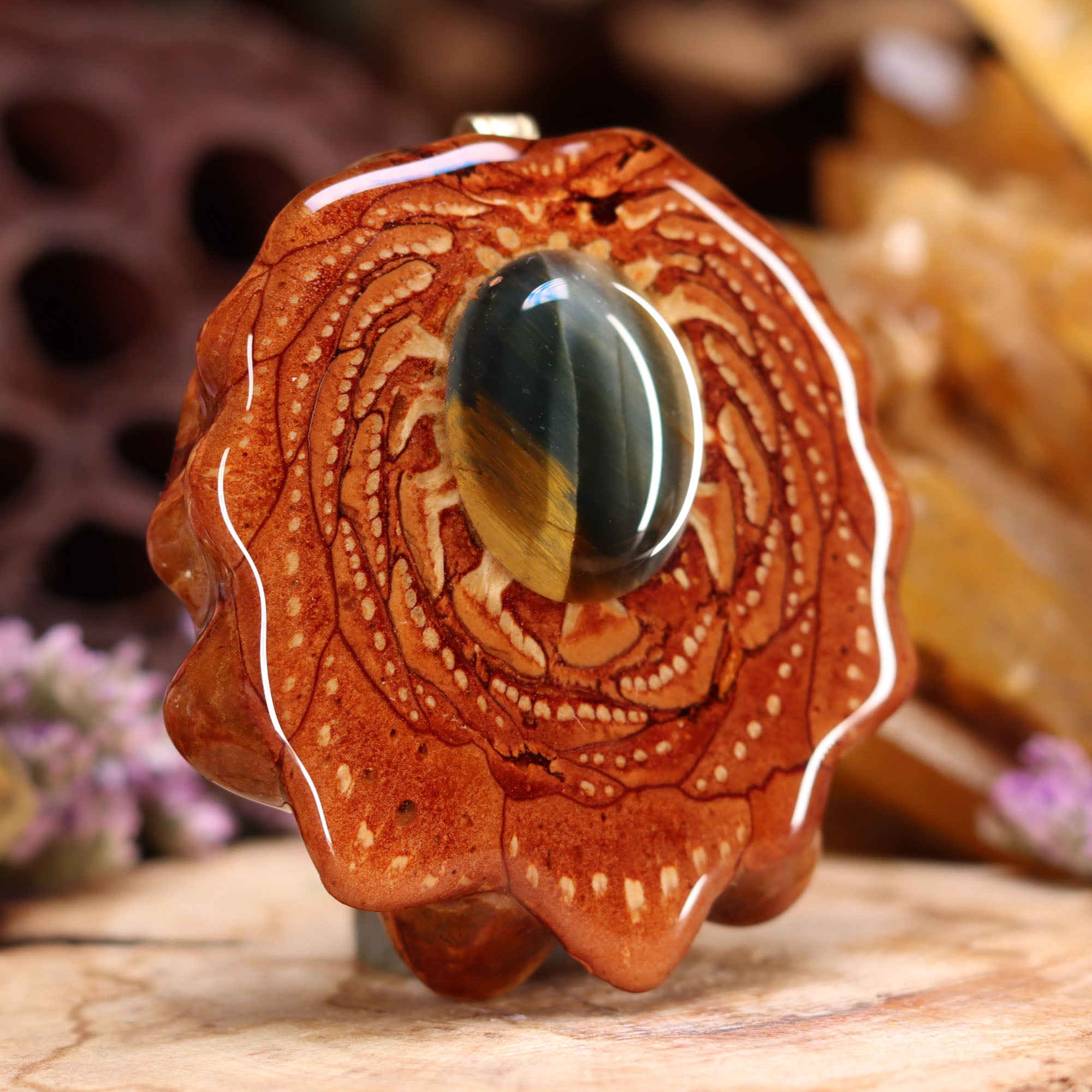 Every pinecone pendant is an elegant gift from Mother Nature -- unveiling the ornate Sacred Geometry hidden at the center of one of the world's densest Pinecones. Because only one cross-section is taken from the "heart" of each Cone, every pendant is absolutely unique, and truly one-of-a-kind.