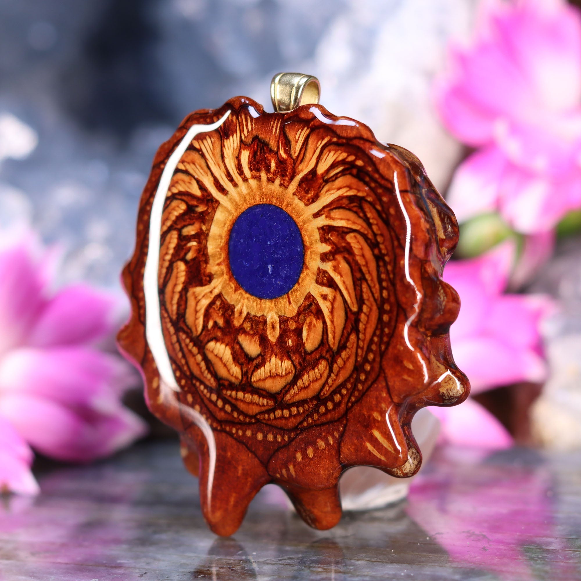 Crushed Lapis has been carefully mixed with a Phosphorescent Powder, then inlaid into the center of this unique pendant -- causing it to gently "Glow" in the dark, in addition to its vibrant color during the day!