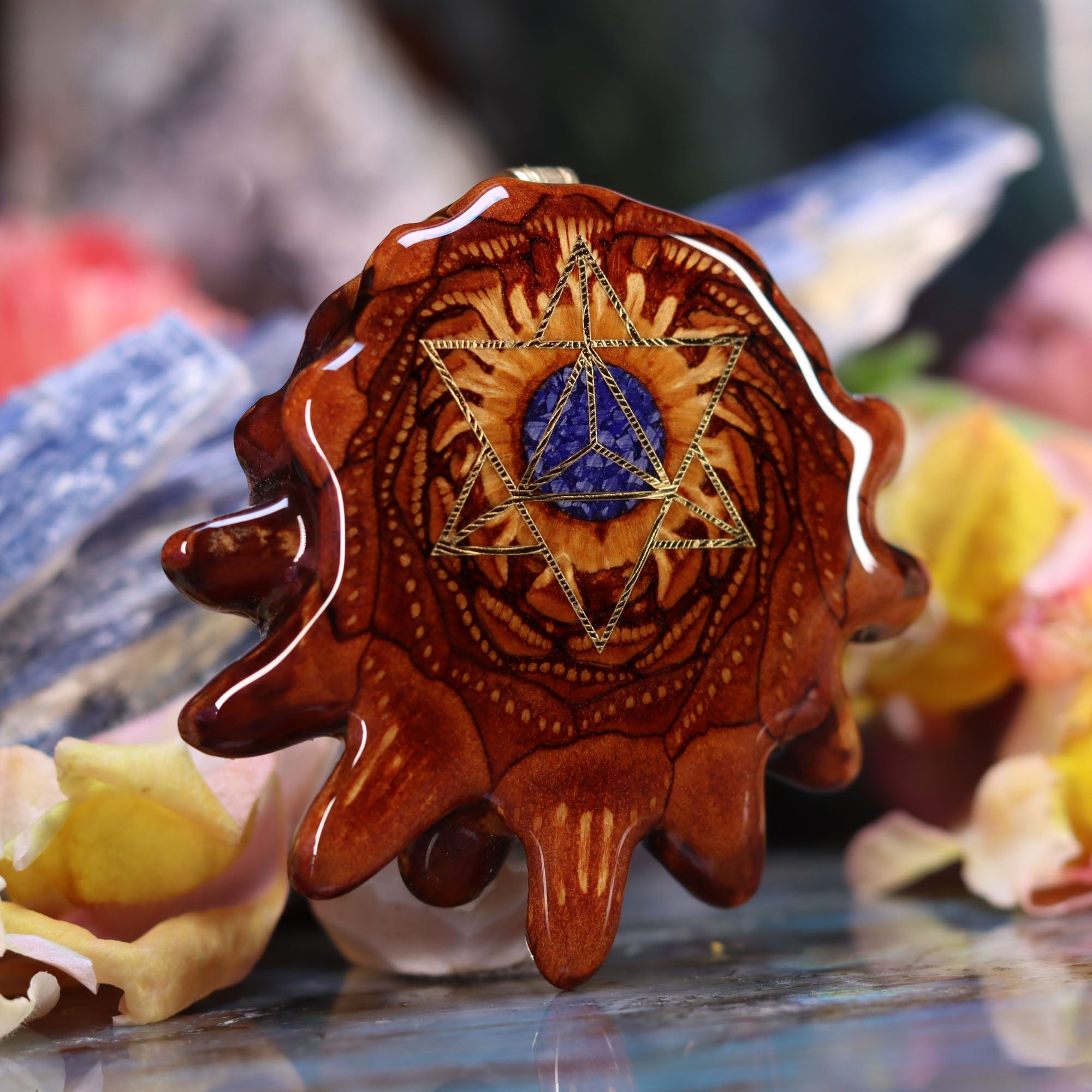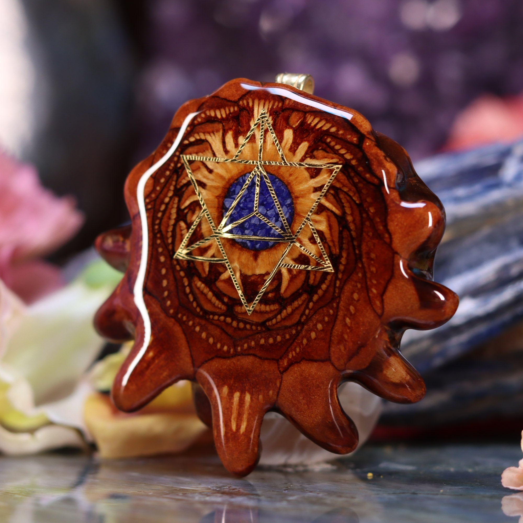 This Pinecone has been anointed with our "Merkaba" emblem, cast in 24k Gold. Merkaba - "Mer" meaning Light, "Ka" meaning Spirit, and "Ba" meaning Body - is a powerful icon historically known as the "Vehicle of ascension". The Merkaba opens the mind to increased awareness and promotes deep conscious interconnection.