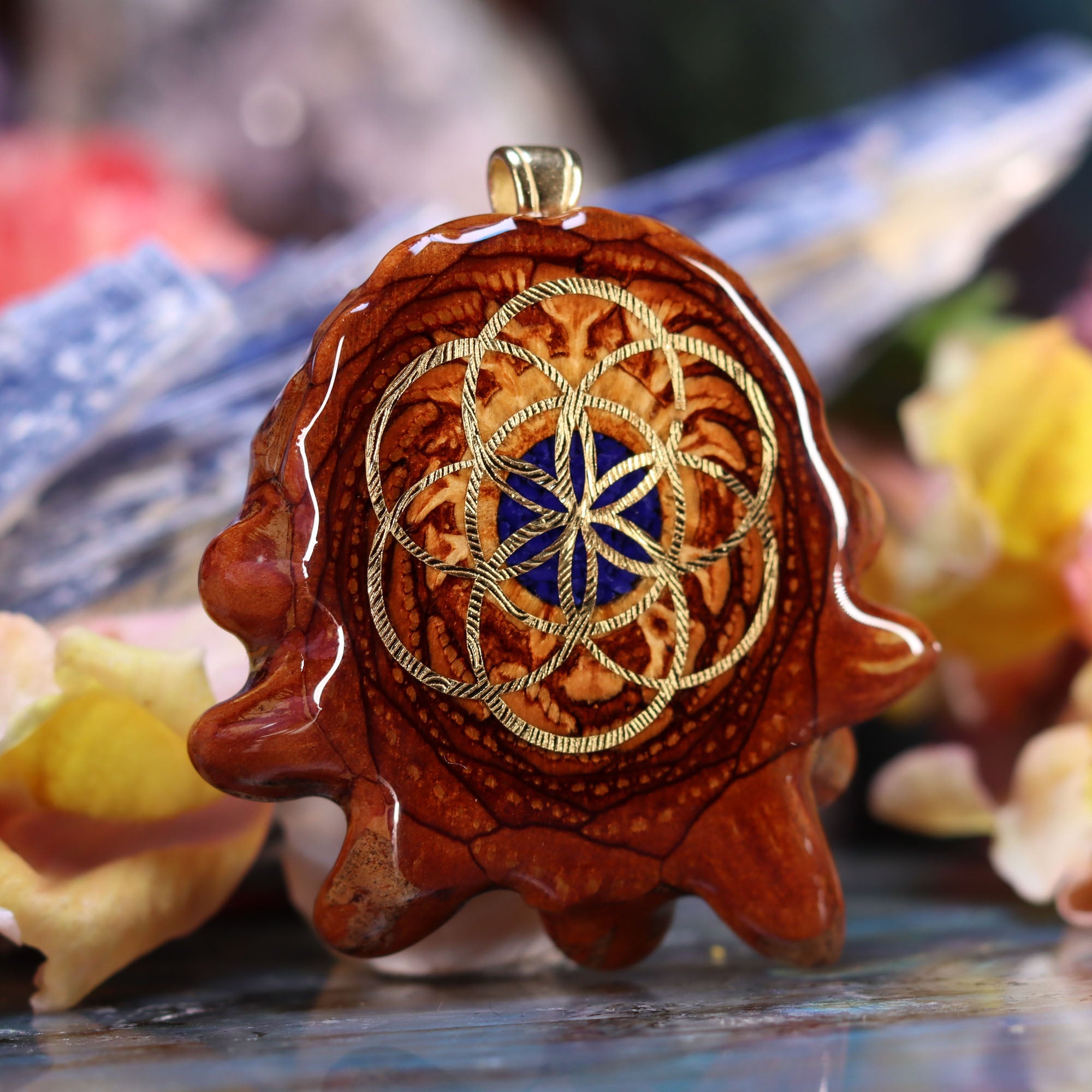 Every pinecone pendant is an elegant gift from Mother Nature -- unveiling the ornate Sacred Geometry hidden at the center of one of the world's densest Pinecones. Because only one cross-section is taken from the "heart" of each Cone, every pendant is absolutely unique, and truly one-of-a-kind.