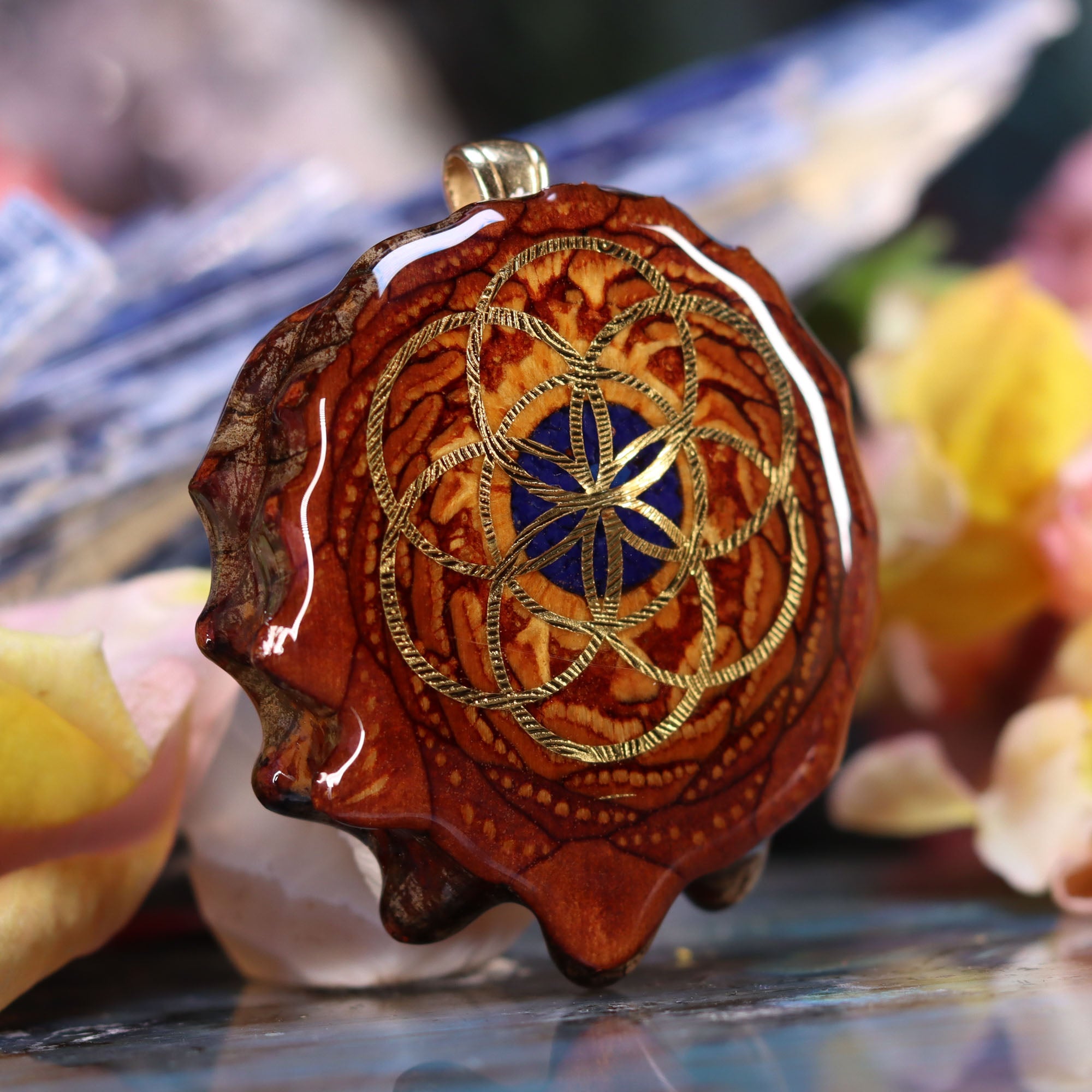 Every pinecone pendant is an elegant gift from Mother Nature -- unveiling the ornate Sacred Geometry hidden at the center of one of the world's densest Pinecones. Because only one cross-section is taken from the "heart" of each Cone, every pendant is absolutely unique, and truly one-of-a-kind.