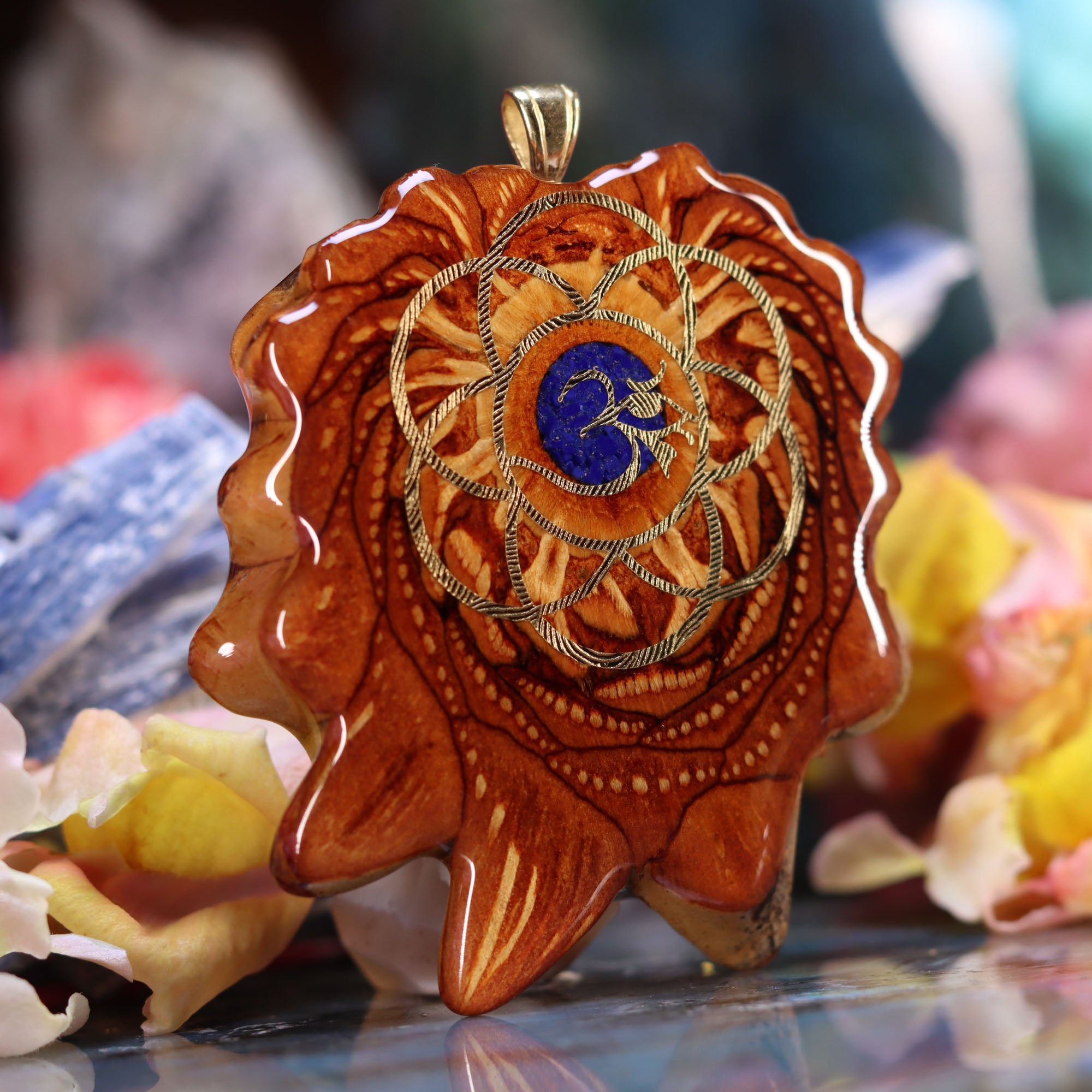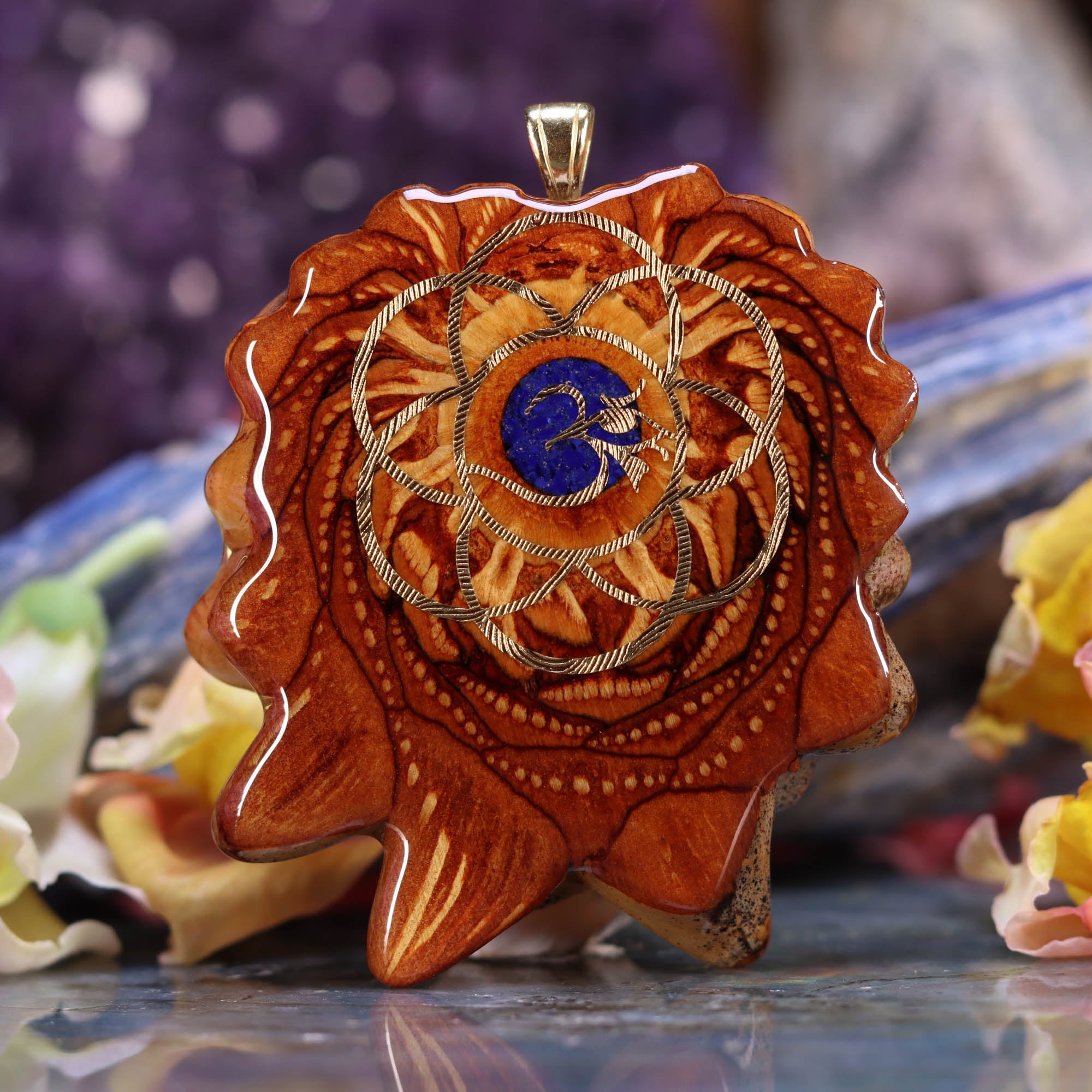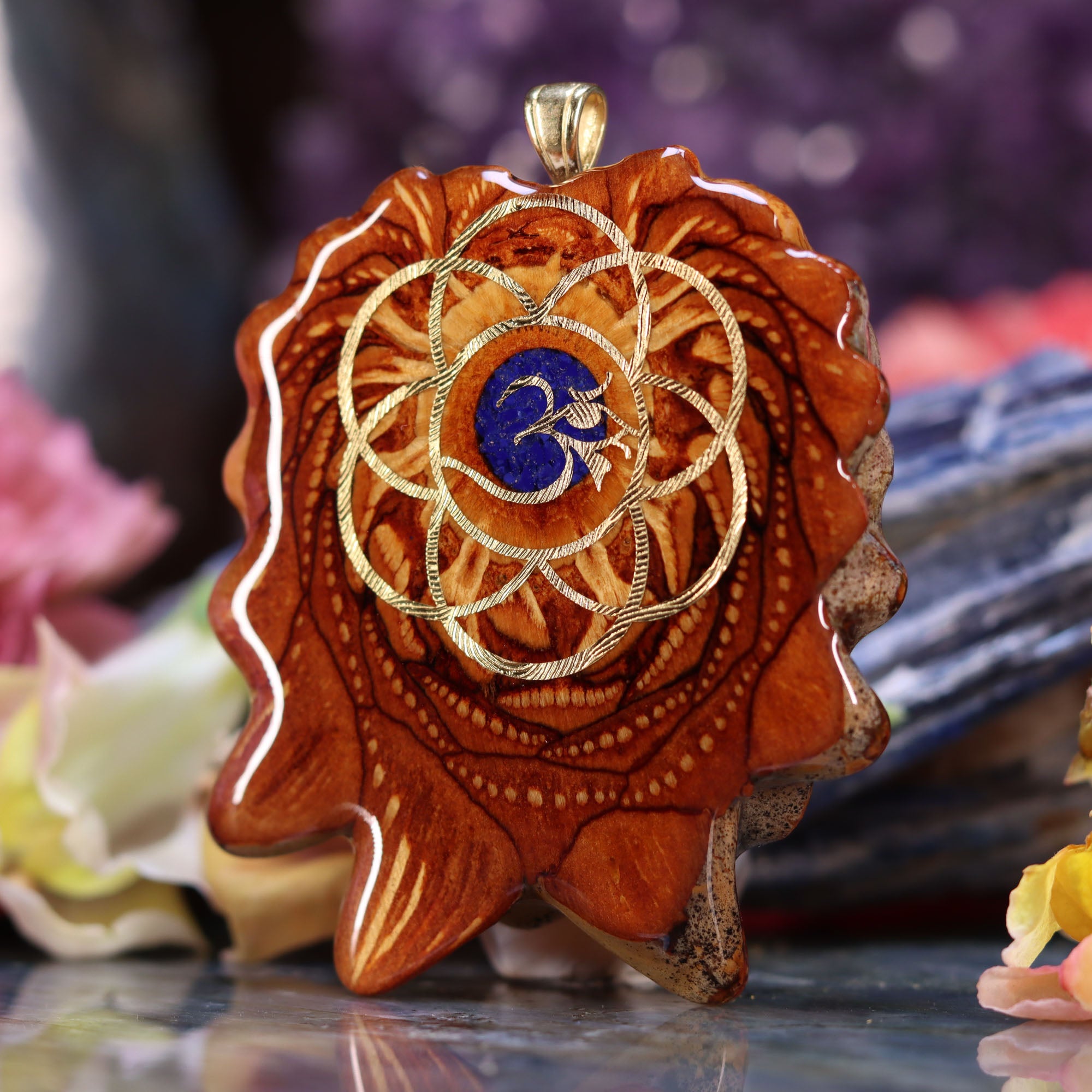 Crushed Lapis (Glows) with Gold Seed of Life and Front Om