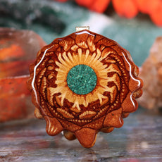 Every pinecone pendant is an elegant gift from Mother Nature -- unveiling the ornate Sacred Geometry hidden at the center of one of the world's densest Pinecones. Because only one cross-section is taken from the "heart" of each Cone, every pendant is absolutely unique, and truly one-of-a-kind.