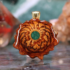 Every pinecone pendant is an elegant gift from Mother Nature -- unveiling the ornate Sacred Geometry hidden at the center of one of the world's densest Pinecones. Because only one cross-section is taken from the "heart" of each Cone, every pendant is absolutely unique, and truly one-of-a-kind.