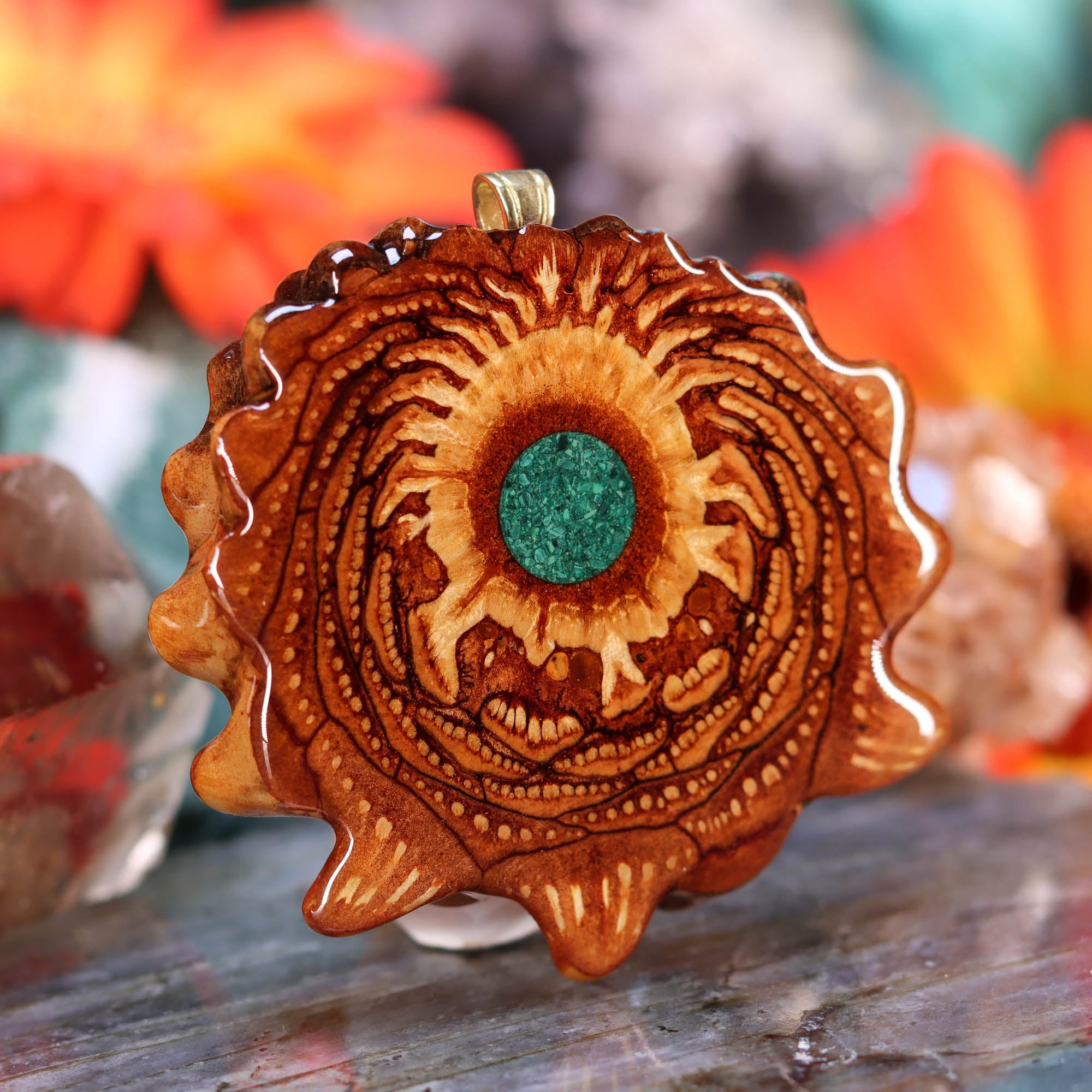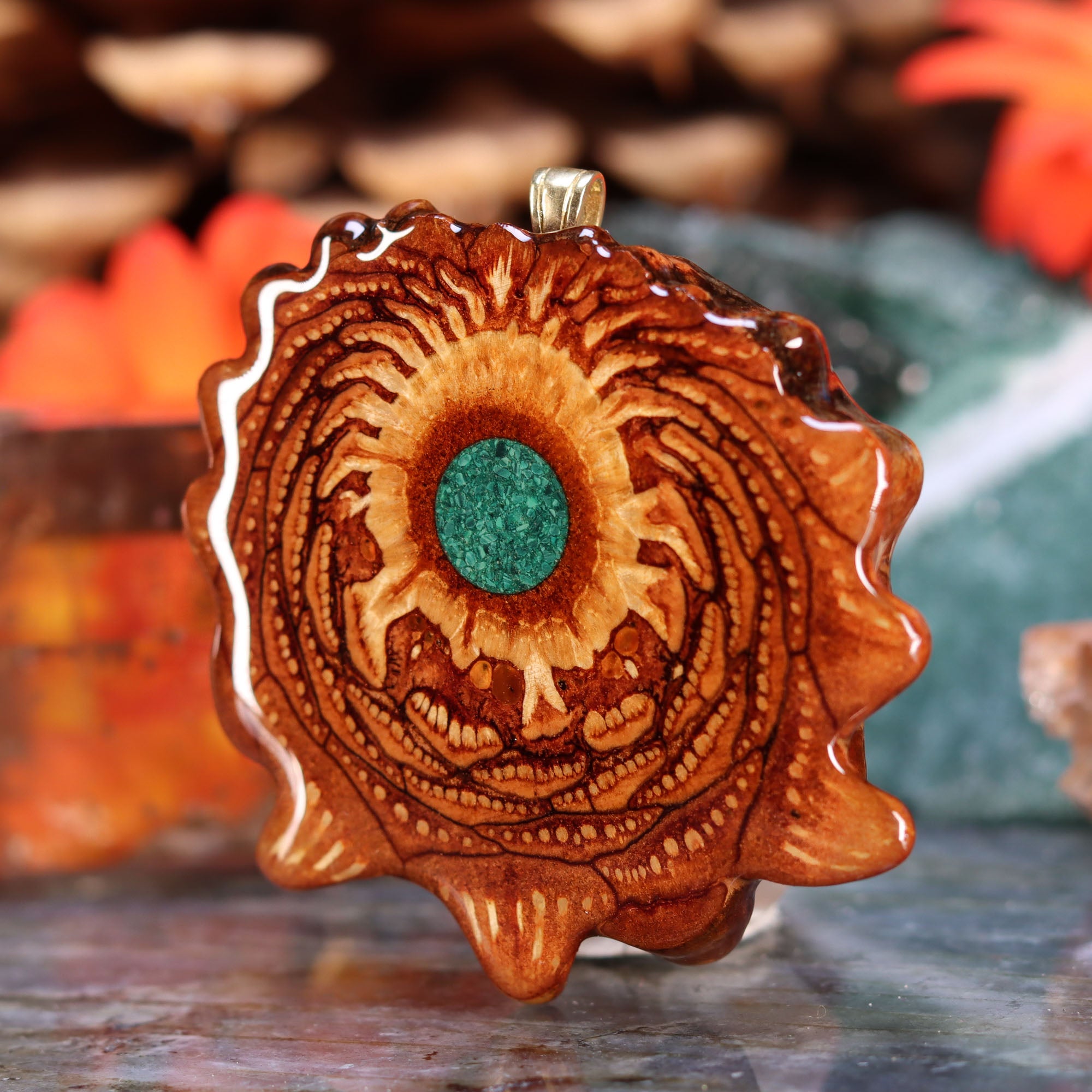 Every pinecone pendant is an elegant gift from Mother Nature -- unveiling the ornate Sacred Geometry hidden at the center of one of the world's densest Pinecones. Because only one cross-section is taken from the "heart" of each Cone, every pendant is absolutely unique, and truly one-of-a-kind.