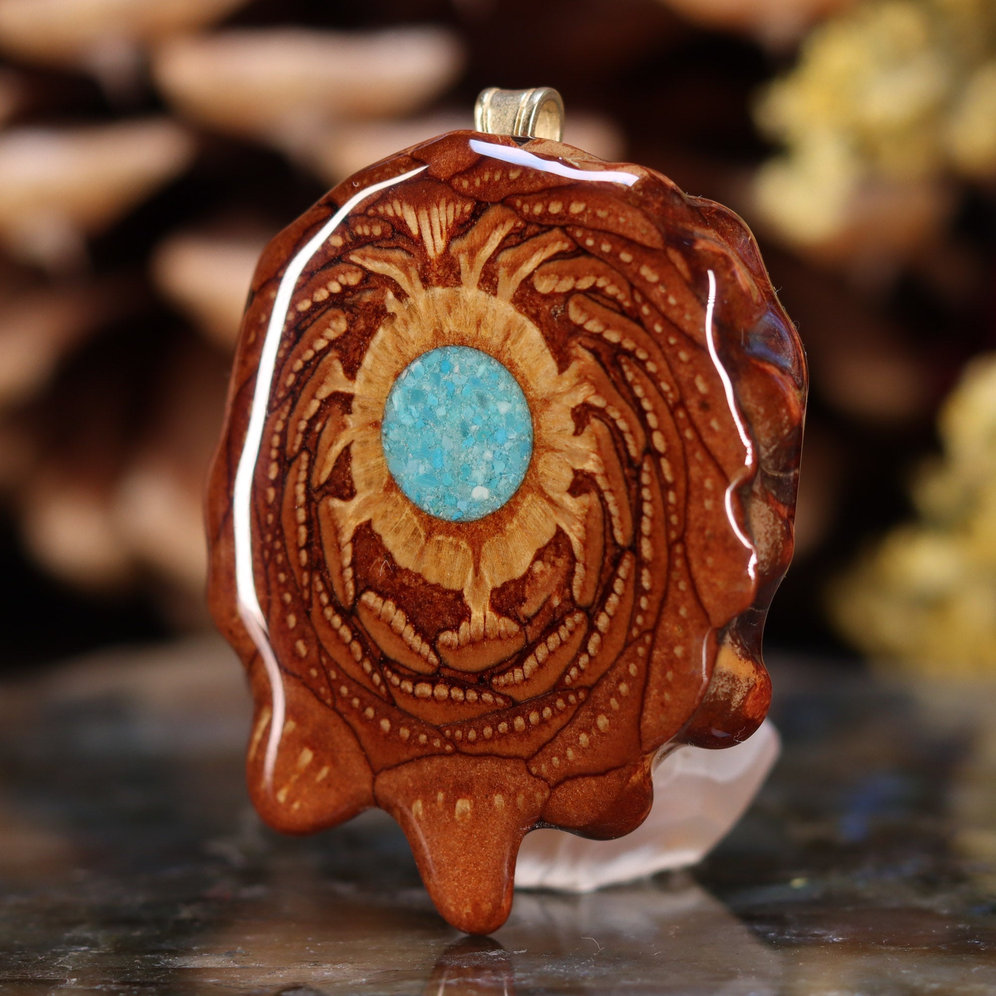 Every pinecone pendant is an elegant gift from Mother Nature -- unveiling the ornate Sacred Geometry hidden at the center of one of the world's densest Pinecones. Because only one cross-section is taken from the "heart" of each Cone, every pendant is absolutely unique, and truly one-of-a-kind.