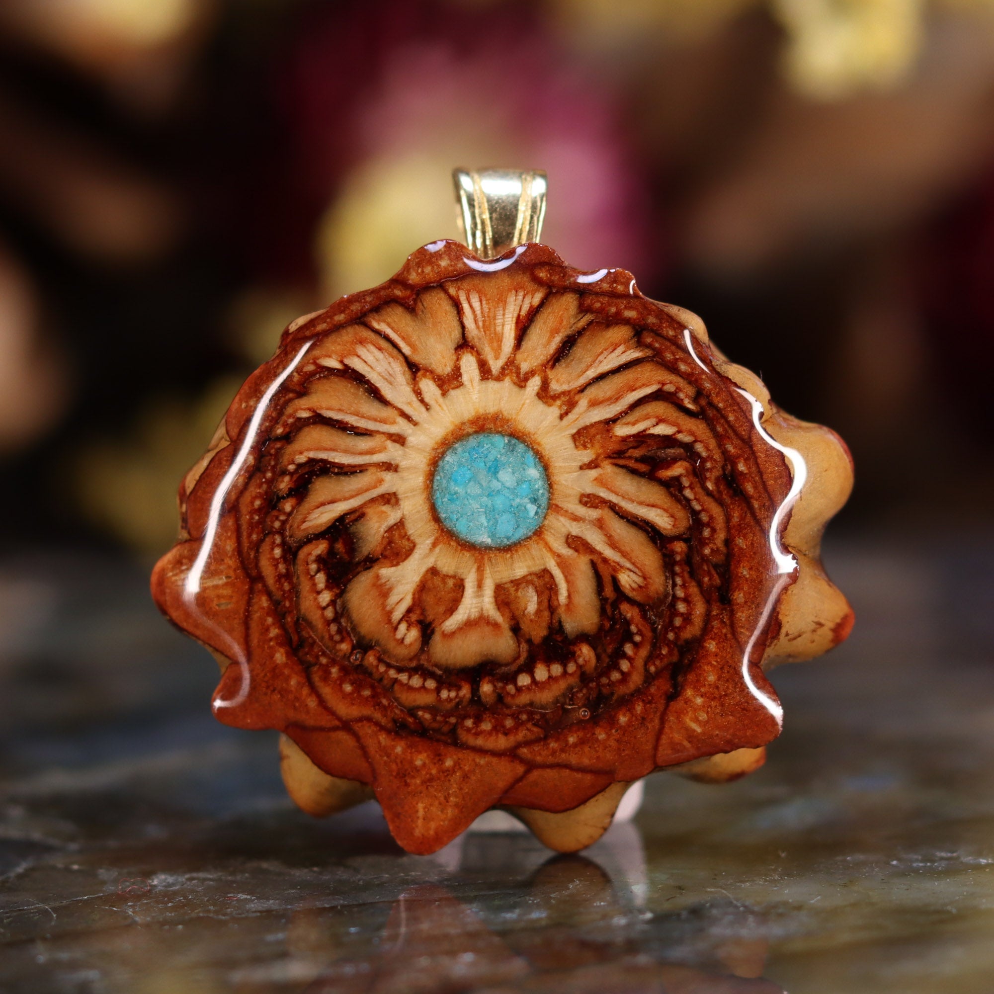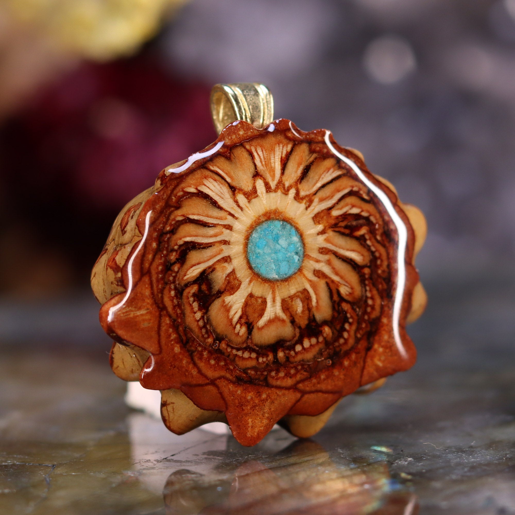 Every pinecone pendant is an elegant gift from Mother Nature -- unveiling the ornate Sacred Geometry hidden at the center of one of the world's densest Pinecones. Because only one cross-section is taken from the "heart" of each Cone, every pendant is absolutely unique, and truly one-of-a-kind.