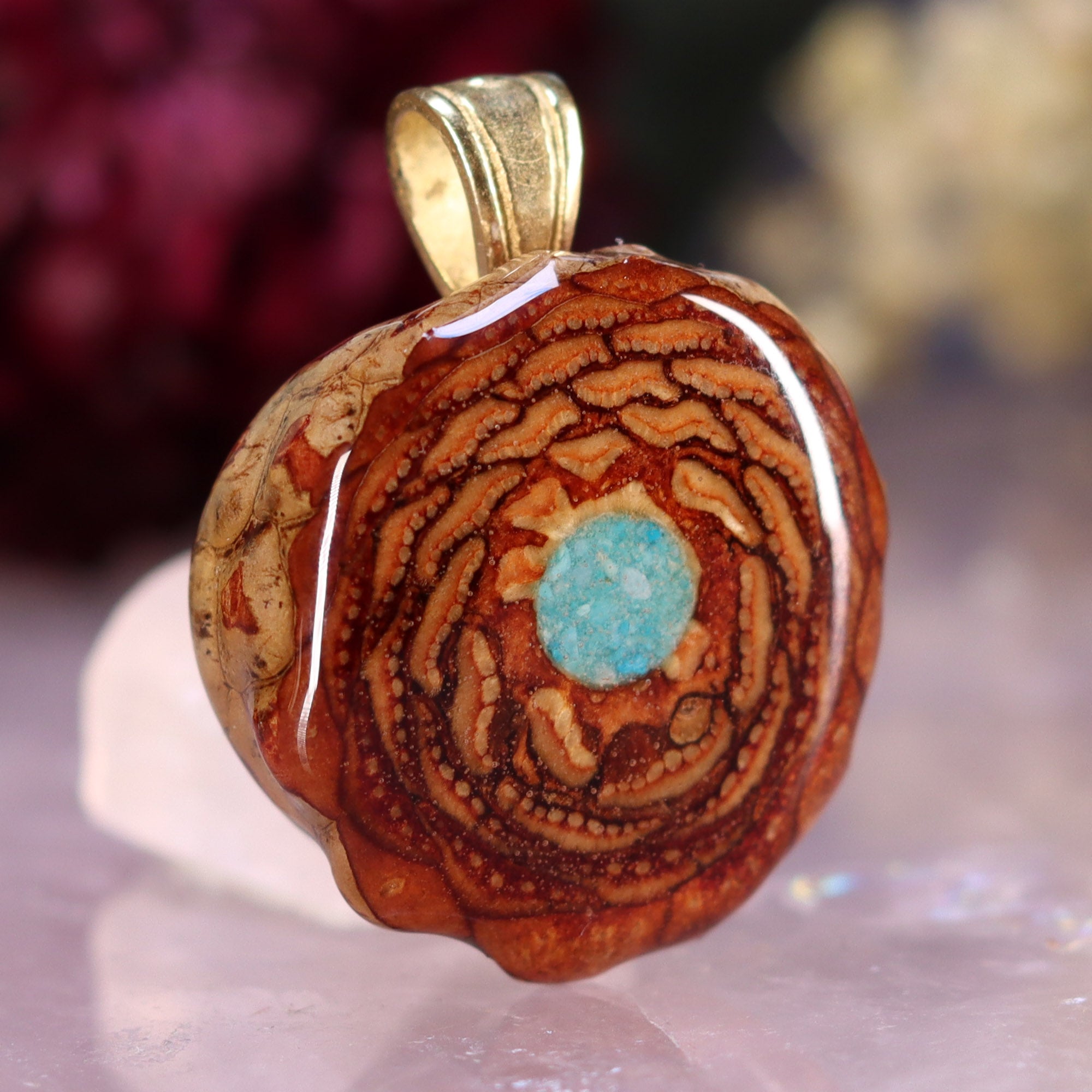 Every pinecone pendant is an elegant gift from Mother Nature -- unveiling the ornate Sacred Geometry hidden at the center of one of the world's densest Pinecones. Because only one cross-section is taken from the "heart" of each Cone, every pendant is absolutely unique, and truly one-of-a-kind.
