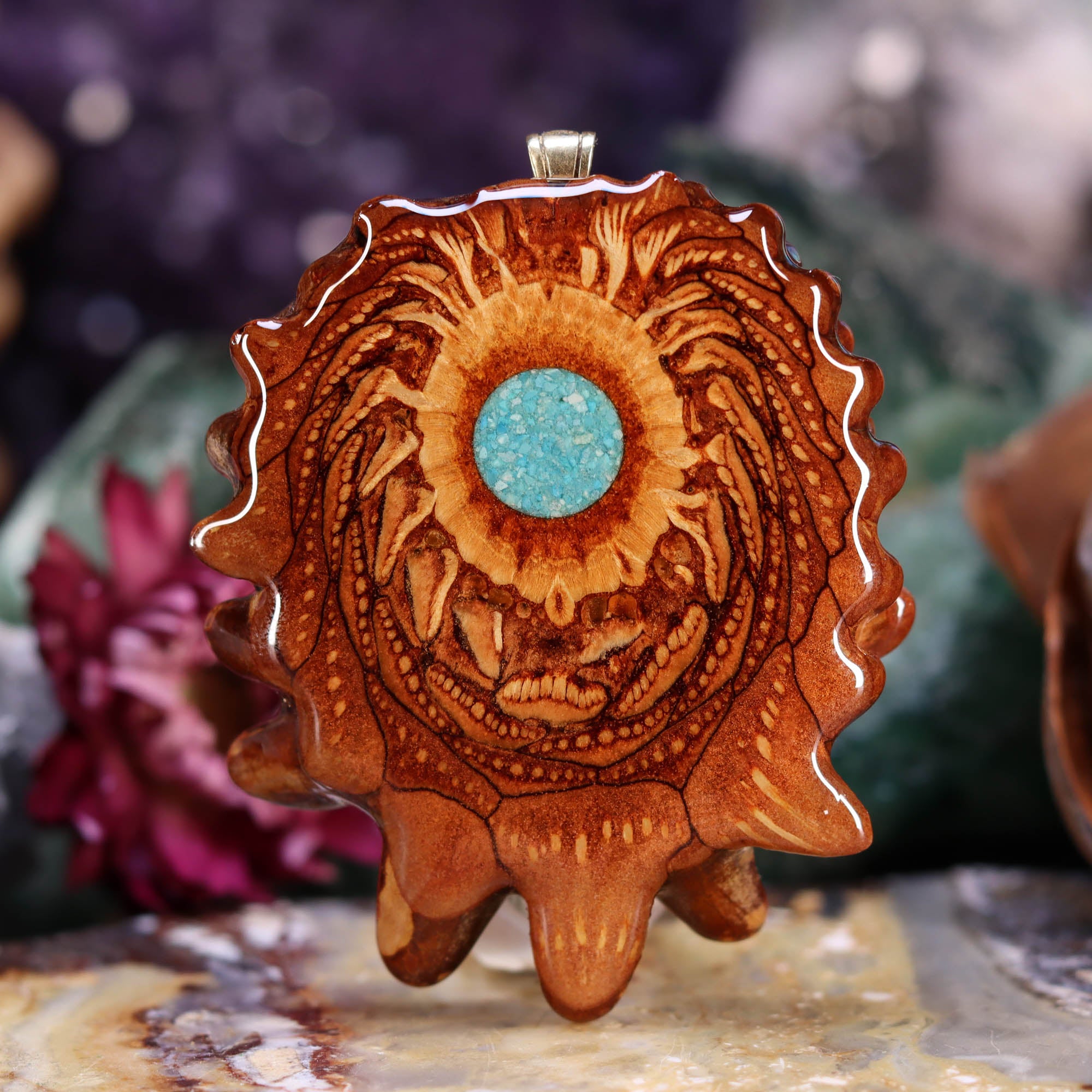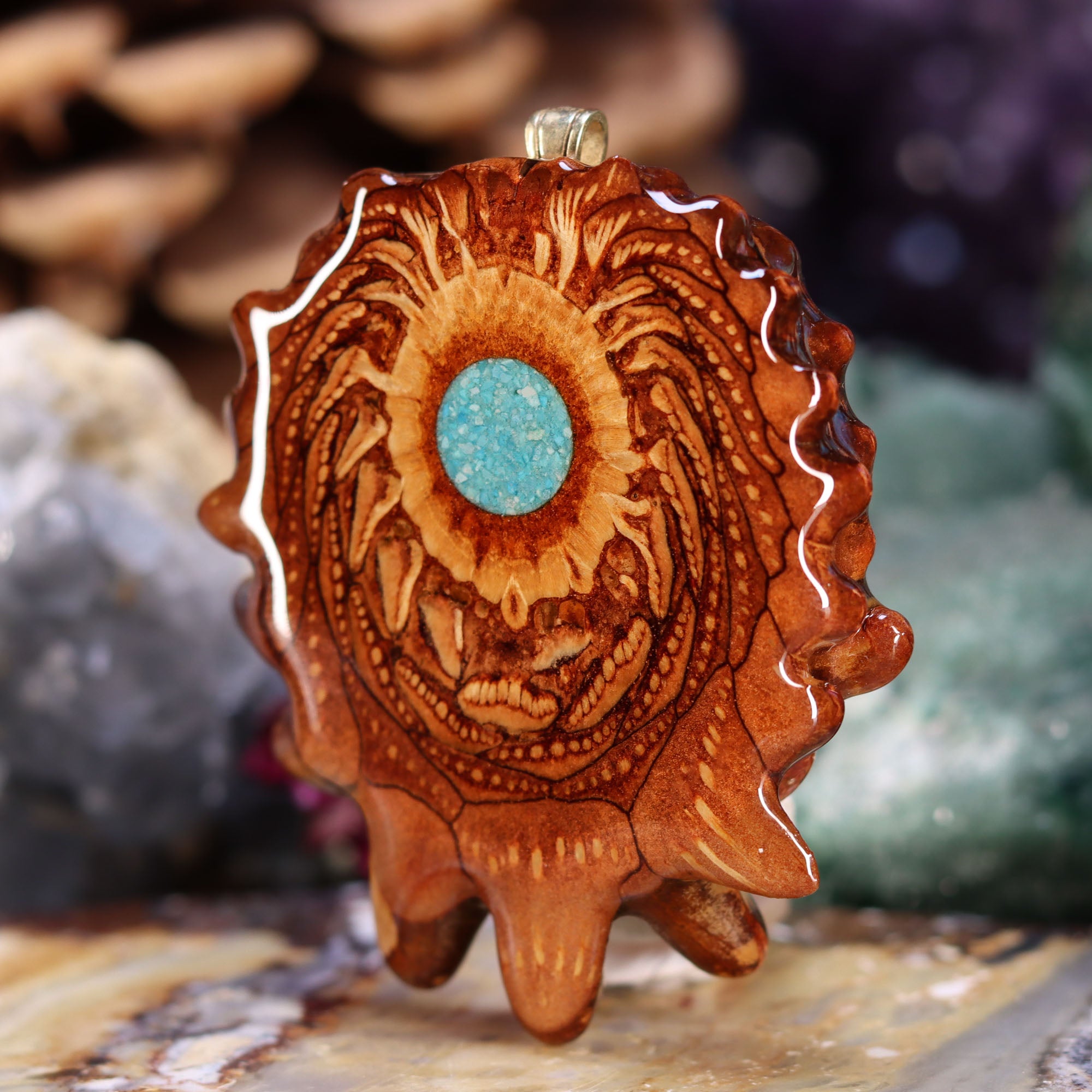 Every pinecone pendant is an elegant gift from Mother Nature -- unveiling the ornate Sacred Geometry hidden at the center of one of the world's densest Pinecones. Because only one cross-section is taken from the "heart" of each Cone, every pendant is absolutely unique, and truly one-of-a-kind.
