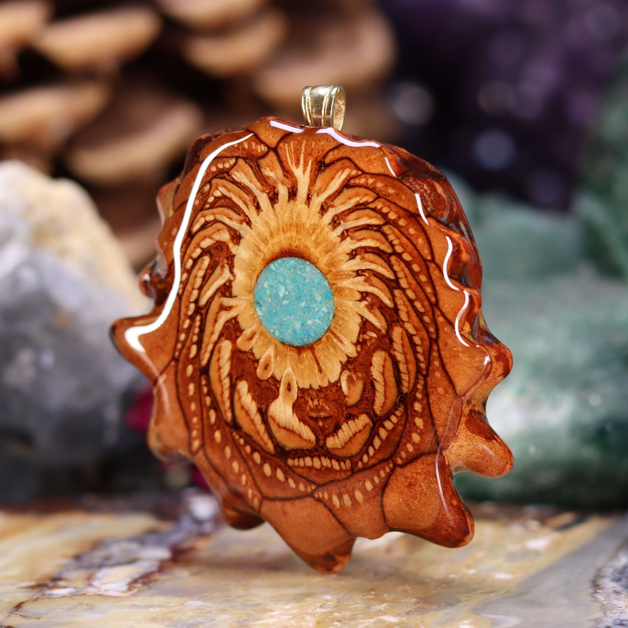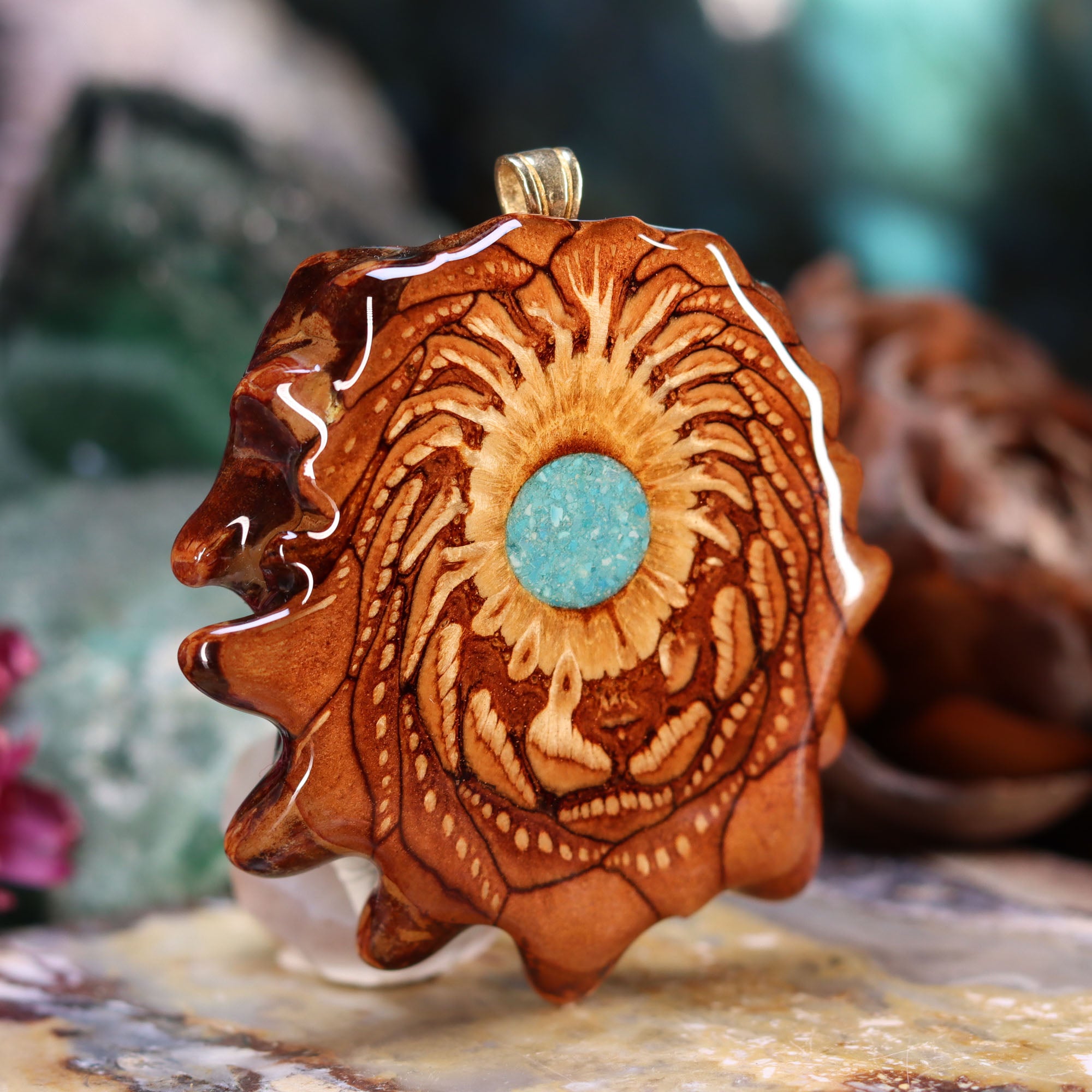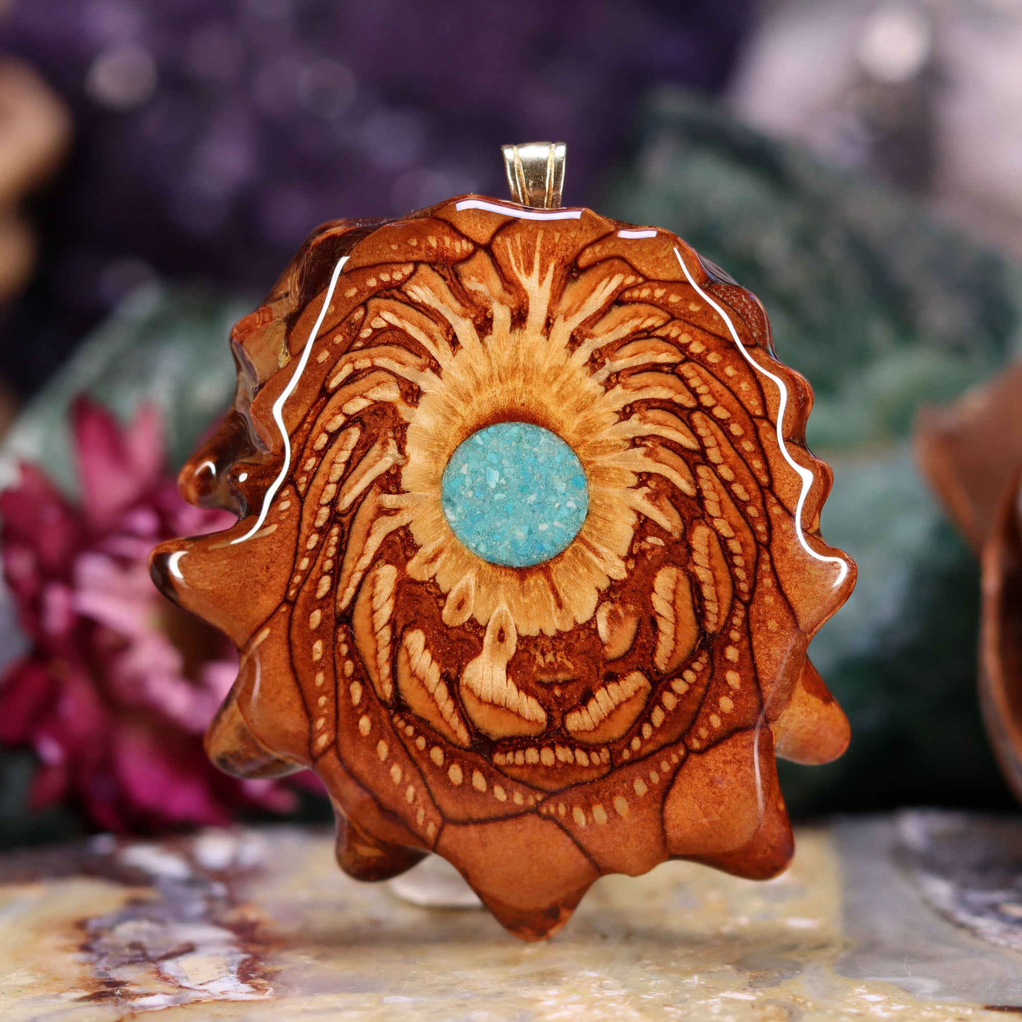 Every pinecone pendant is an elegant gift from Mother Nature -- unveiling the ornate Sacred Geometry hidden at the center of one of the world's densest Pinecones. Because only one cross-section is taken from the "heart" of each Cone, every pendant is absolutely unique, and truly one-of-a-kind.