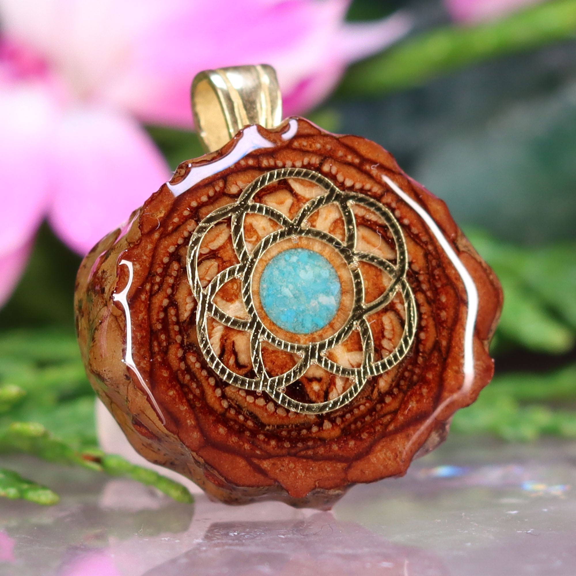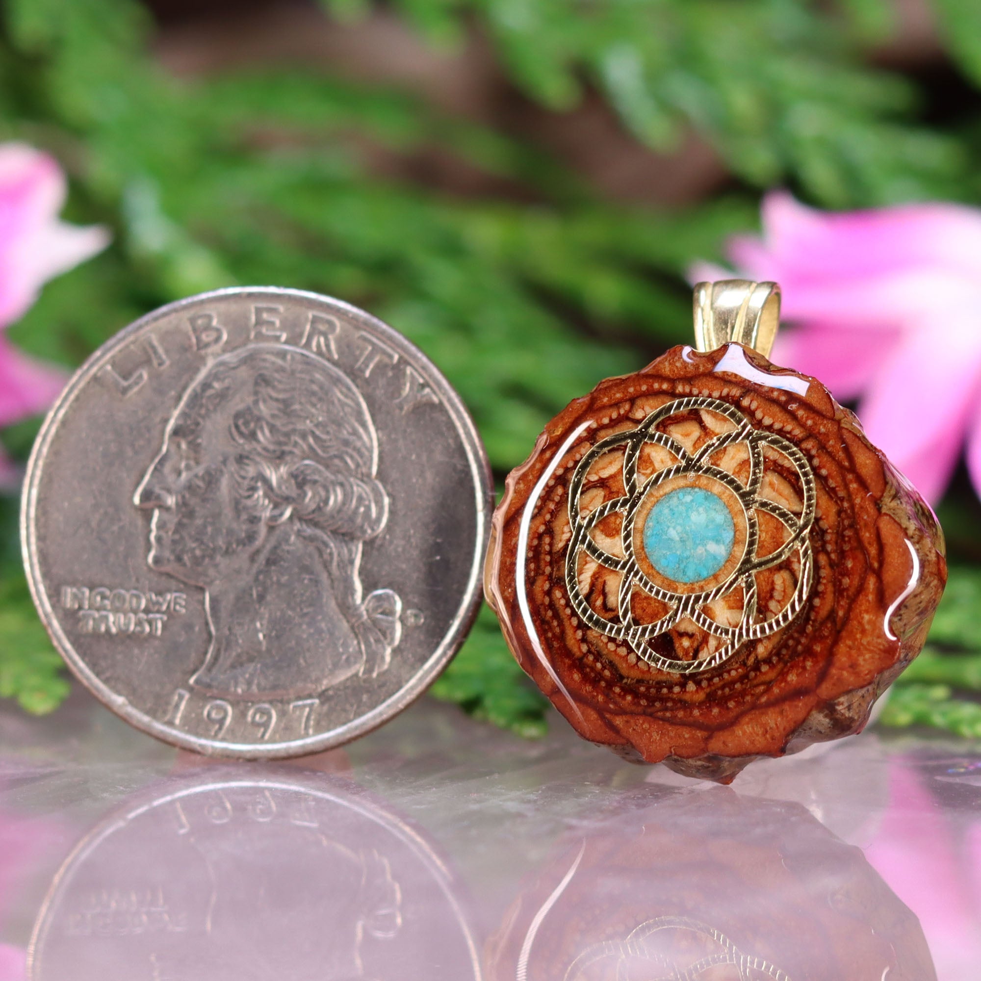 Every pinecone pendant is an elegant gift from Mother Nature -- unveiling the ornate Sacred Geometry hidden at the center of one of the world's densest Pinecones. Because only one cross-section is taken from the "heart" of each Cone, every pendant is absolutely unique, and truly one-of-a-kind.