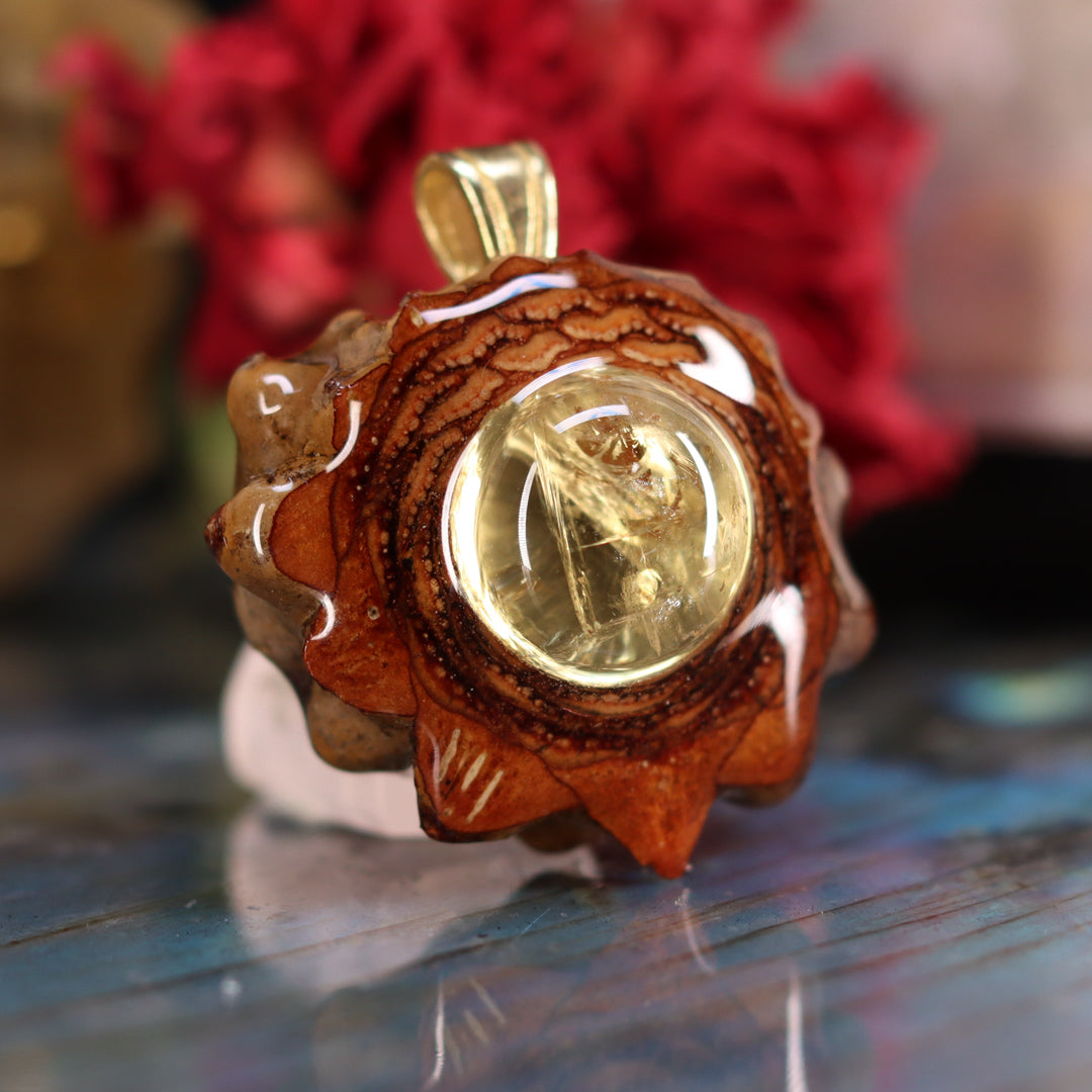 Every pinecone pendant is an elegant gift from Mother Nature -- unveiling the ornate Sacred Geometry hidden at the center of one of the world's densest Pinecones. Because only one cross-section is taken from the "heart" of each Cone, every pendant is absolutely unique, and truly one-of-a-kind.