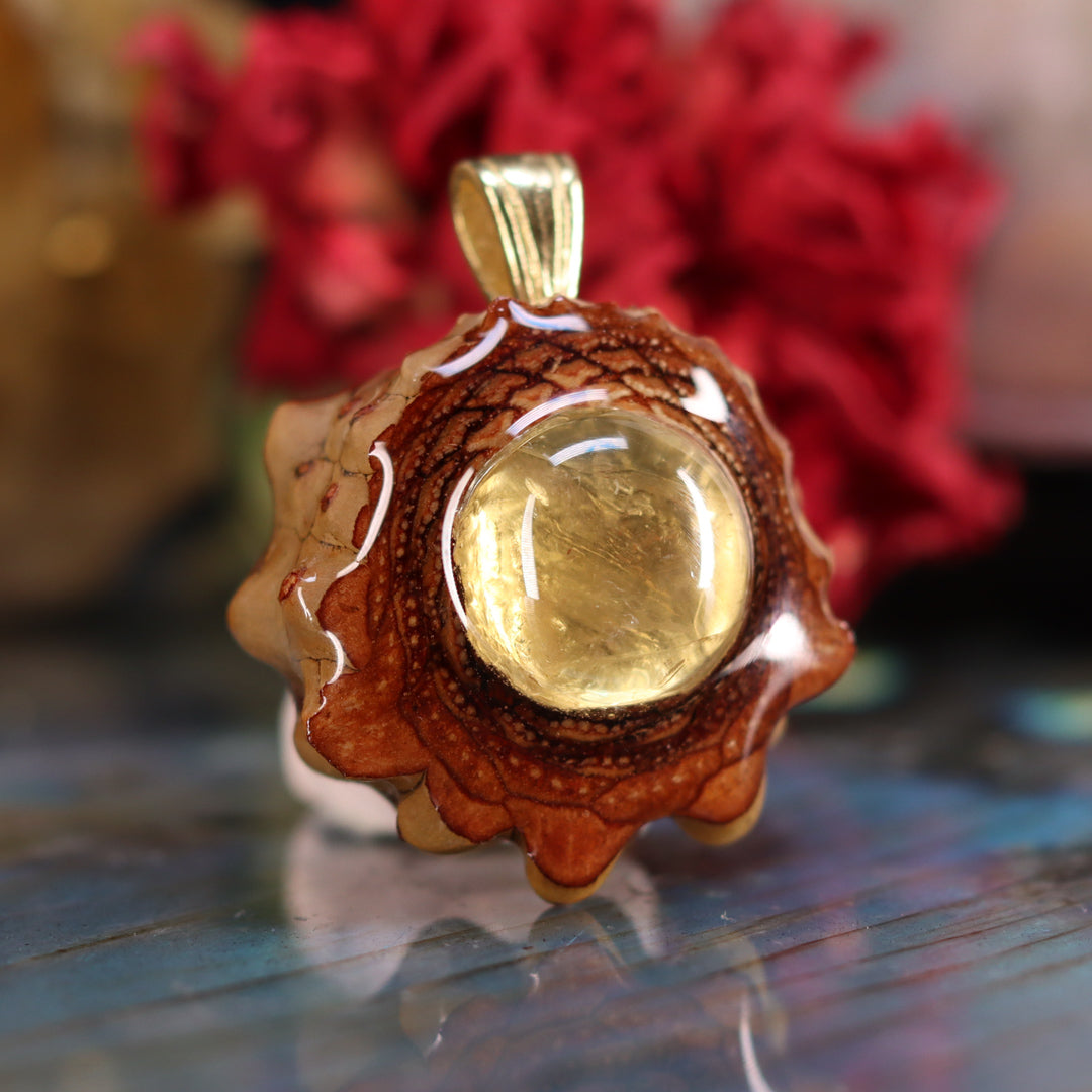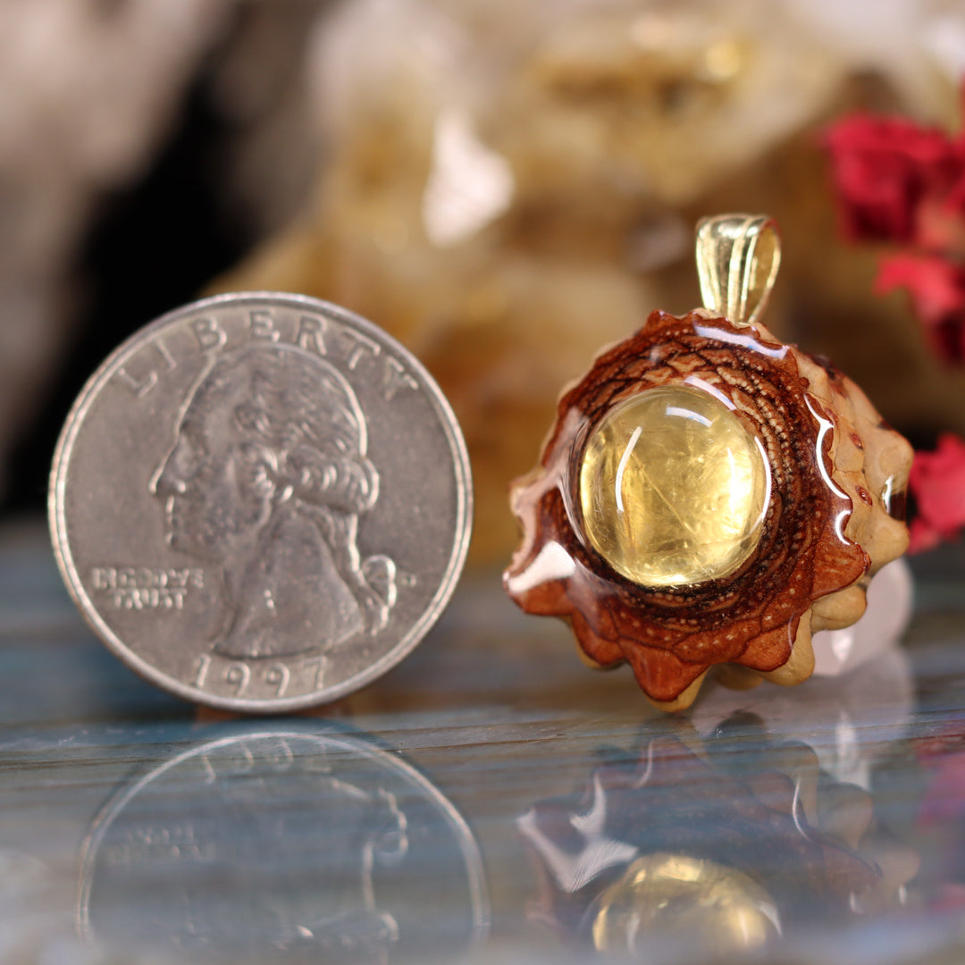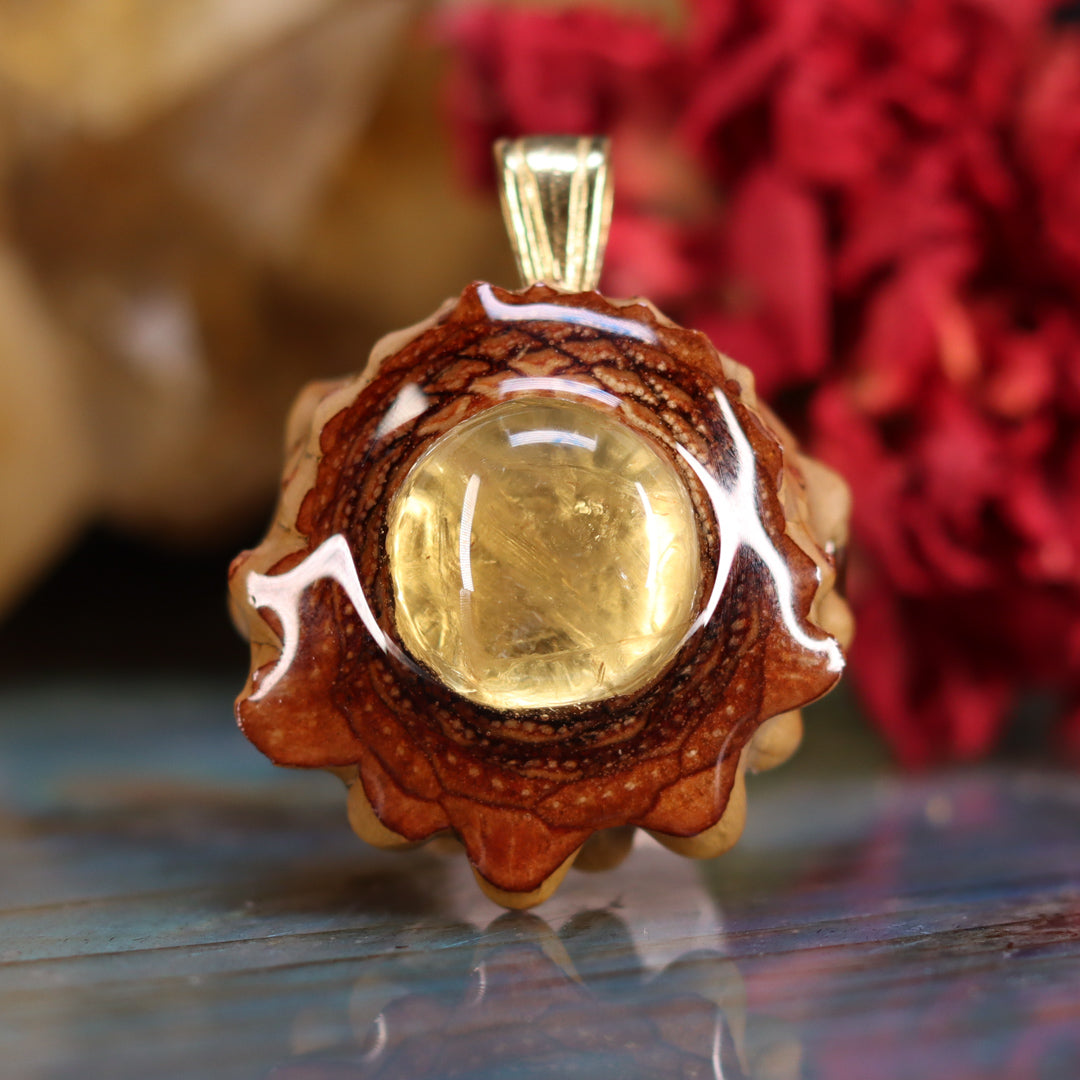 Every pinecone pendant is an elegant gift from Mother Nature -- unveiling the ornate Sacred Geometry hidden at the center of one of the world's densest Pinecones. Because only one cross-section is taken from the "heart" of each Cone, every pendant is absolutely unique, and truly one-of-a-kind.