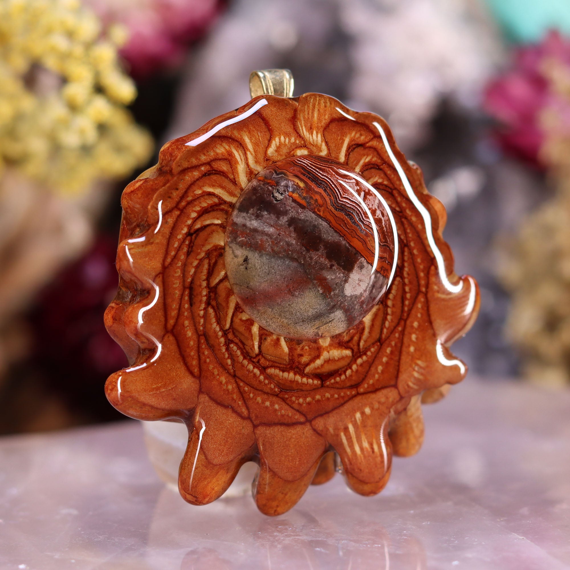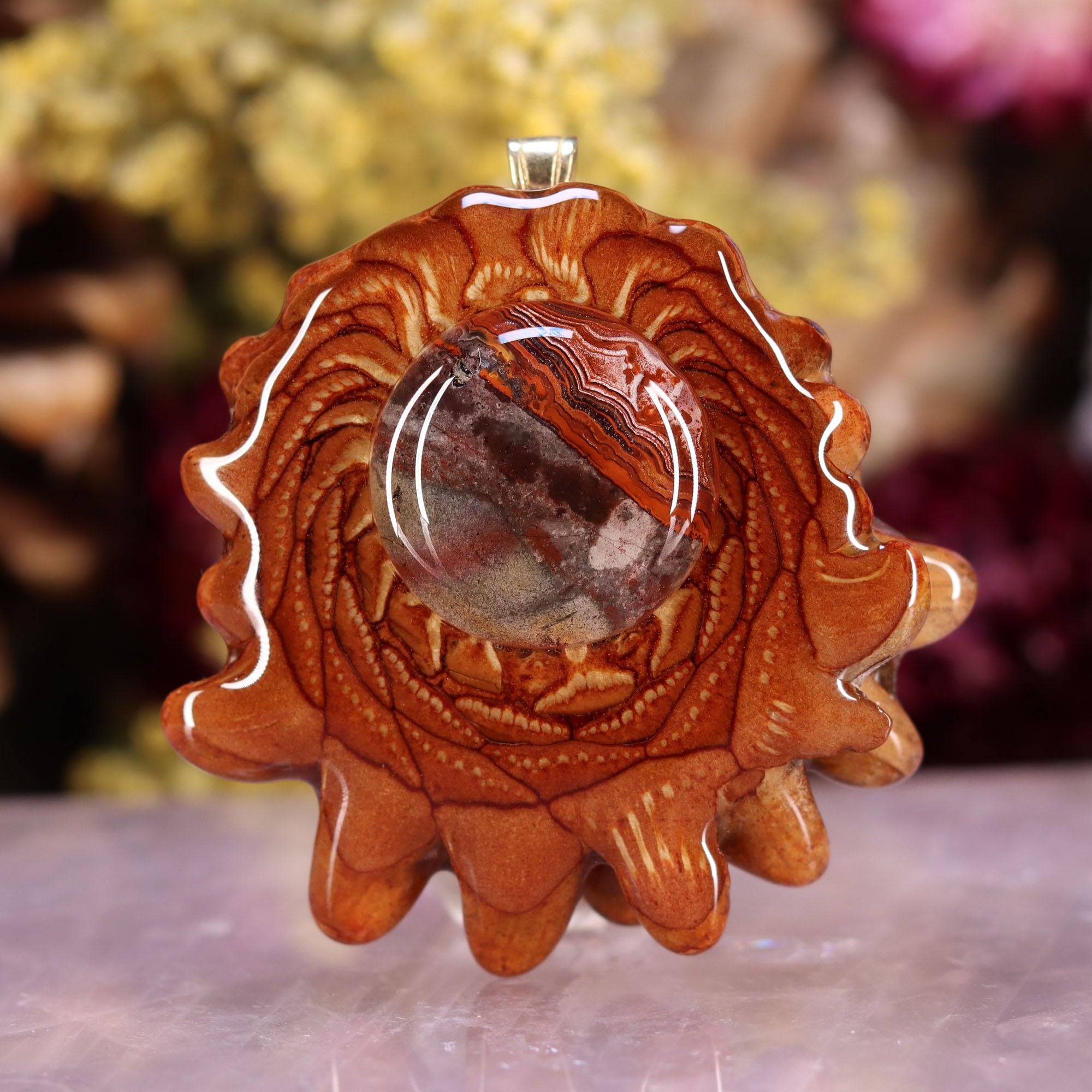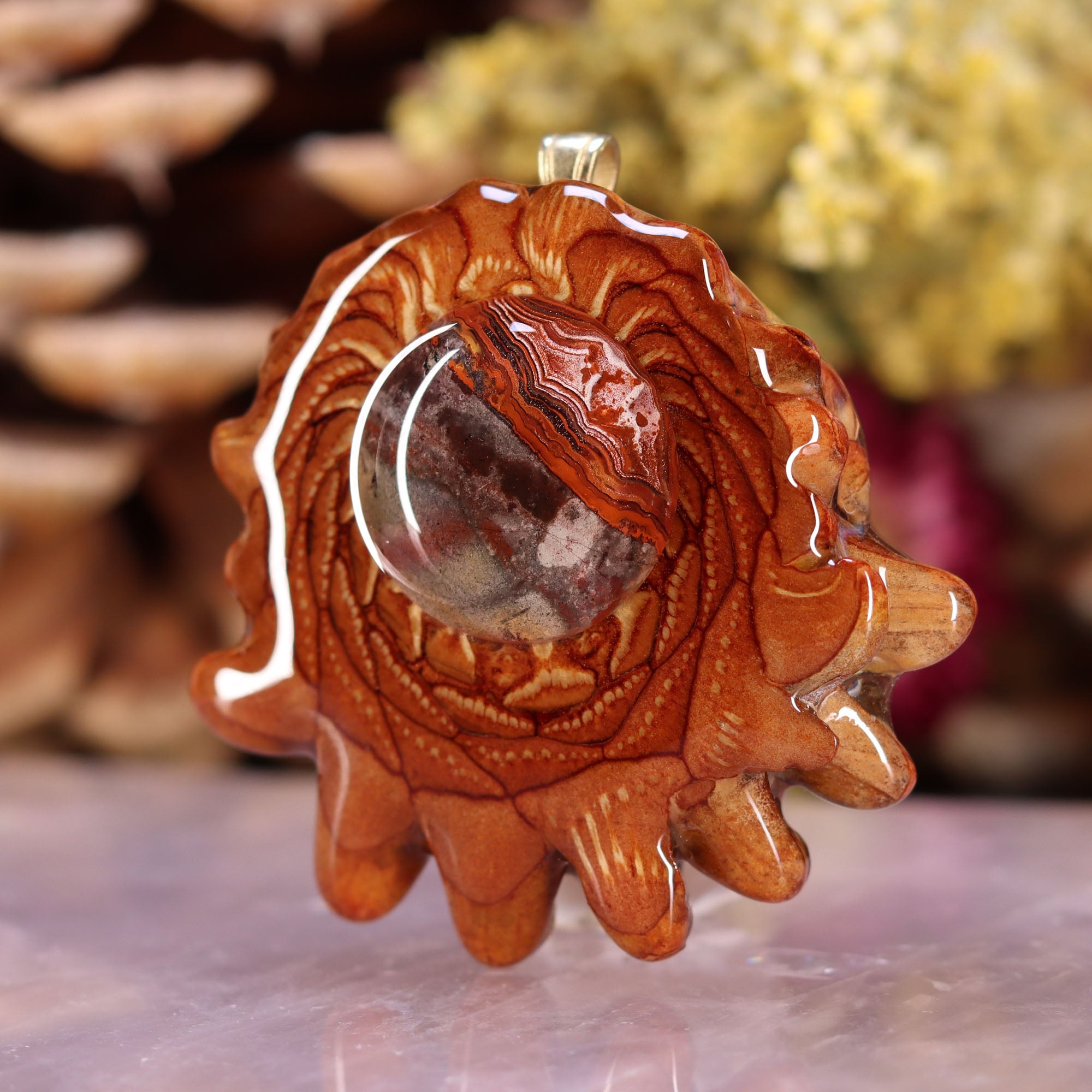 Every pinecone pendant is an elegant gift from Mother Nature -- unveiling the ornate Sacred Geometry hidden at the center of one of the world's densest Pinecones. Because only one cross-section is taken from the "heart" of each Cone, every pendant is absolutely unique, and truly one-of-a-kind.