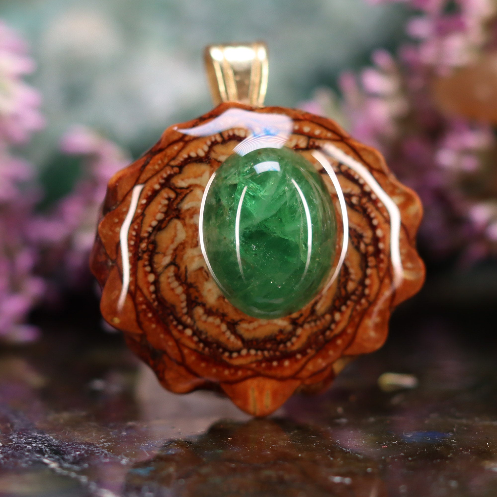 Every pinecone pendant is an elegant gift from Mother Nature -- unveiling the ornate Sacred Geometry hidden at the center of one of the world's densest Pinecones. Because only one cross-section is taken from the "heart" of each Cone, every pendant is absolutely unique, and truly one-of-a-kind.